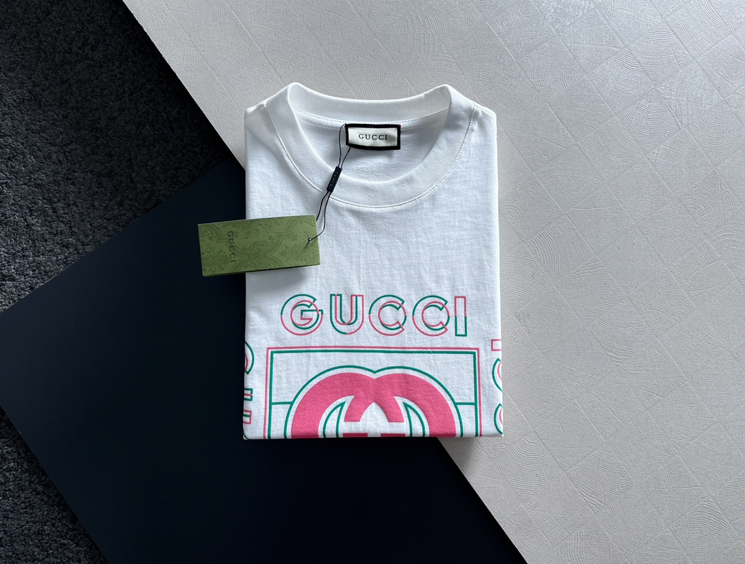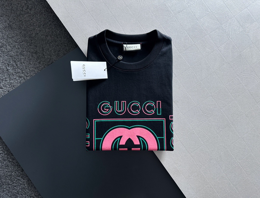 GUCCI/古奇 25ss夏季新款圆领短袖T恤!240克重磅高端纯棉面料,手感质感都极完美!修身裁剪设计干净利落!时尚又好看!走线做工非常精致!版型效果超赞!而且透气性能超强!任何年龄阶段都可轻松驾驭,男士衣橱里必备的单品。