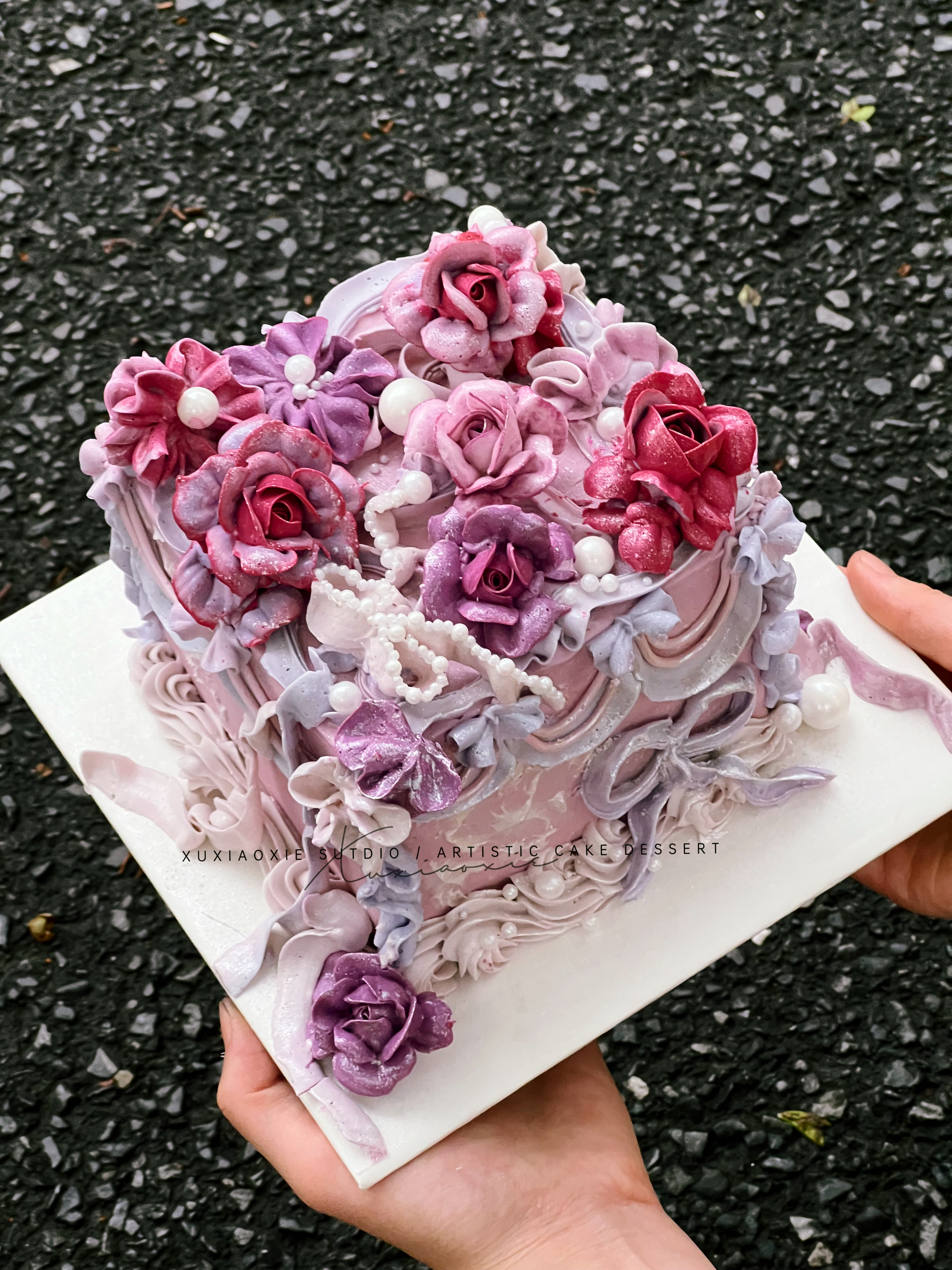 「珠光宝盒」奶油霜裱花蛋糕(水果默认火芒)提前一天预定 商品图0