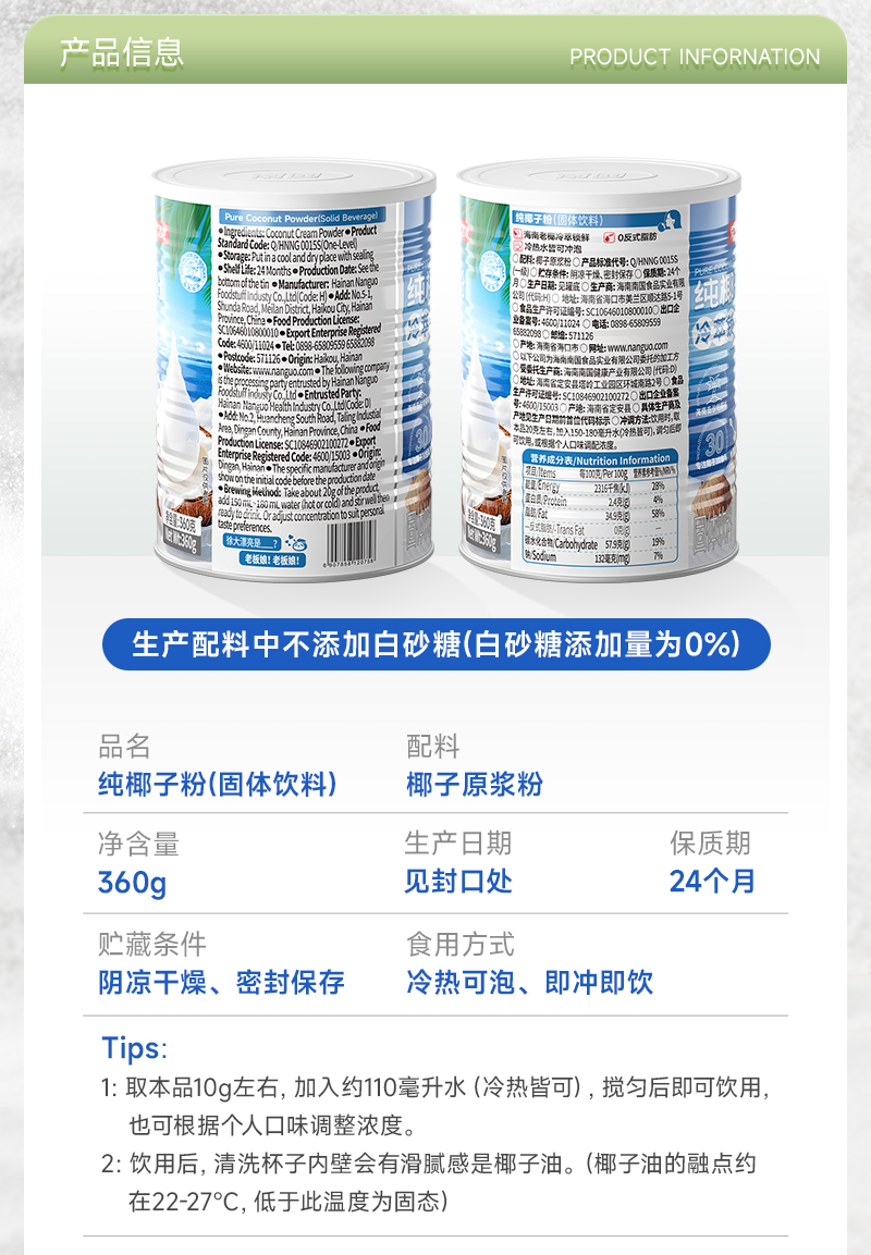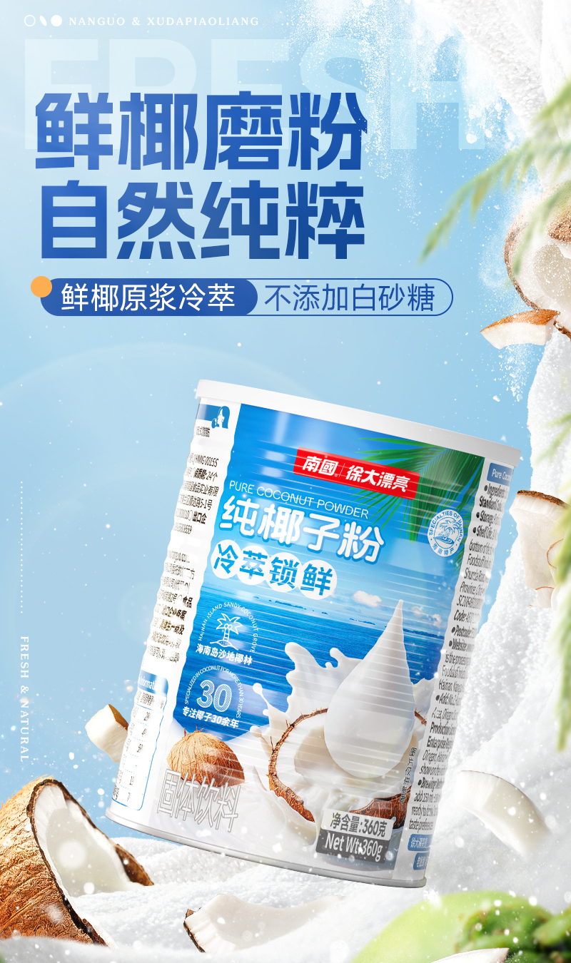 【整箱批发】 南国食品纯罐装椰子粉360gX12罐
