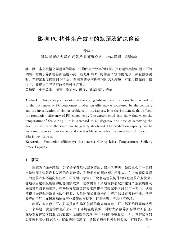 影响PC构件生产效率的瓶颈及解决途径 黄振兴