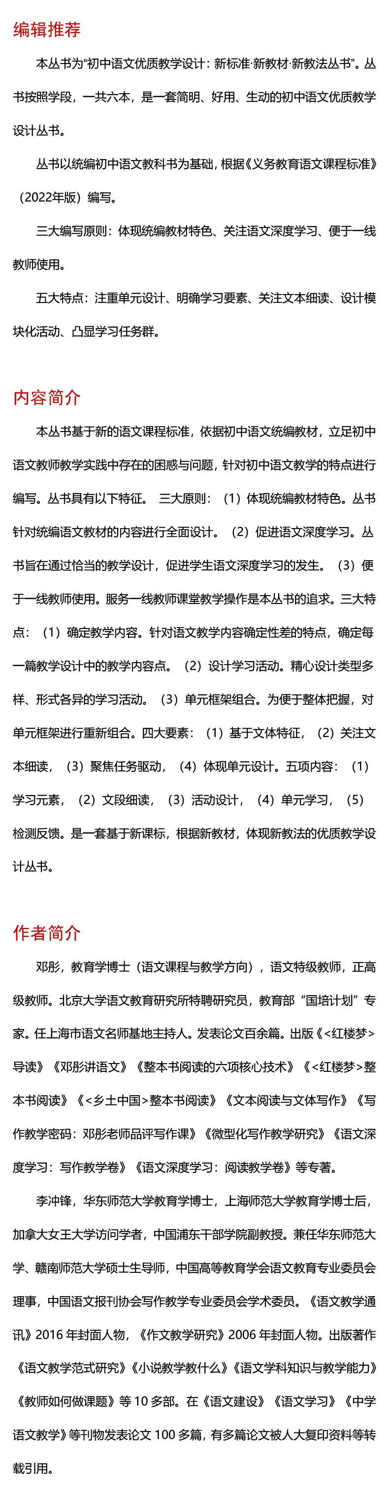 统编初中语文教科书优质教学设计 7年级8年级9年级 上册 下册 新标准