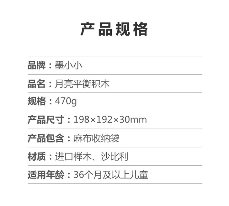 【3岁+】墨小小 纯手工打磨 月亮平衡 积木玩具