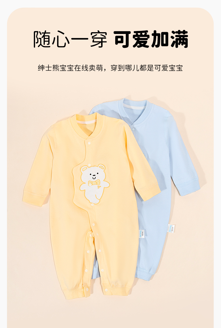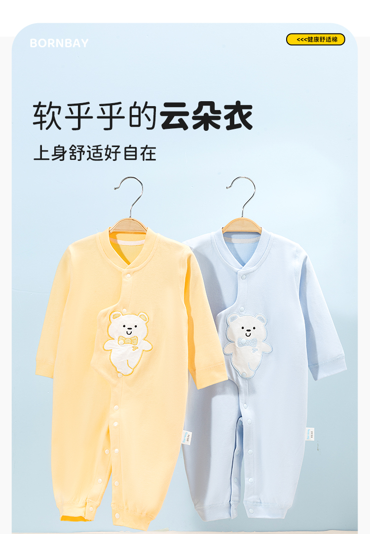 贝贝怡童装婴儿连体衣春秋款新生儿纯棉睡衣男女宝宝新款秋装爬服ZB3DL001