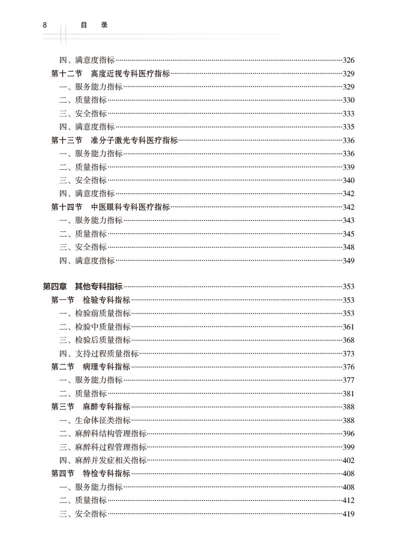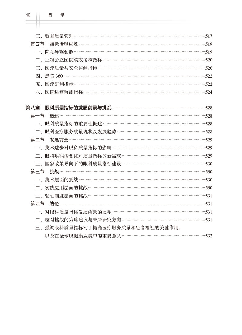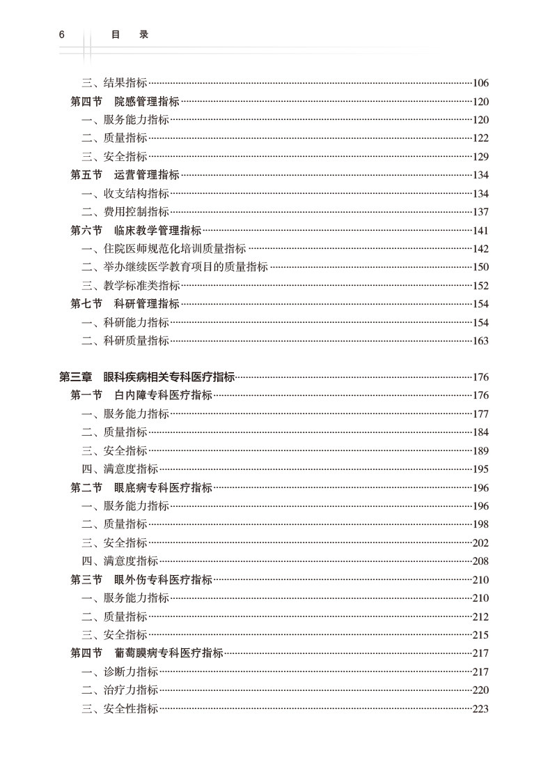 本书内容覆盖面广,分别针对眼科医疗管理指标、眼科疾病专科指标、眼科护理指标、眼科院感指标等其他专科指标等方面指标进行具体阐述,并挑选质量指标改进的经典优秀案例进行展示,并对眼科质量指标智能化、信息化建设及全面监管指标进行详细阐述和指引,结合理论知识与典型案例,对重点、难点详尽解读,具有很强的独特性、指引性、应用性和借鉴性。本书适合眼科医疗机构管理者、眼科医疗机构基层员工以及相关机构从业者阅读学习。