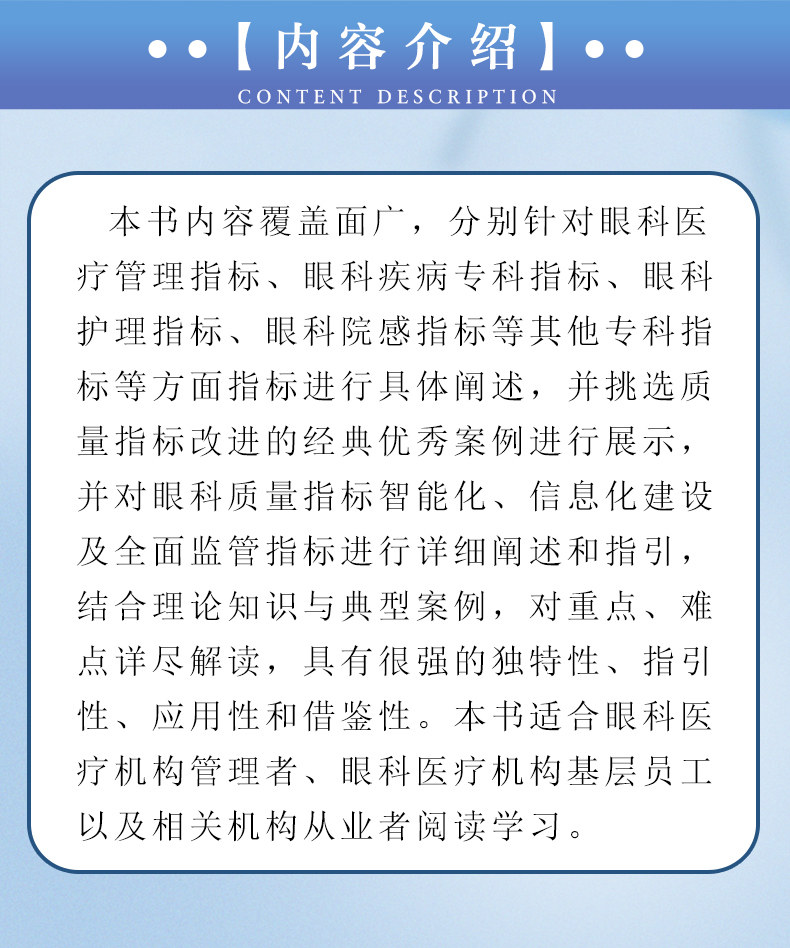 书名:眼科医疗质量管理与控制指标设计及应用