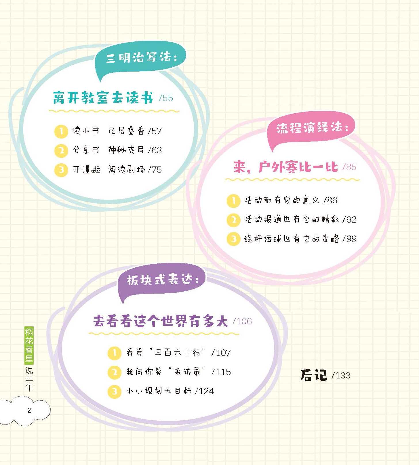 《微习作里看世界》精心编撰六本套书,专为提升小学生写作能力。《稻花香里说丰年》聚焦日常写作,传授朋友圈文案撰写、读书分享窍门、采访录撰写要点及户外比赛描写技法;《这个节日,;社牛 出没》针对春节、元宵节、清明节、端午节、中秋节等五大传统节日,给出场景描写妙招,助学生生动展现节日氛围;《热火朝天的劳动课》围绕学做家务、户外野炊等活动,细致讲解制作过程的描写要点;《含羞草,NO!NO!!NO!!!》着眼交际场景,为辩论赛发言、新闻稿编写等提供写作技巧;《把科学课写进微写作》为倡议书编写、体育赛事直播描述等表达方式提供技法指导;《会飞的兔子》为童话创作打开想象大门,教授学生人物设定、情节创设等编写技巧。六本书均以新颖朋友圈格式开篇,借师生对话框与图表,拉近师生距离,精准拆解写作难题、梳理要点。全套书主题紧扣学生日常,覆盖教材写作内容,让学生一书在手,将习作化难为易。