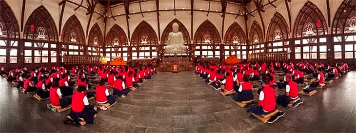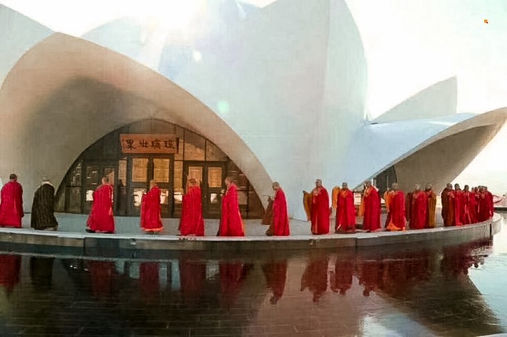 大佛光寺以钢质空间结构形式为主,是当代中国佛教建筑的一次创新与实践。建筑设计兼具历史性与时代性,在继承中创新、在创新中发展,将当代中国的佛教发展趋势与时代环境变化相结合。应用当代的建筑设计语言与表达方式来创作的一座具有时代精神的现代佛教寺院。
