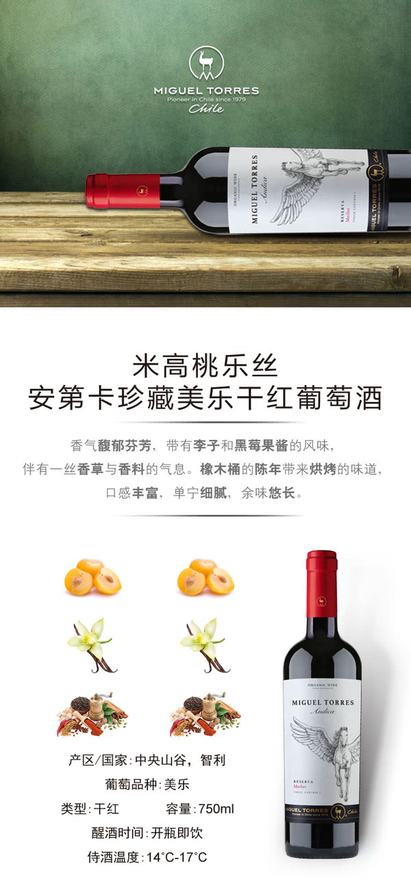 MM 山姆 米高桃乐丝(Miguel Torres) 智利进口 安第卡珍藏美乐干红葡萄酒 750ml