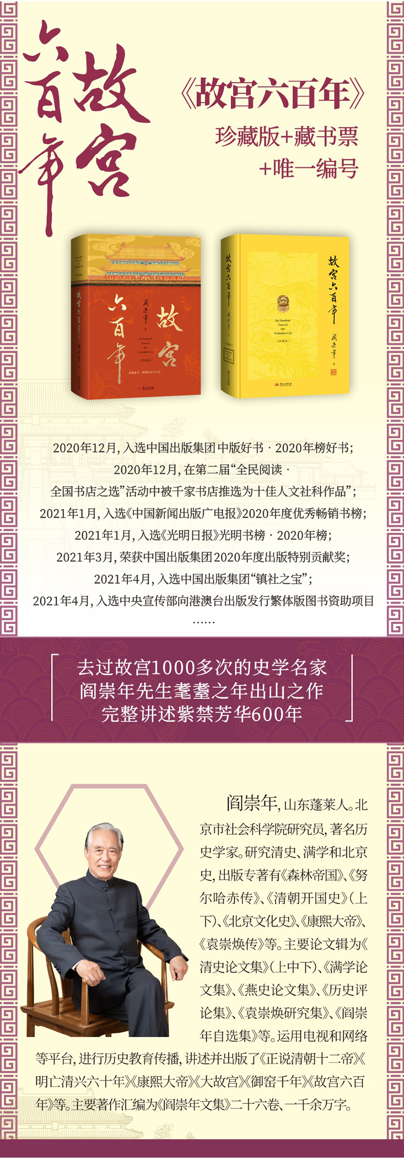 《故宫六百年》珍藏版 精装刷边大开本 每本唯~一编号 | 史学大家阎崇年先生扛鼎之作,完整讲述紫金芳华600年!