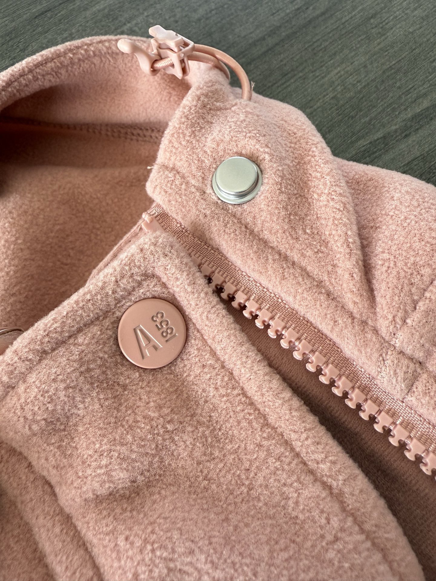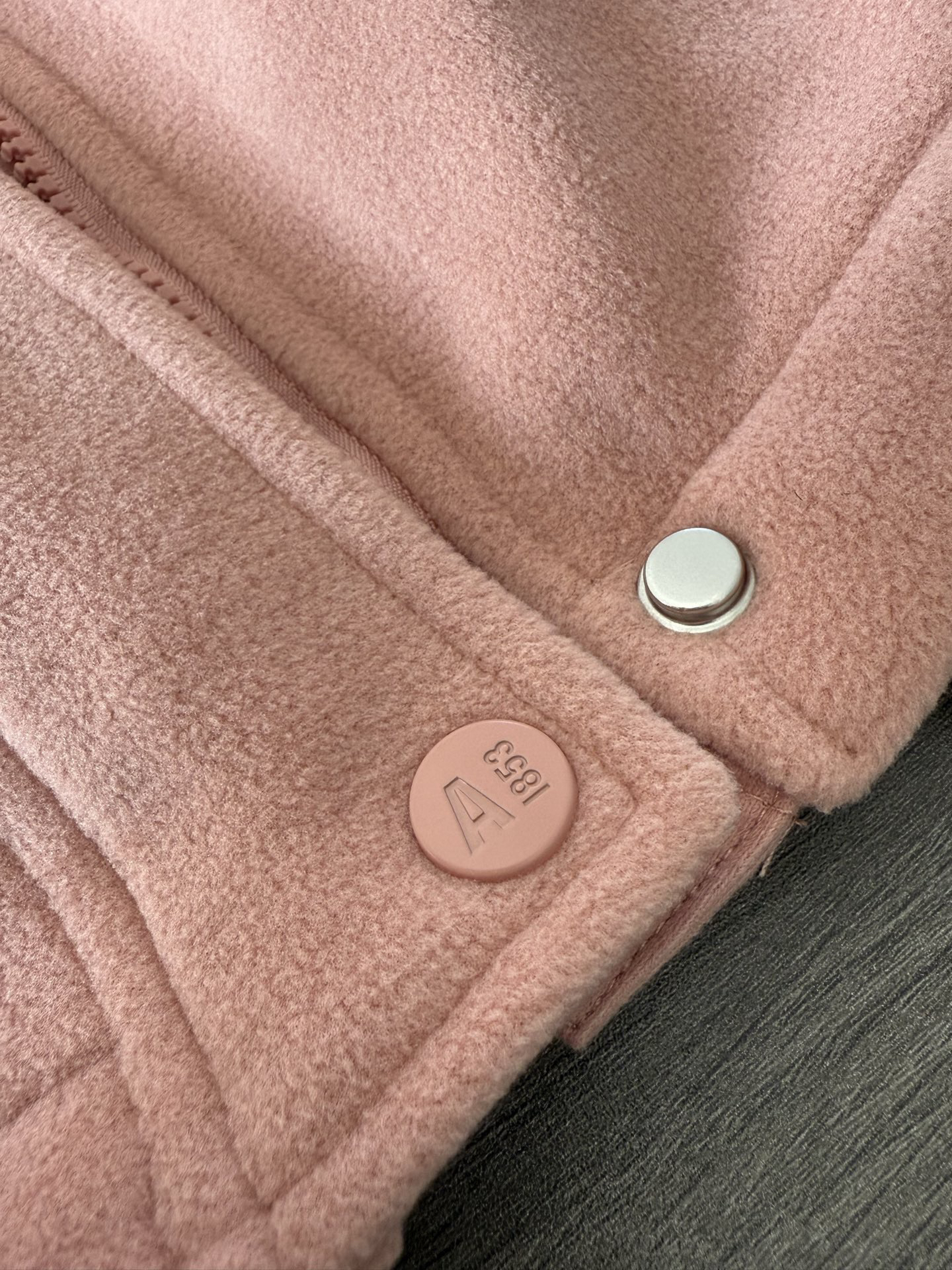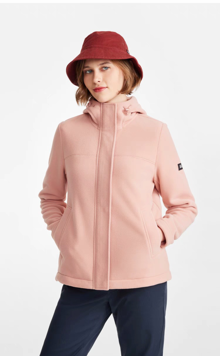 户外很适合这种穿搭,这种时尚全拉抓绒衣,雾粉色很显白,上身轻盈保暖,还不易起静电