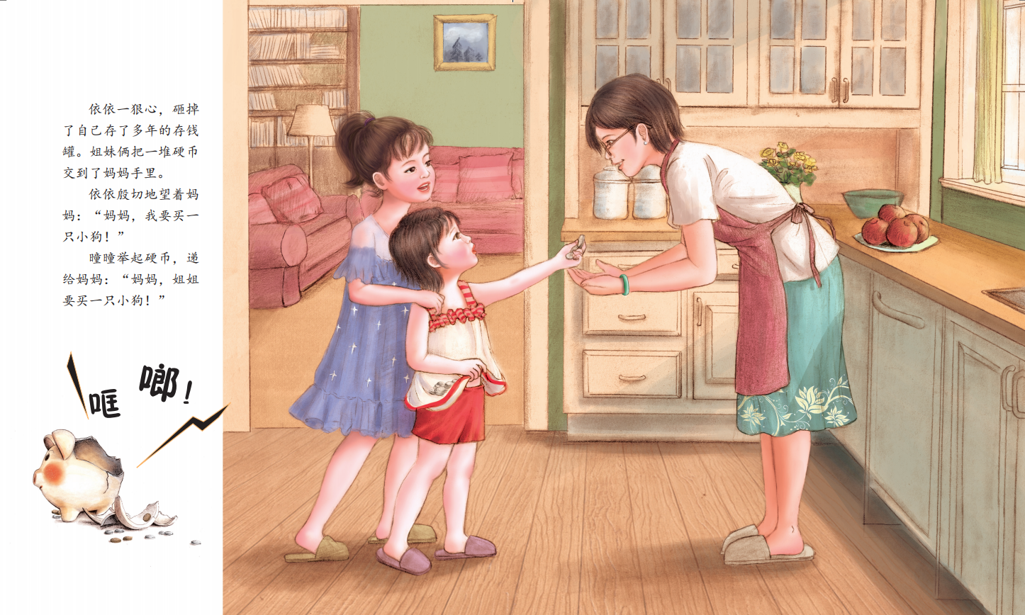 《哭泣的狗妈妈》讲述姐妹俩在公园里休息时,遇见了一只失去自己孩子的斑点狗妈妈。狗妈妈非常爱自己的孩子,自从孩子死去后,狗妈妈就伤心得不吃不喝。姐妹俩很担心狗妈妈的身体,绞尽脑汁地想办法帮助狗妈妈,终在姐妹俩的努力下,狗妈妈开始了新的生活。