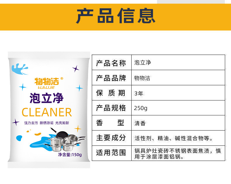 物物洁 泡立净150克 清洗剂 活氧除垢起泡氧化除垢深层洗衣鞋去污魔方洁净