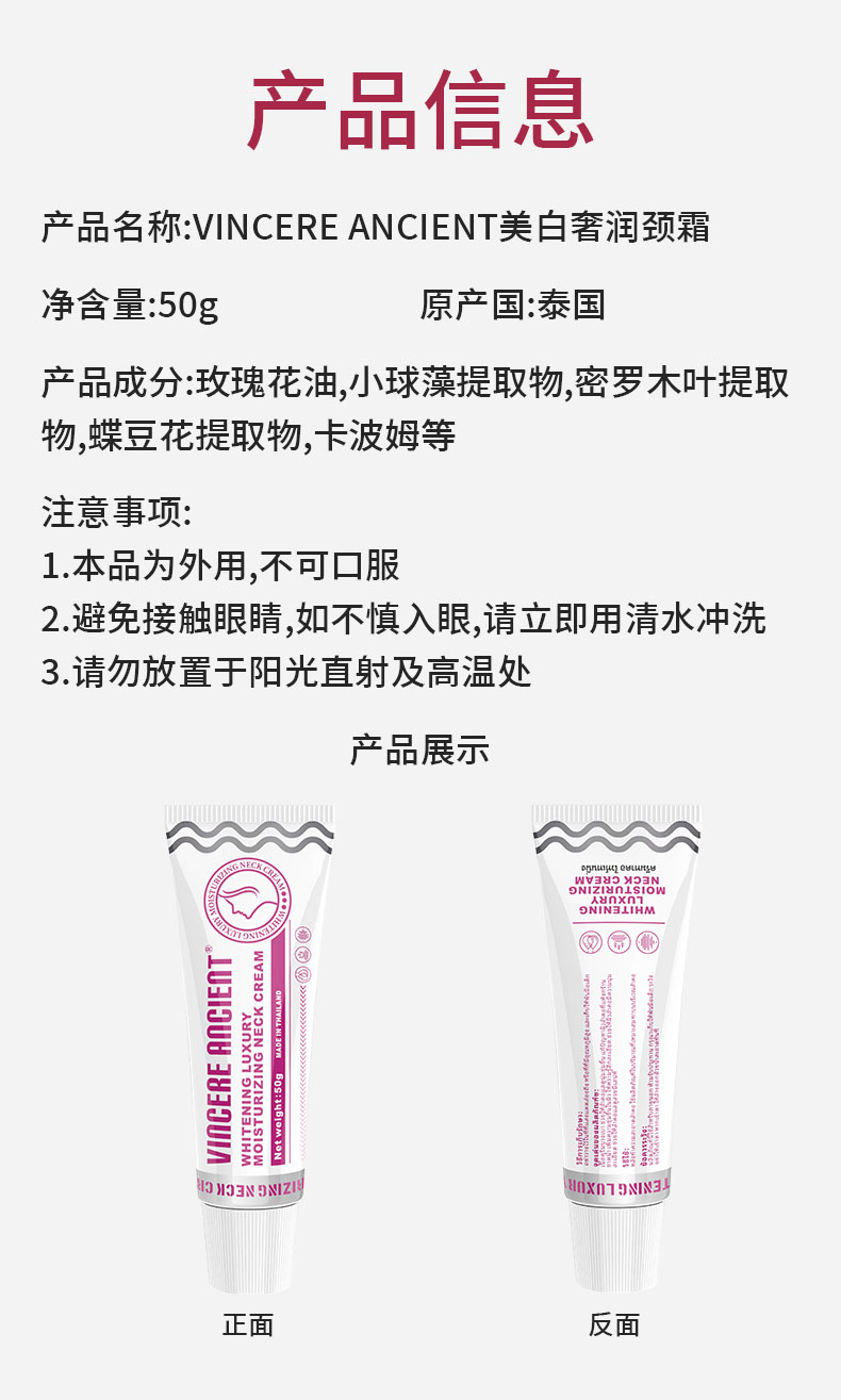 VINCERE ANCIENT 美白奢润颈霜 泰国原装进口
