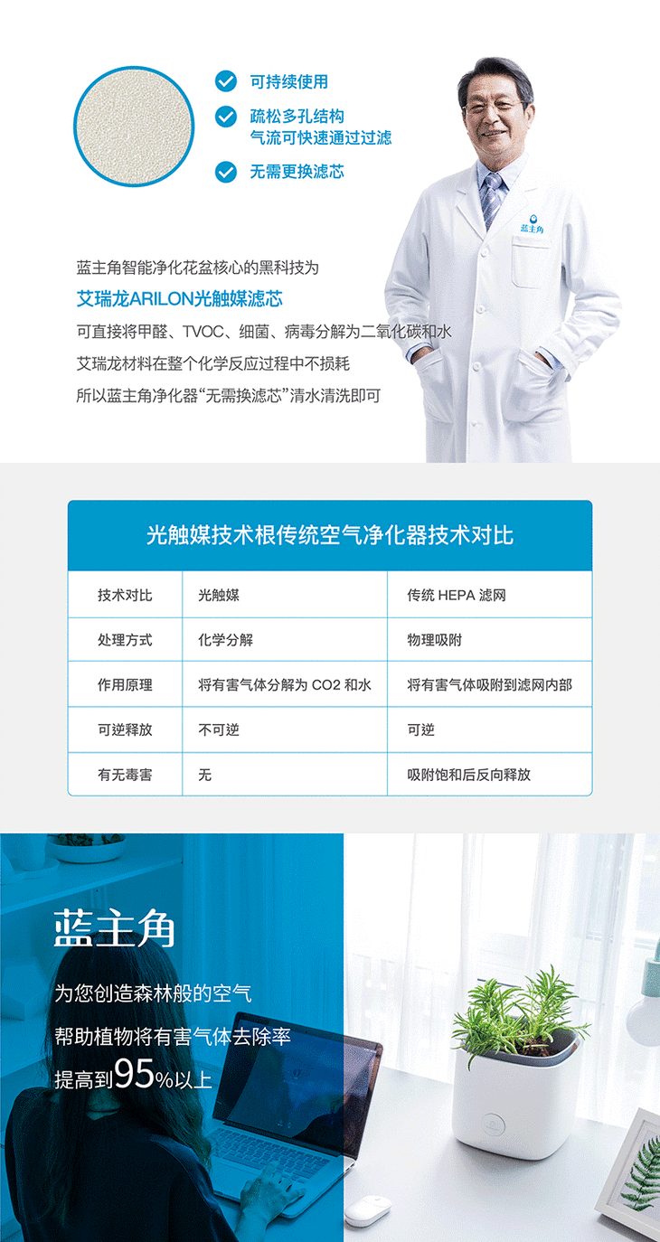 蓝主角 forbluever 空气净化器绿植花盆 智能花盆空气净化 自动传感