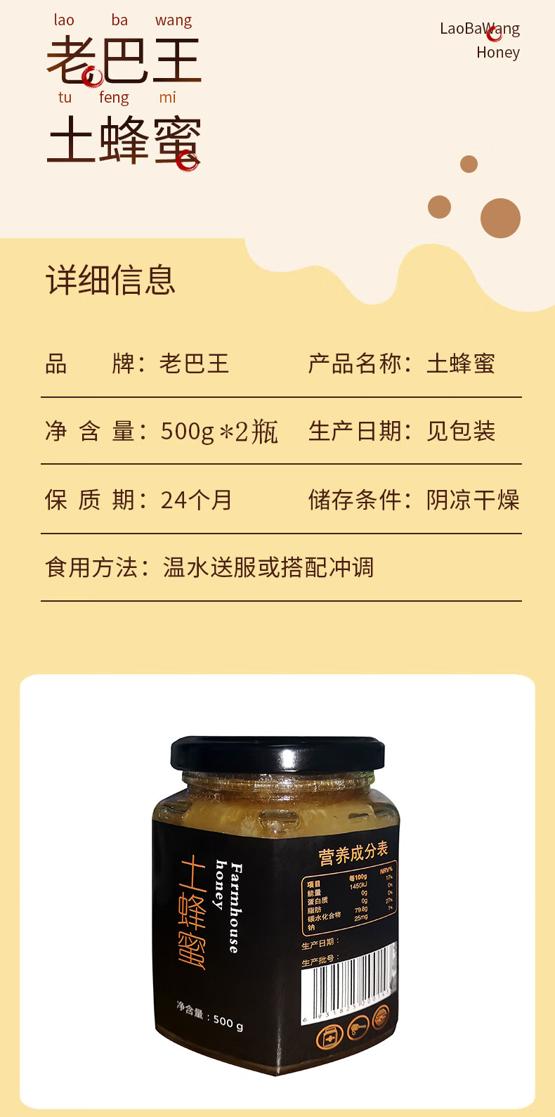 【宜昌助农馆】老巴王土蜂蜜(百花蜜)礼盒500g*2盒