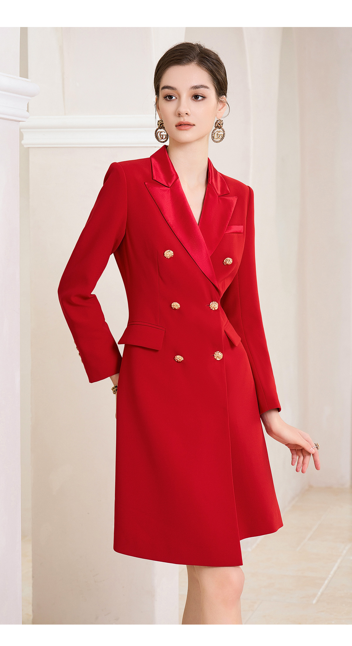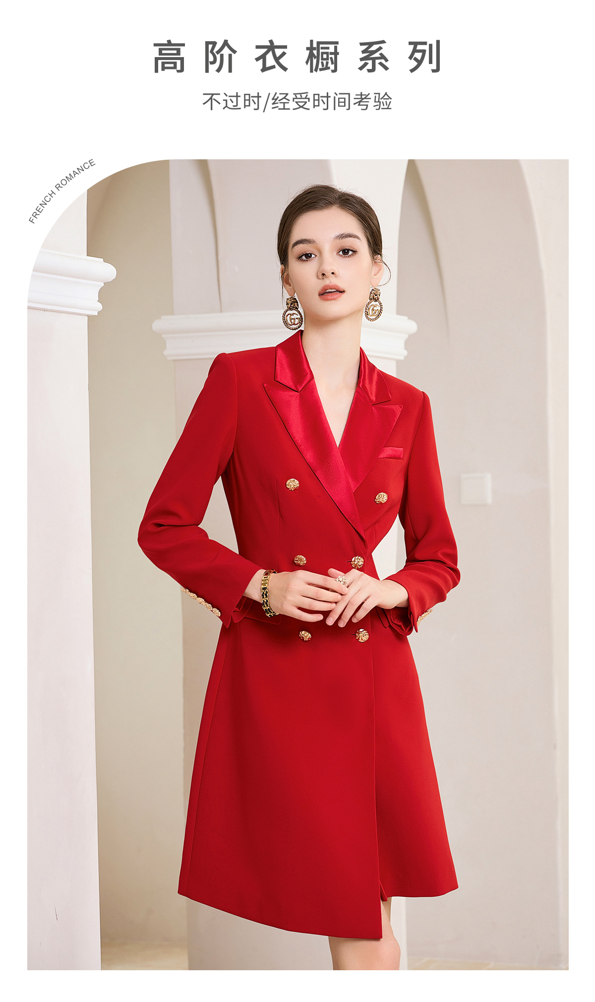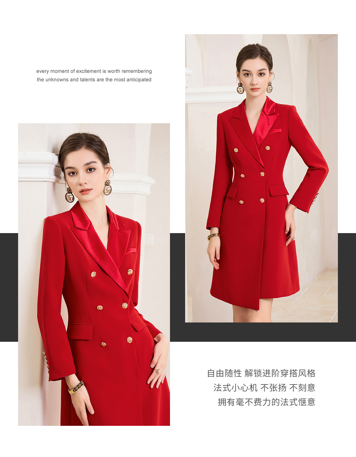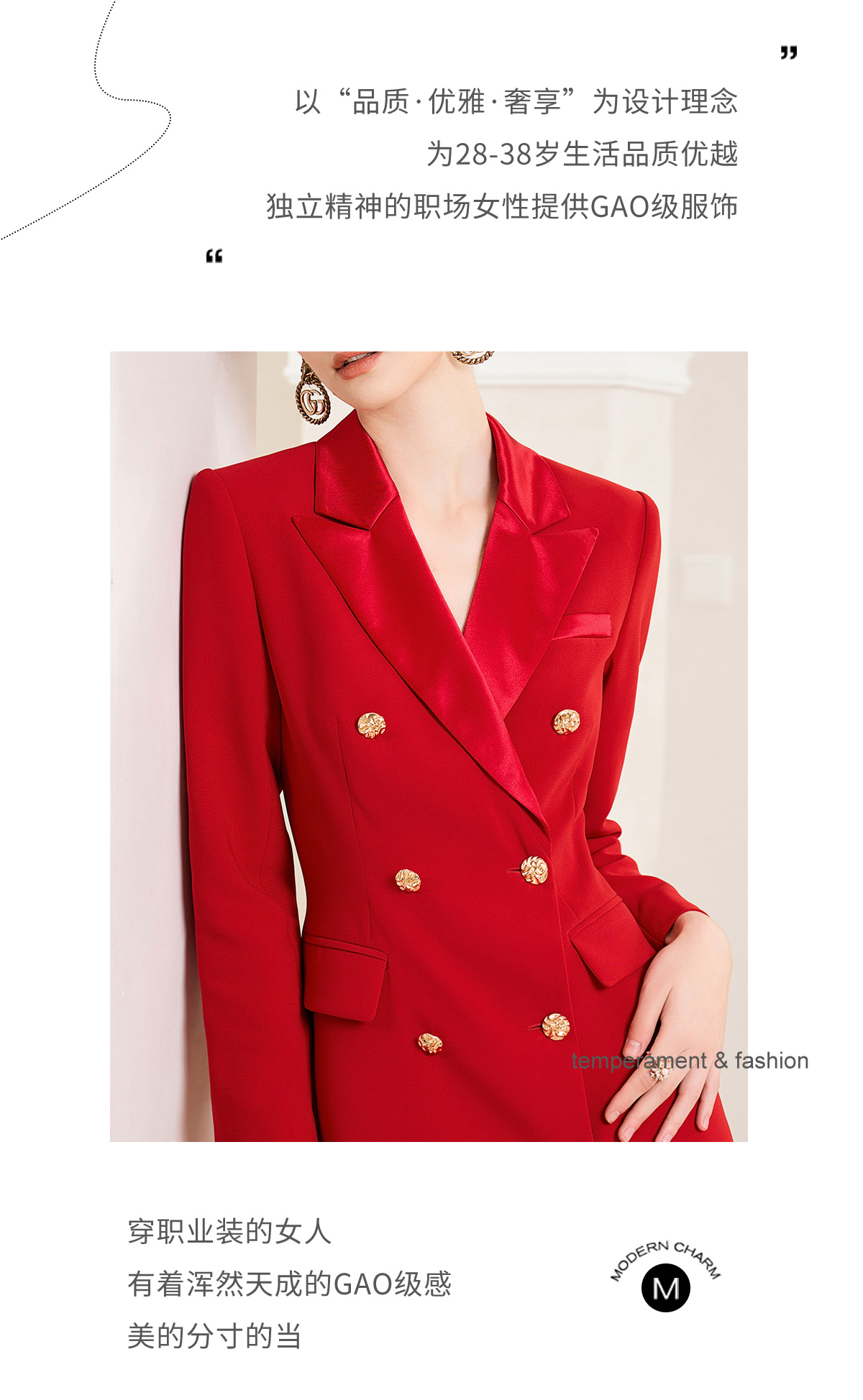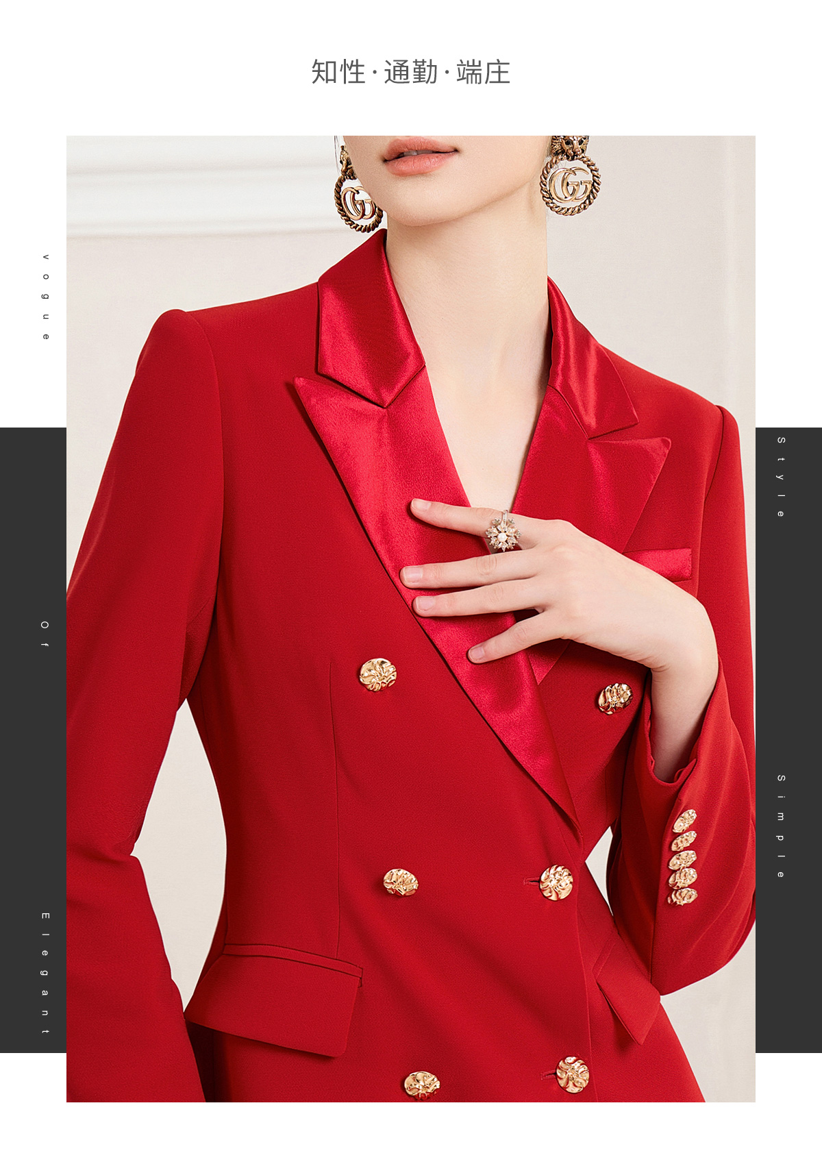 AD红色裙子质感2023新款显瘦法式洋装春秋醋酸西装裙正装