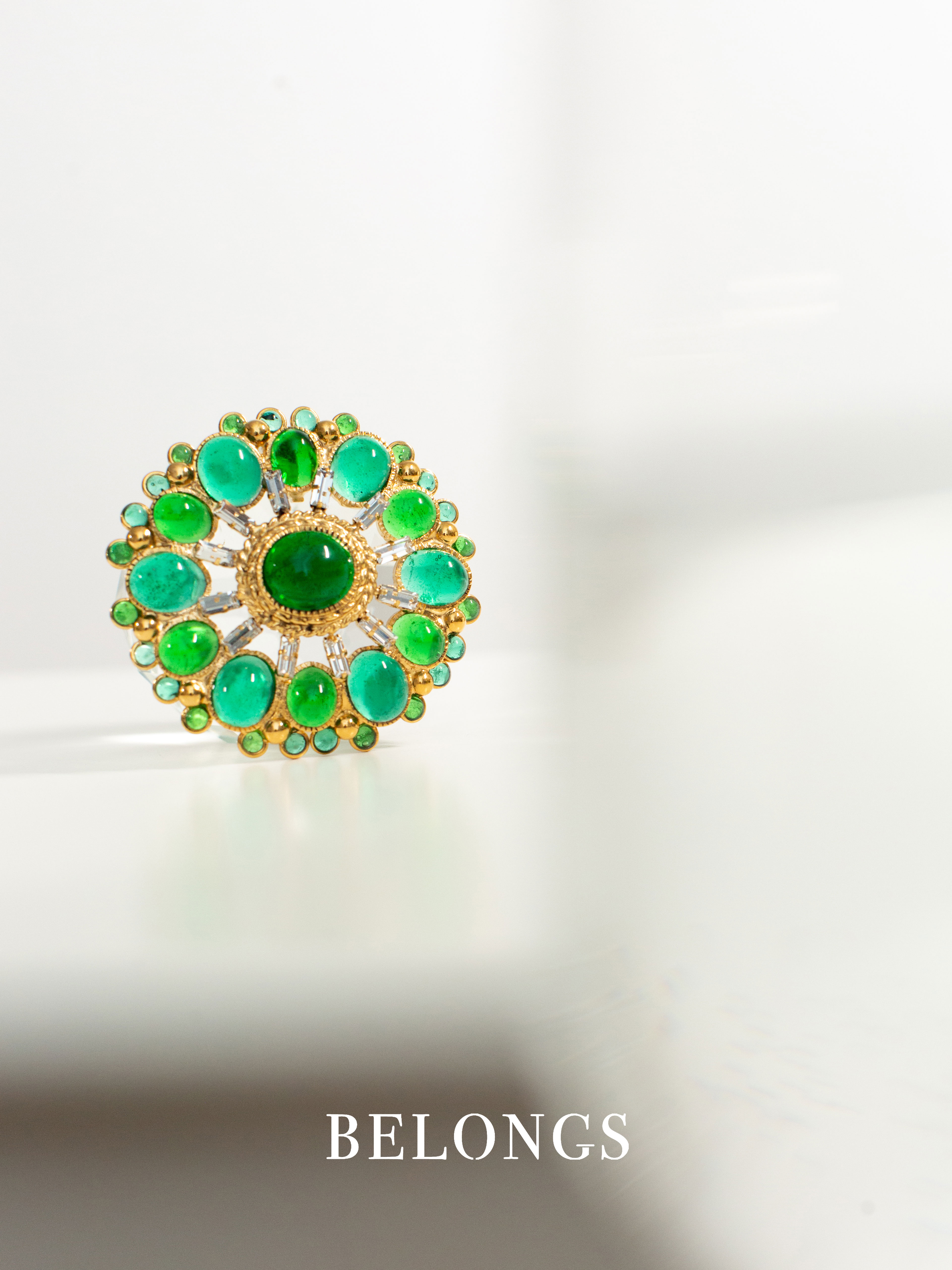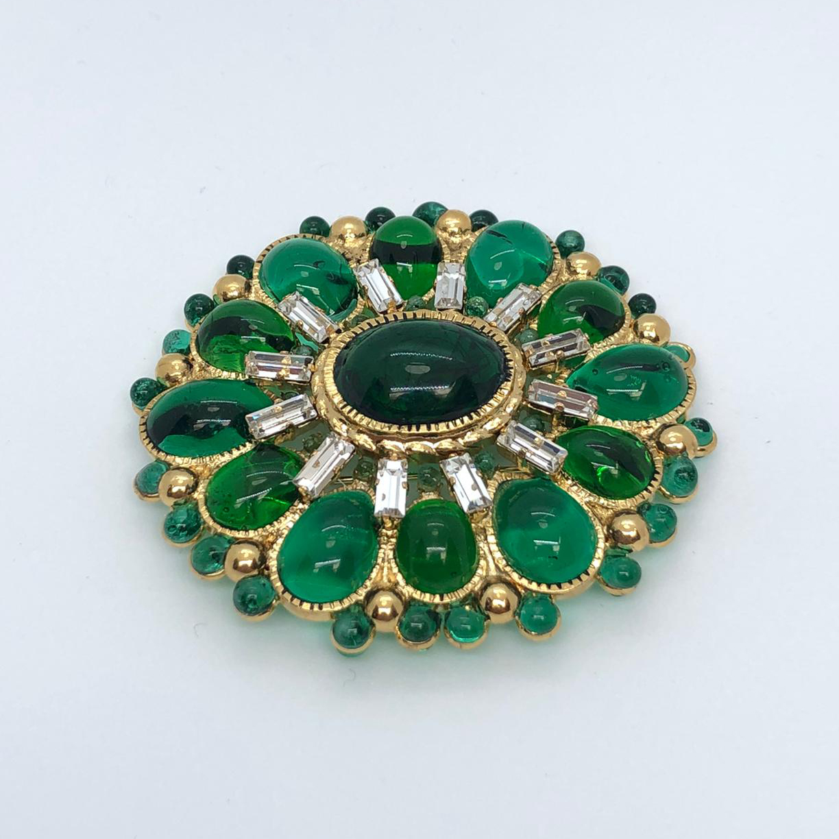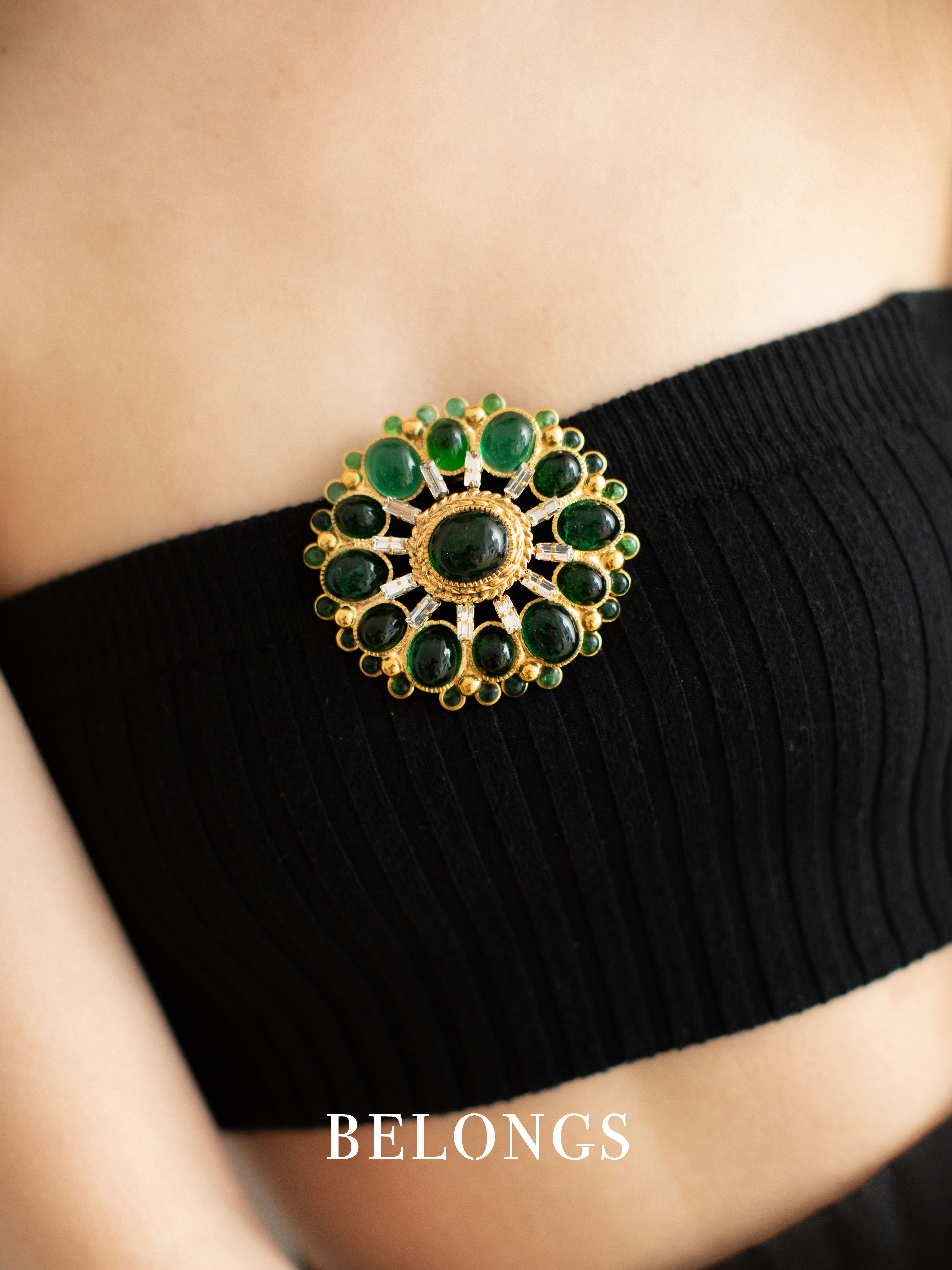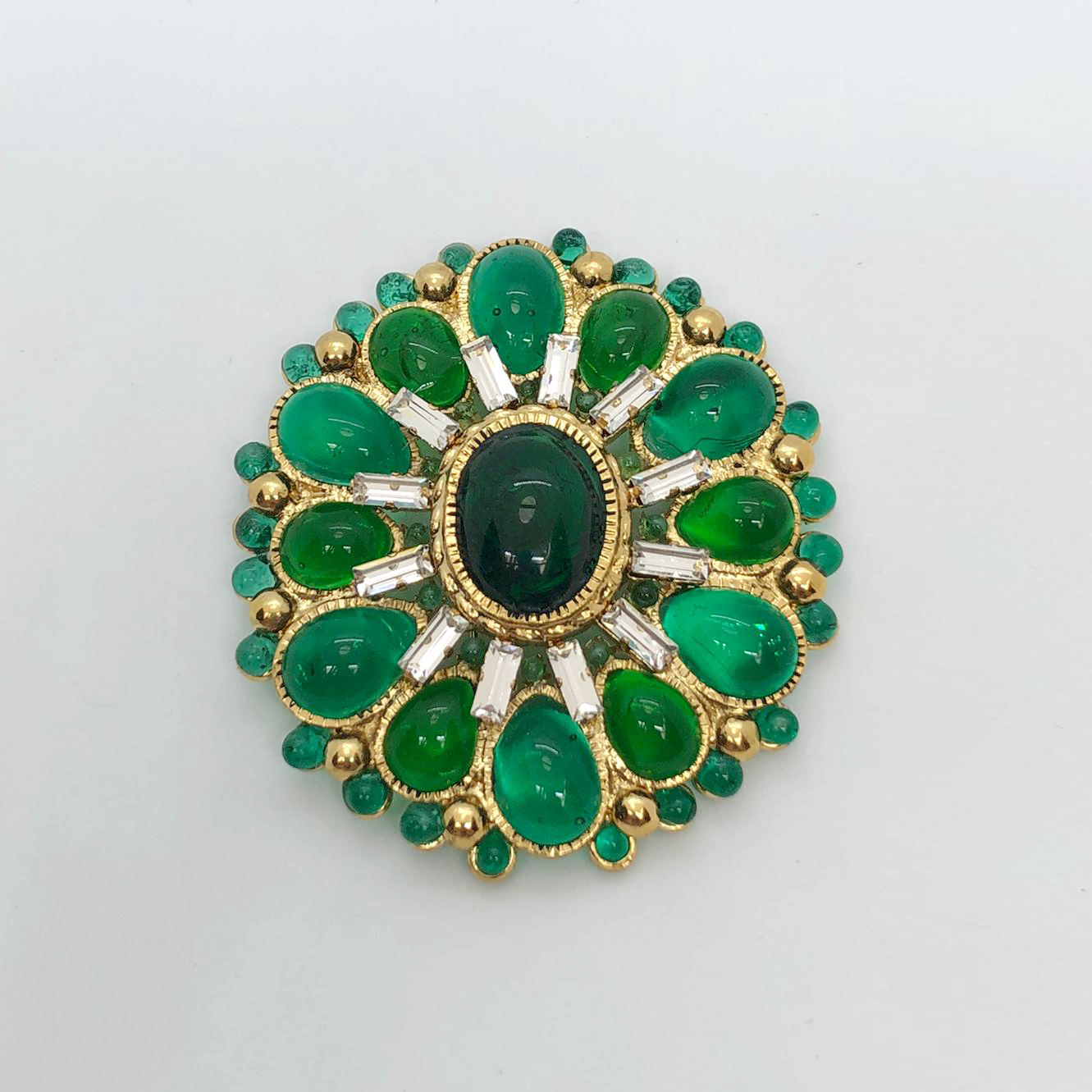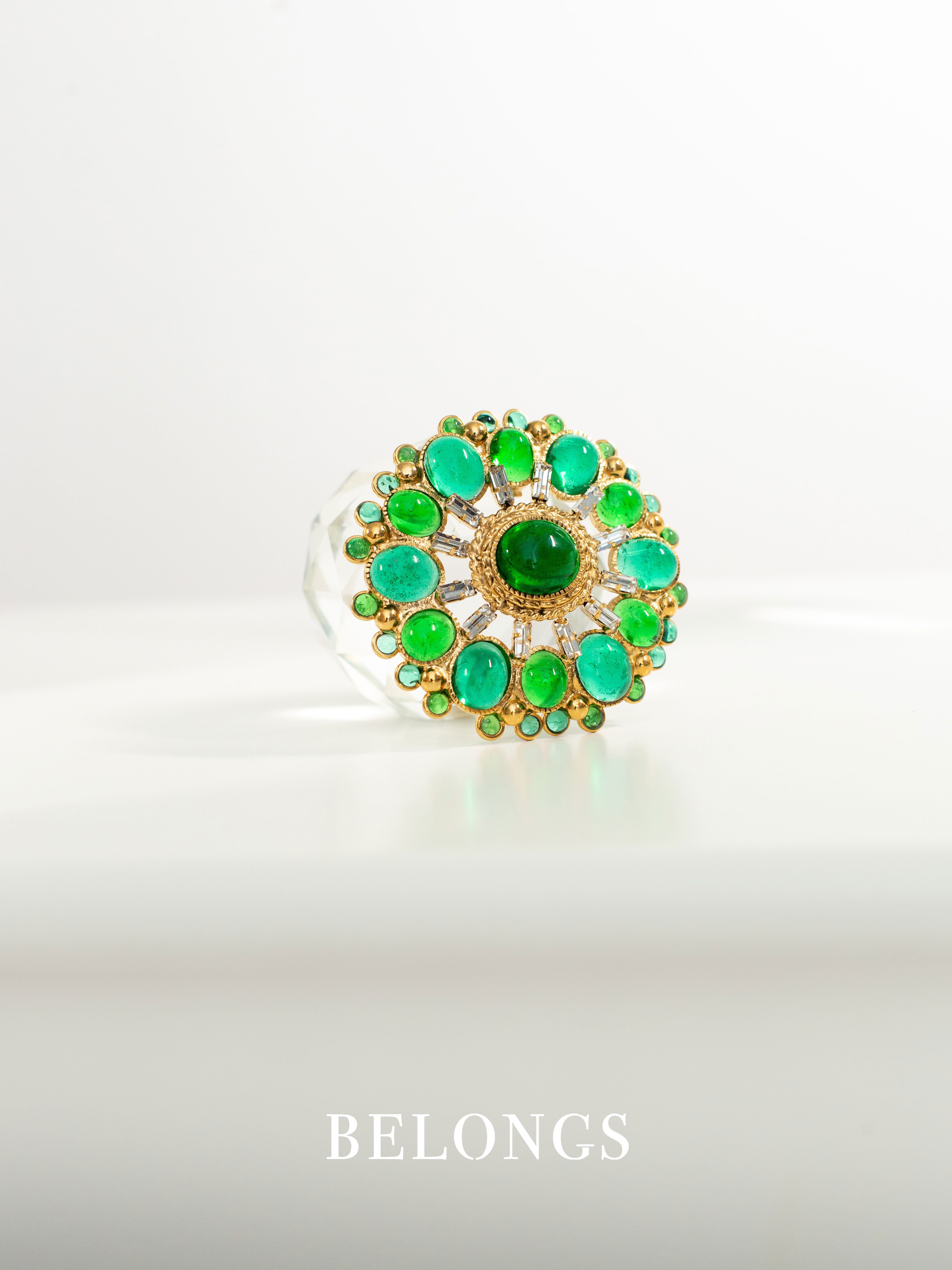 订购6个月到|Gripoix Paris-Vintage-Fan 复古 琉璃 胸针(绿色)[法国设计师]