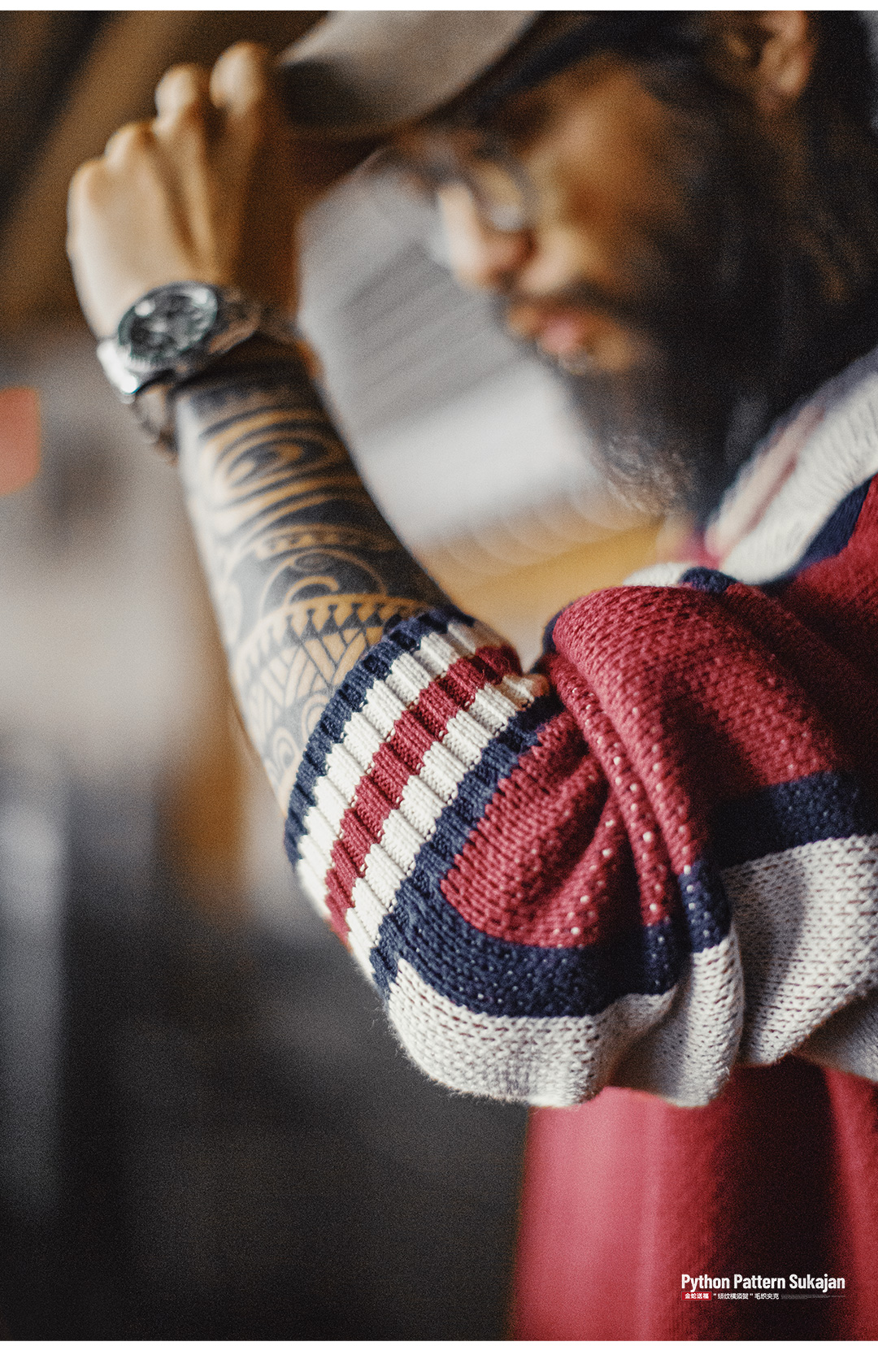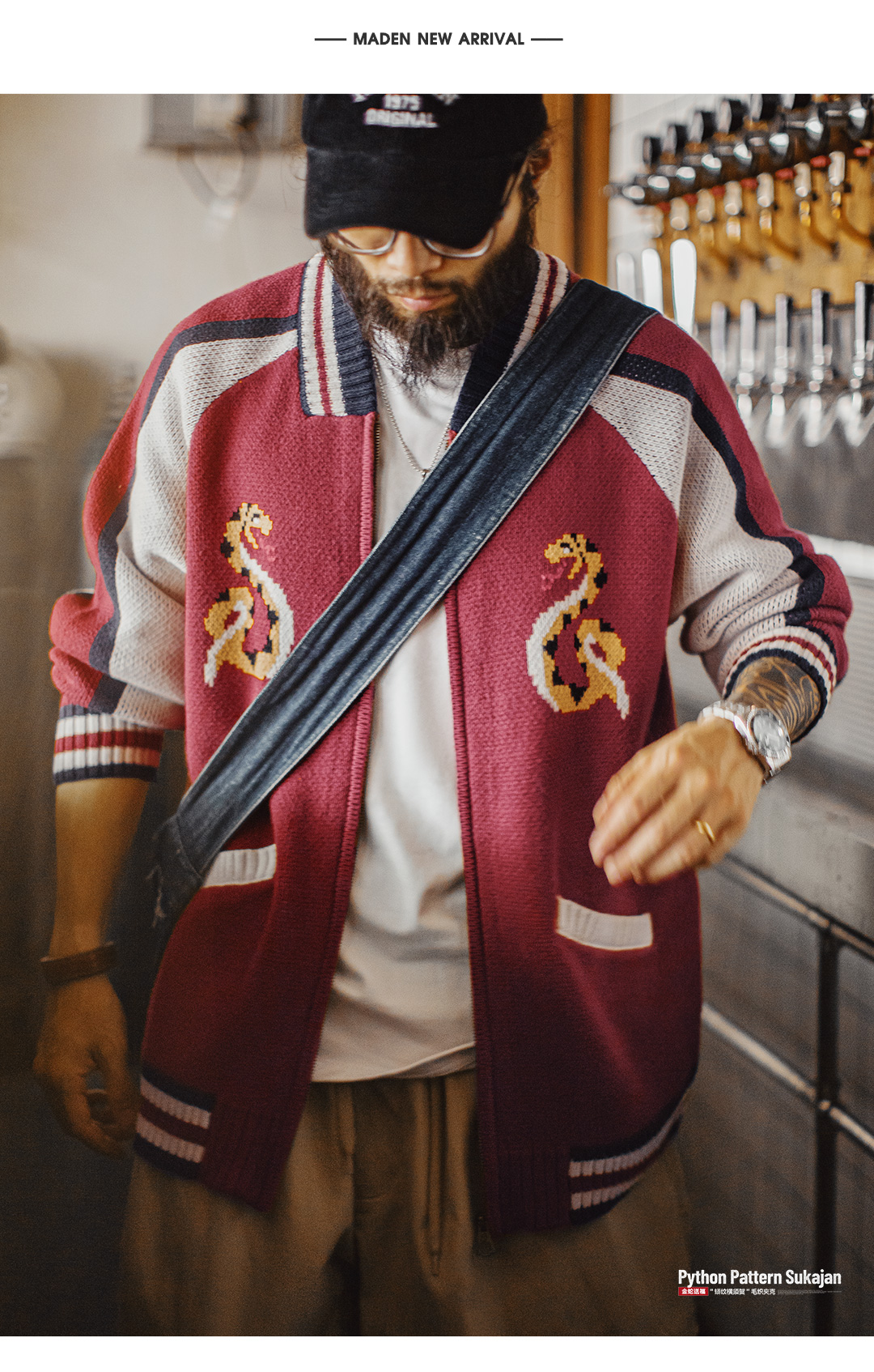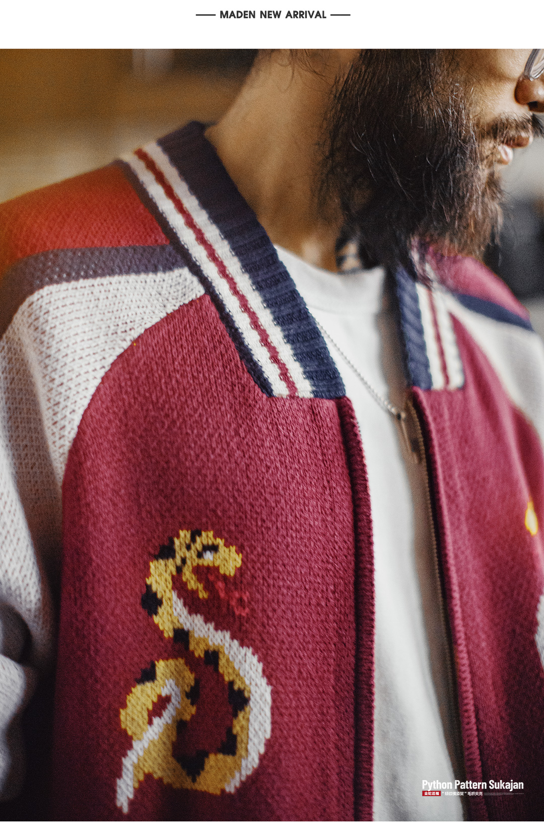 马登工装美式横须贺刺绣夹克日系红色棒球领毛织垂感开衫外套男秋
