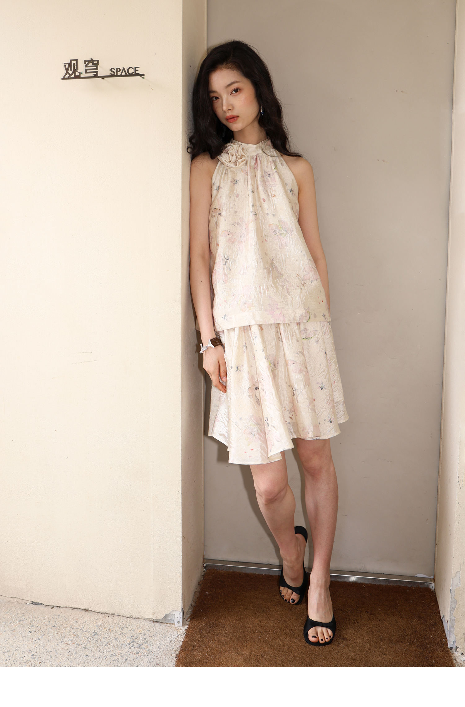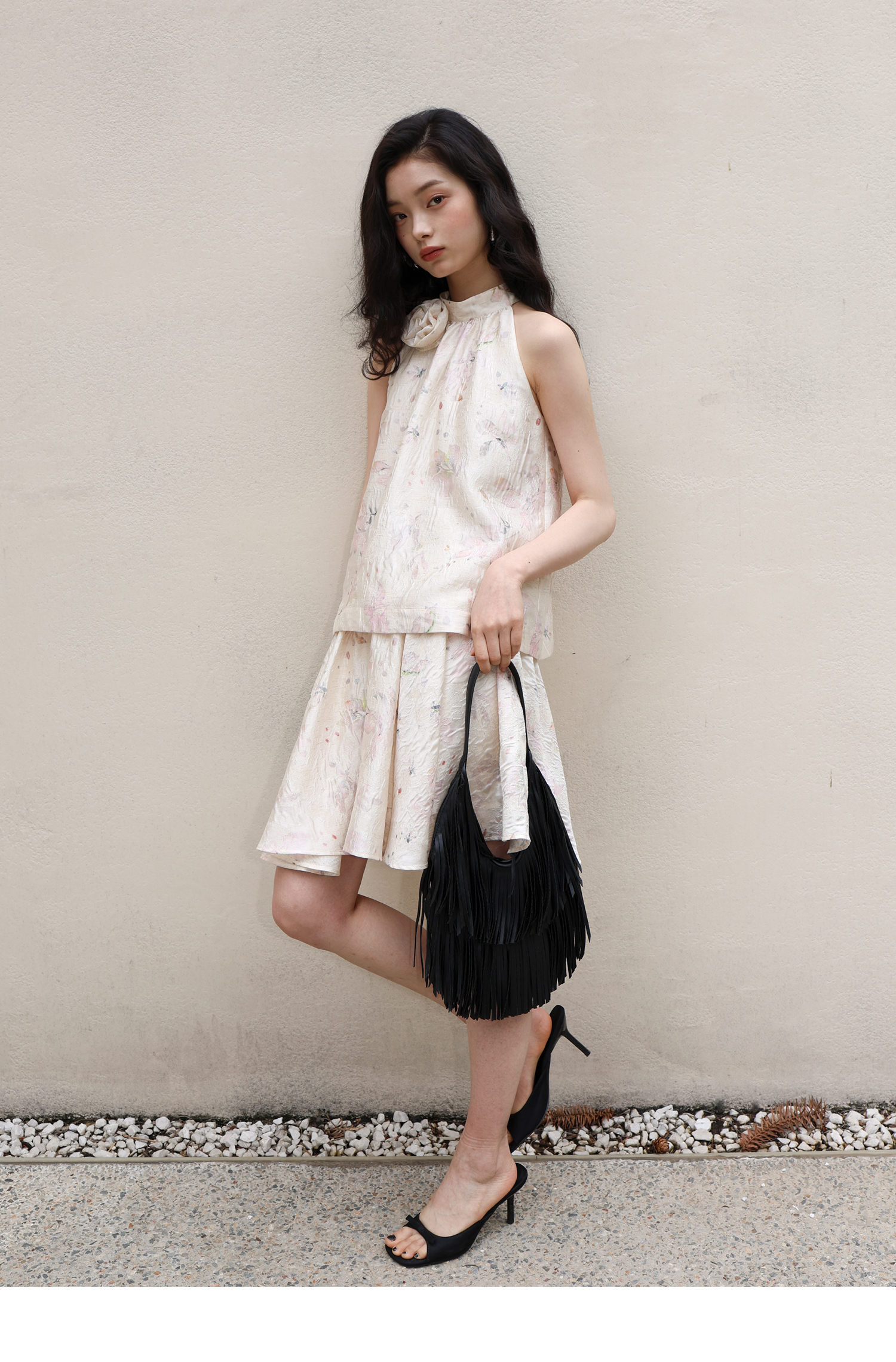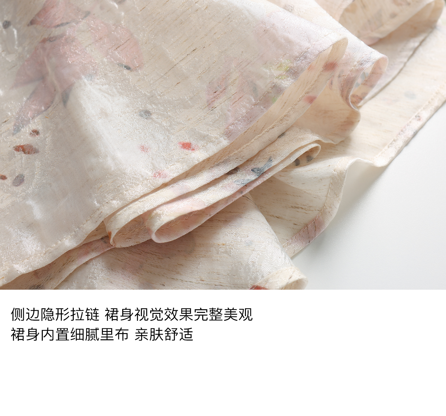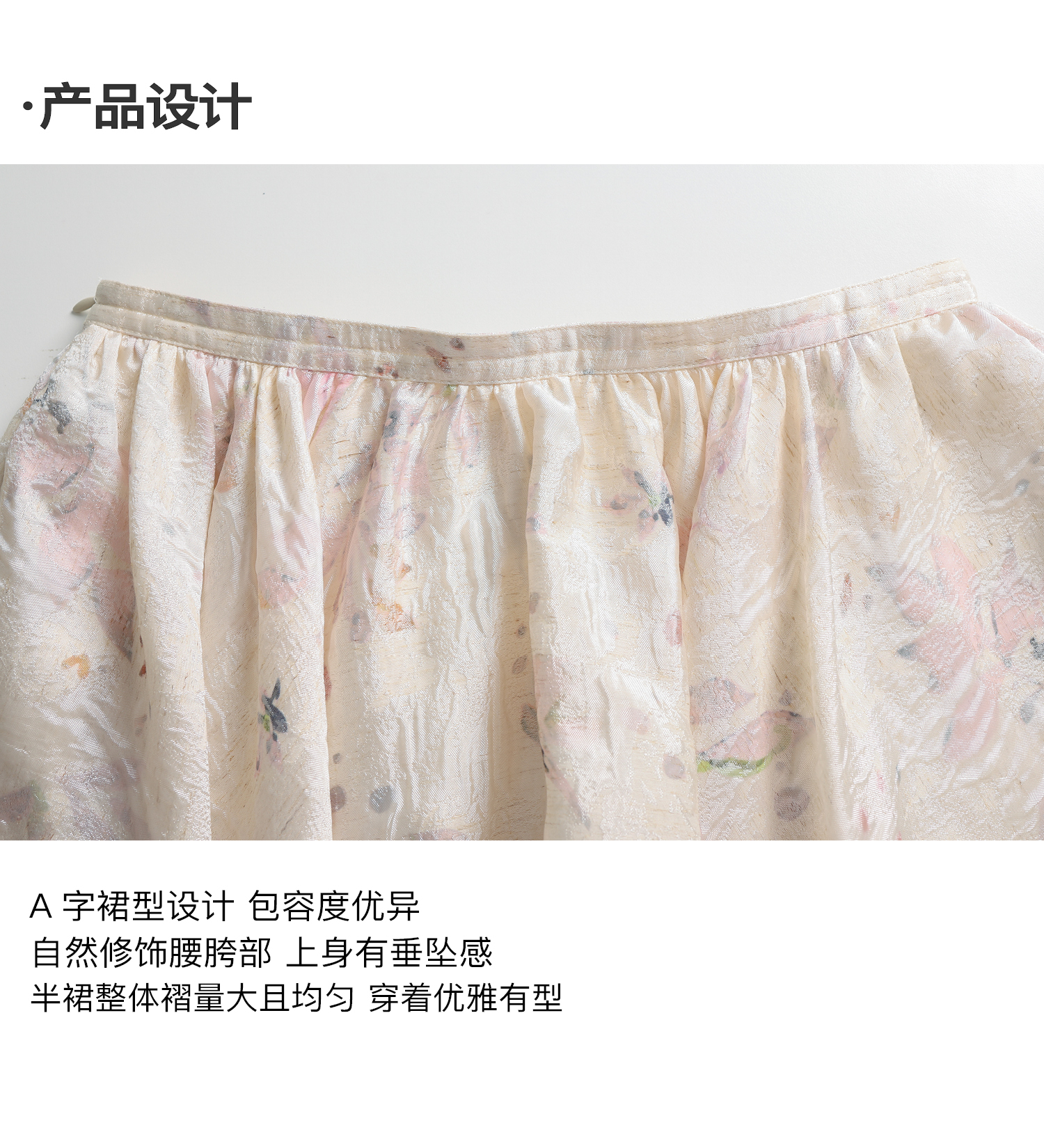素舶 亚麻混纺挺括透气不变形皱感提花碎皱大摆伞型A摆短半裙