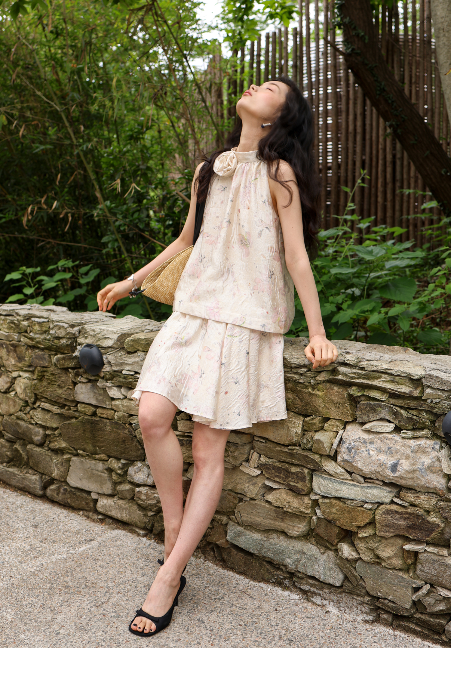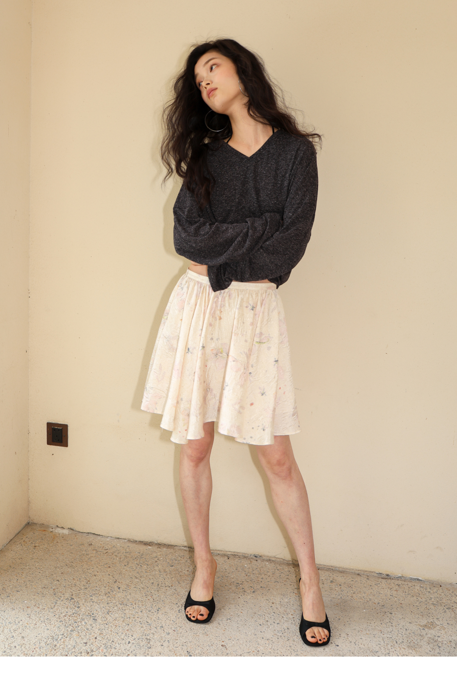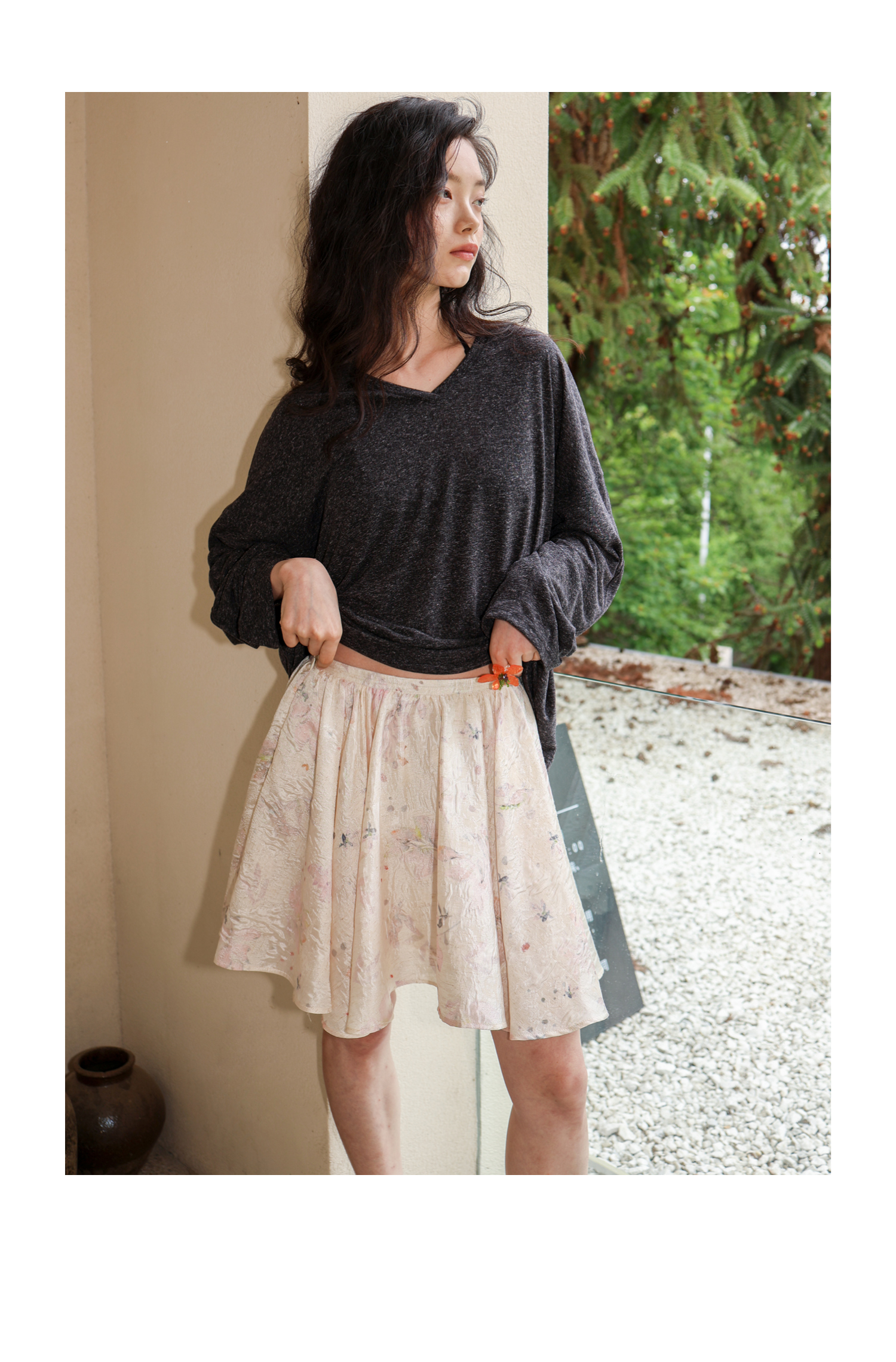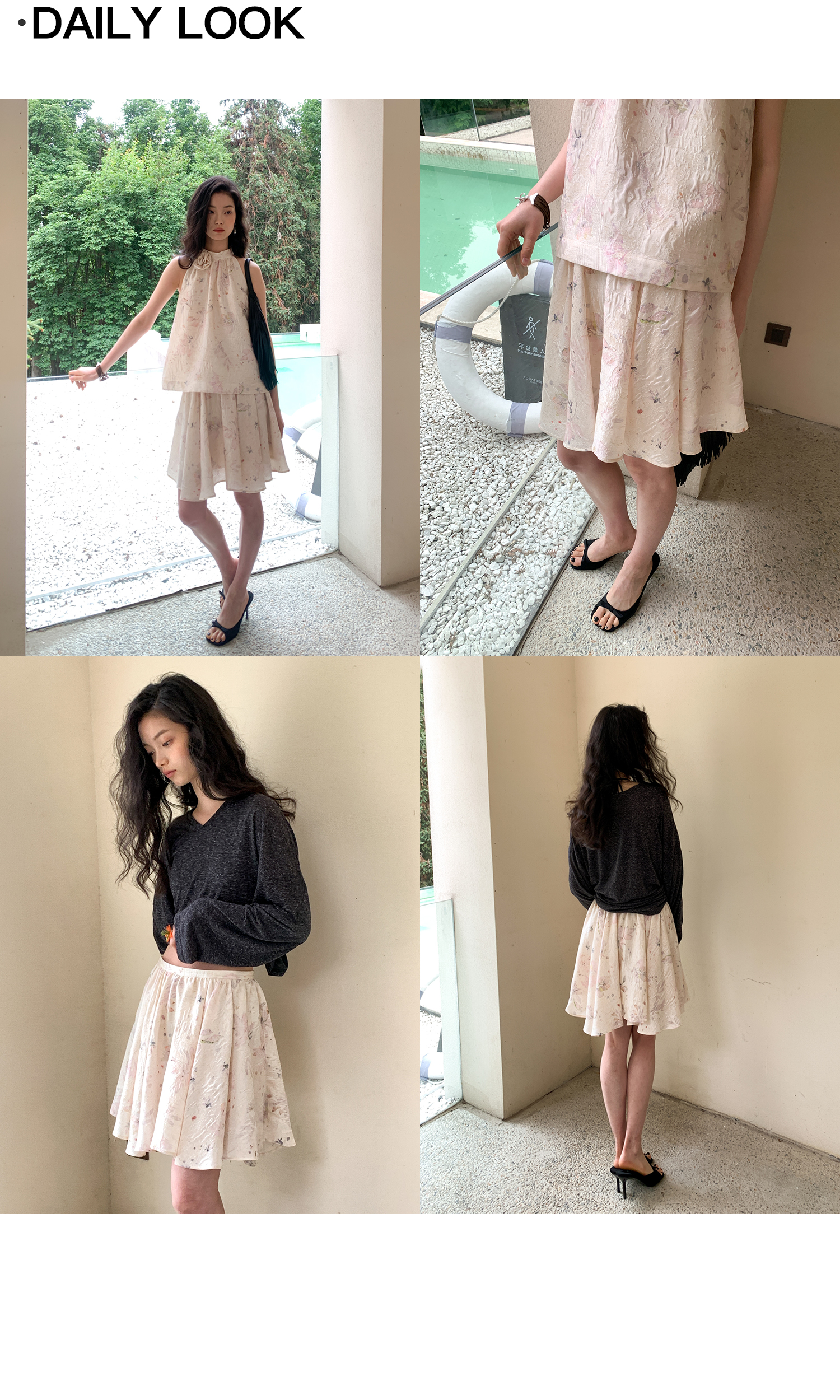 素舶 亚麻混纺挺括透气不变形皱感提花碎皱大摆伞型A摆短半裙