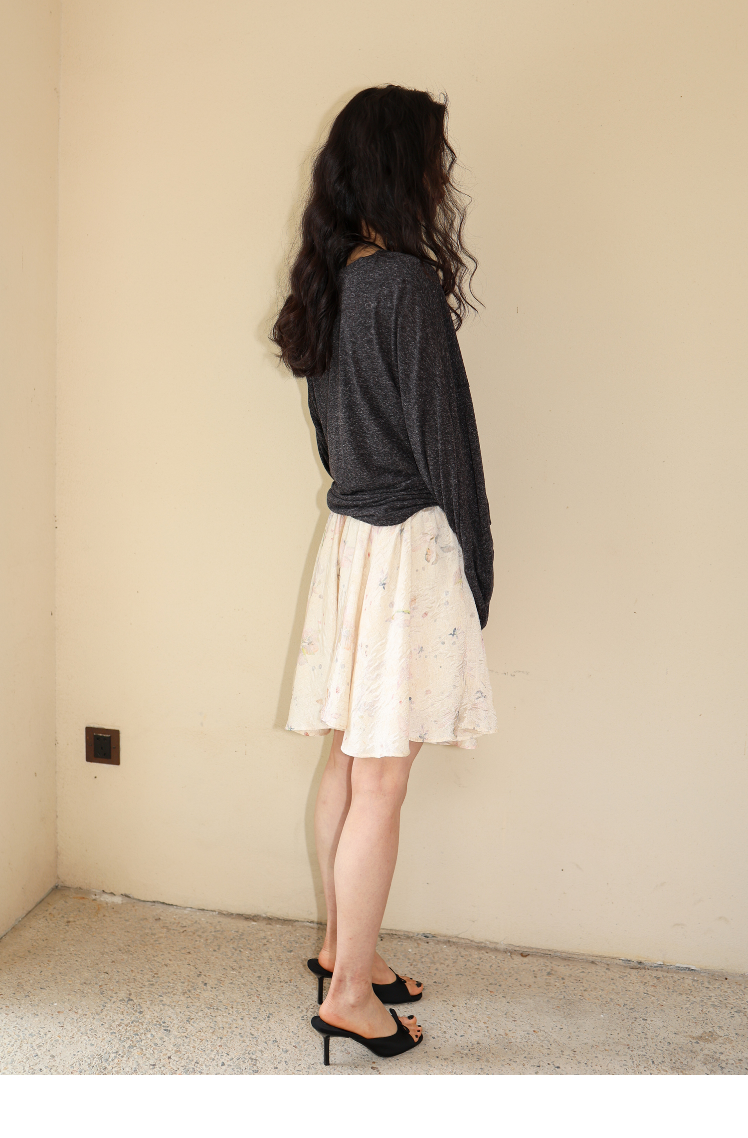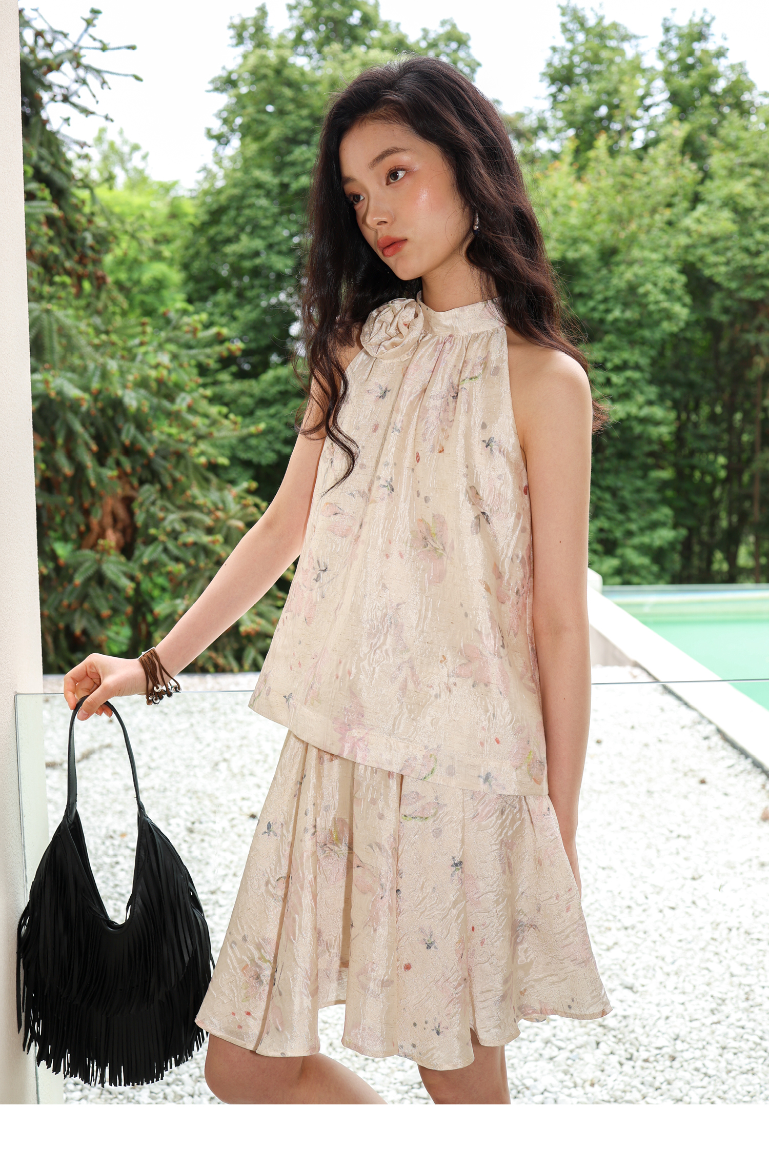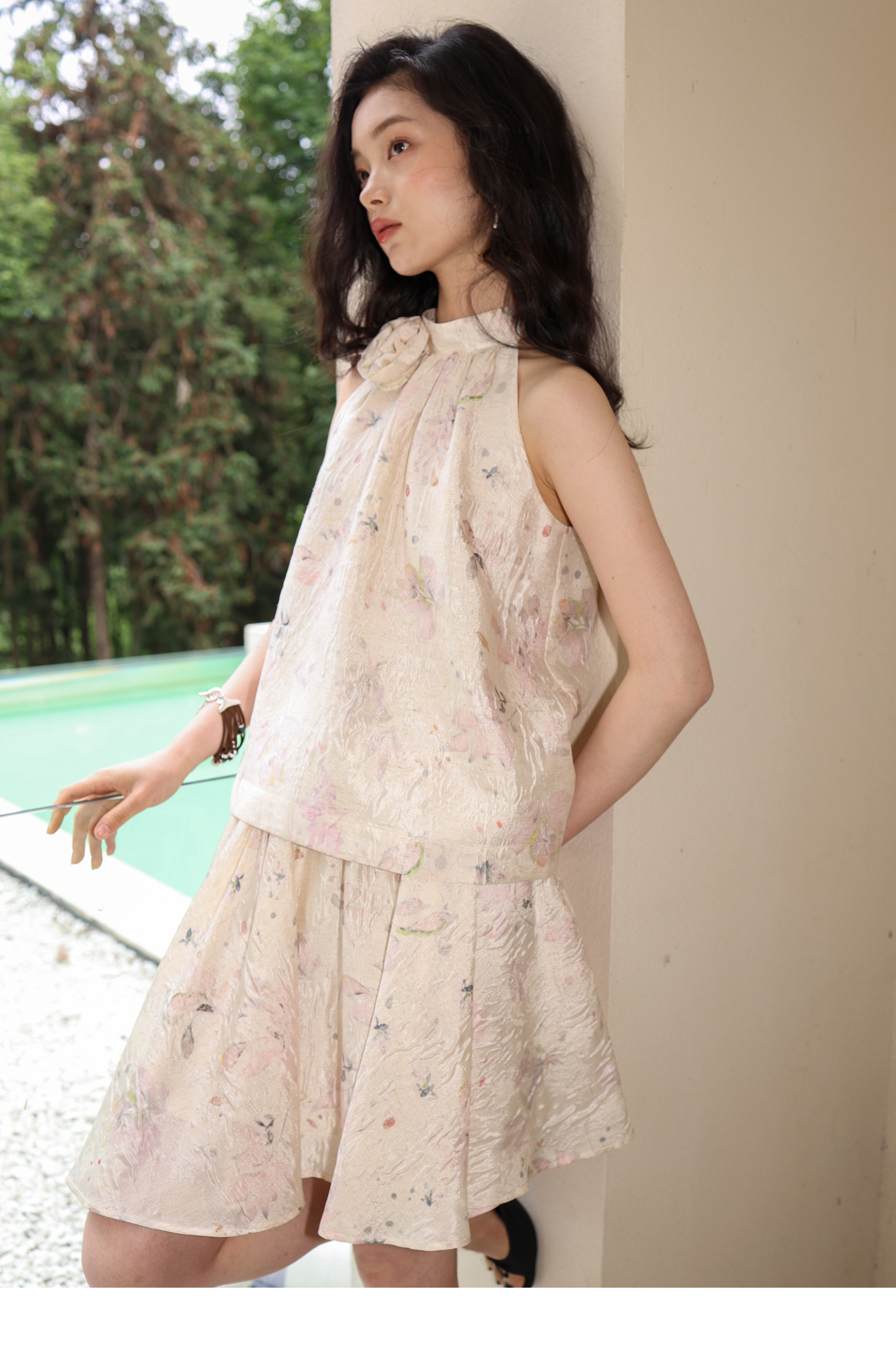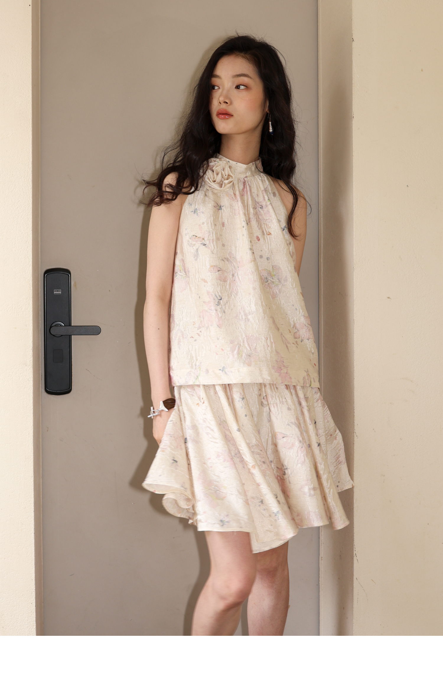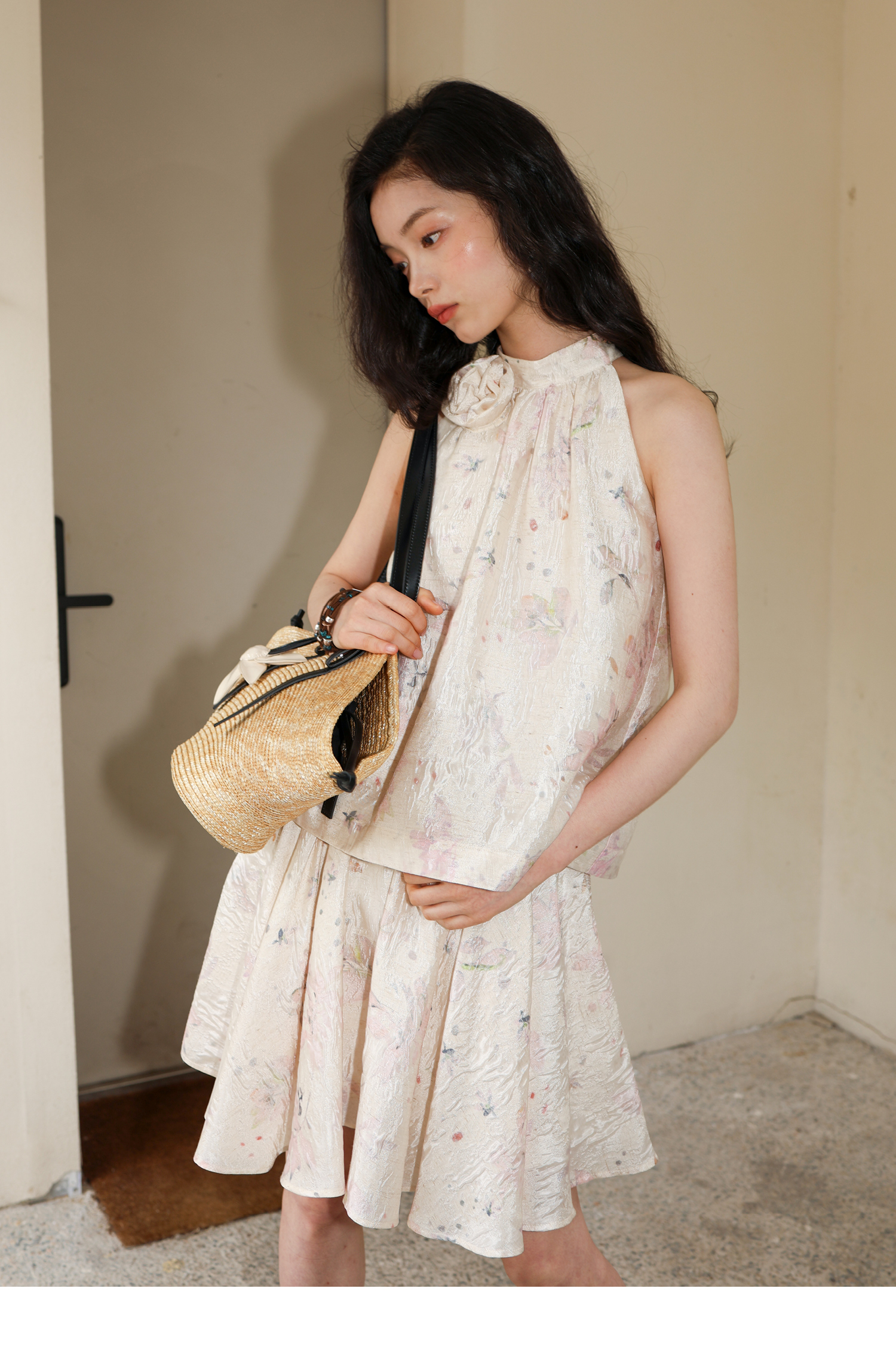 素舶 亚麻混纺挺括透气不变形皱感提花碎皱大摆伞型A摆短半裙