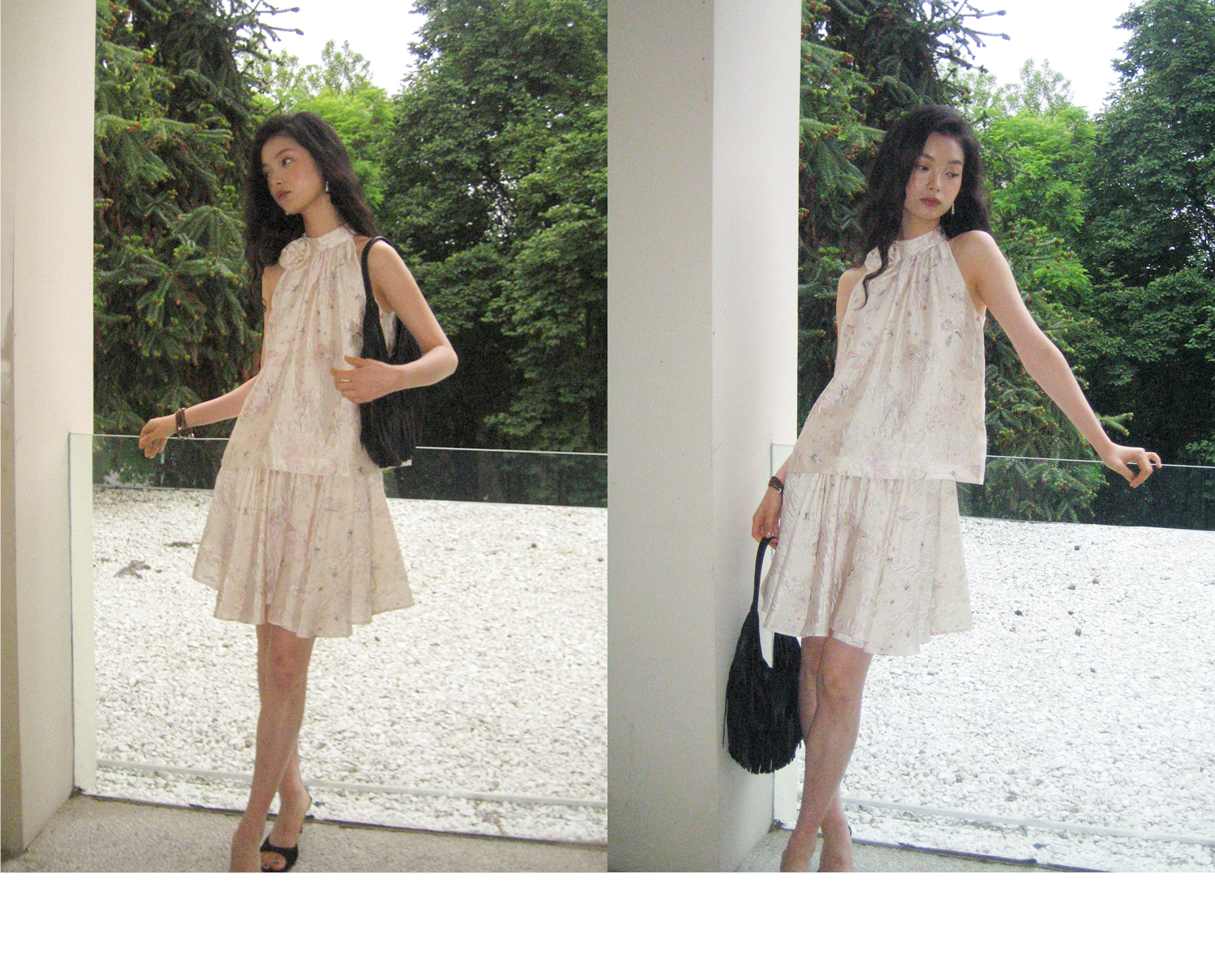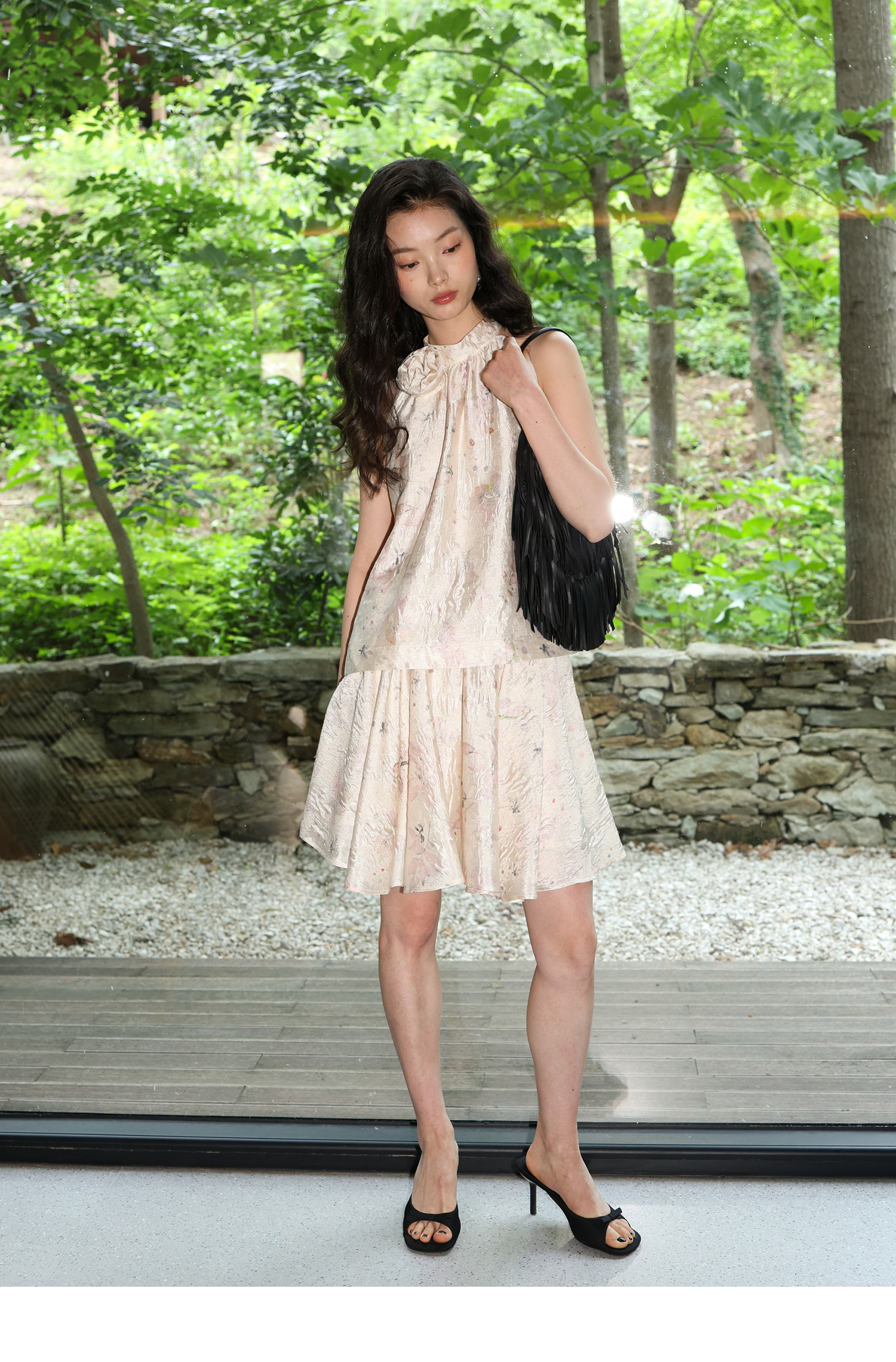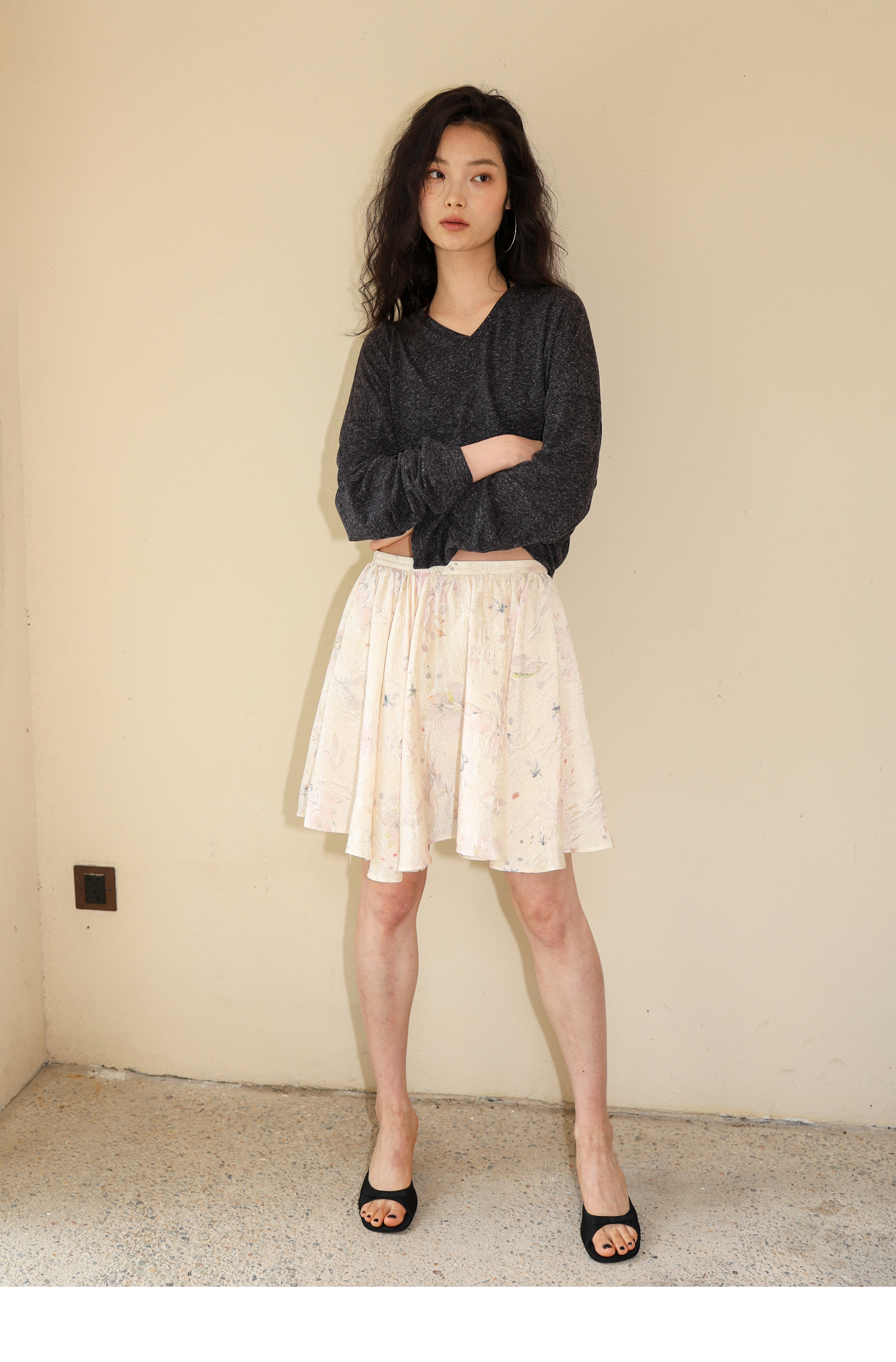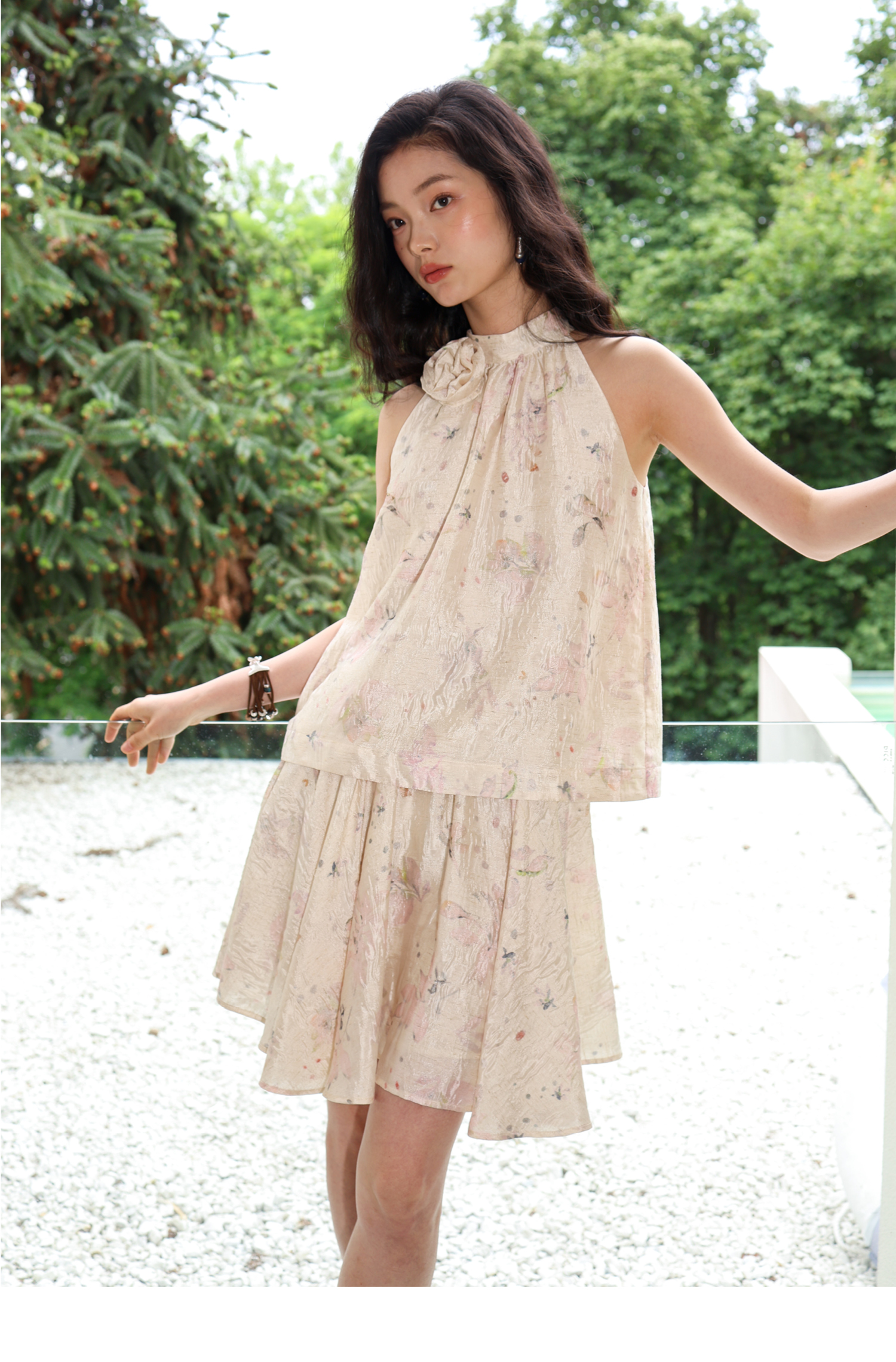 素舶 亚麻混纺挺括透气不变形皱感提花碎皱大摆伞型A摆短半裙
