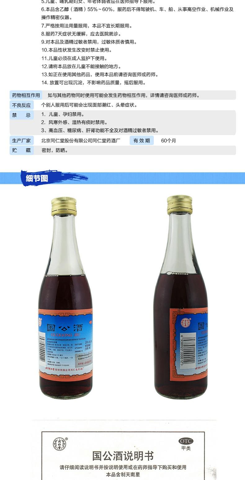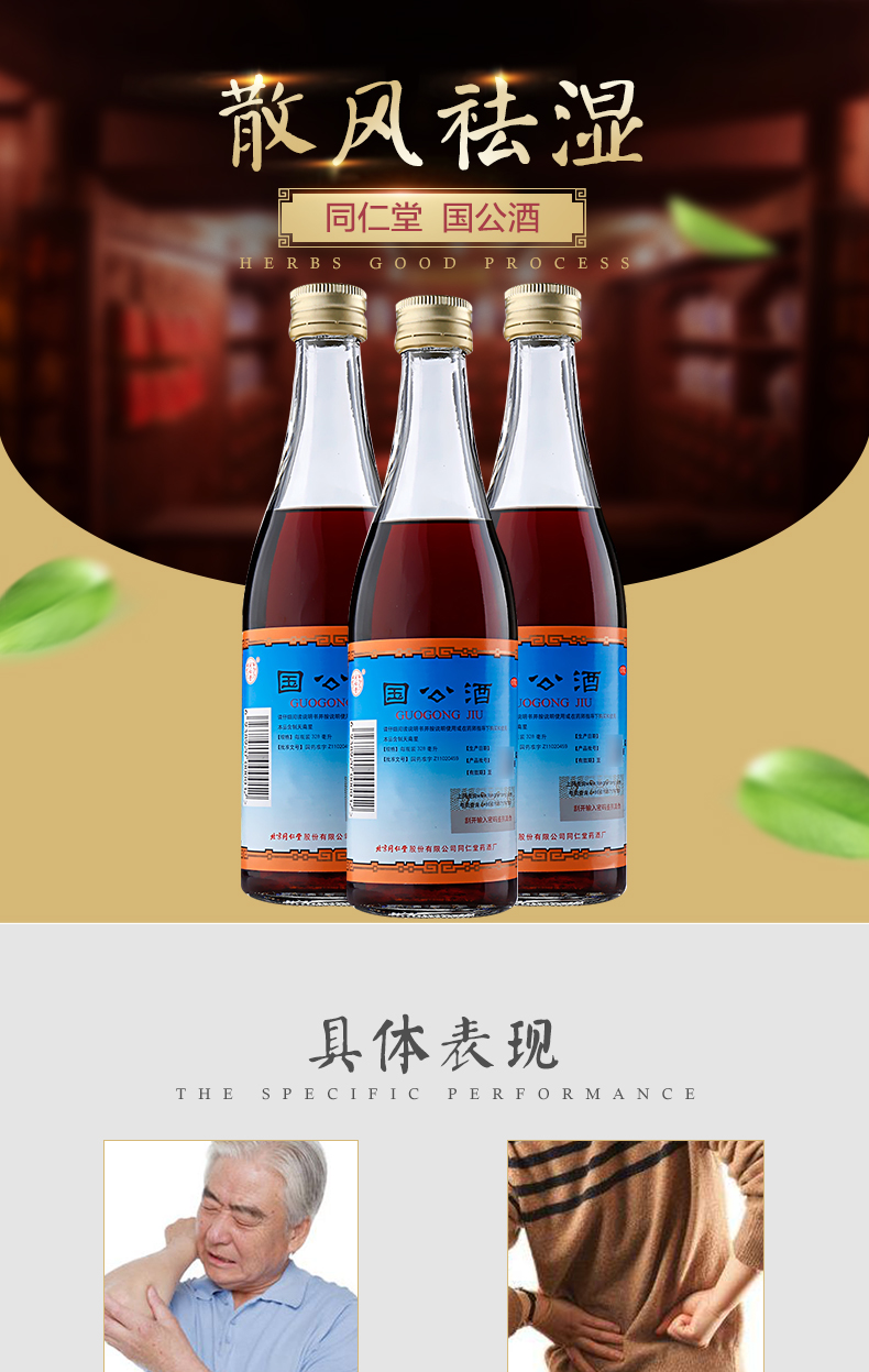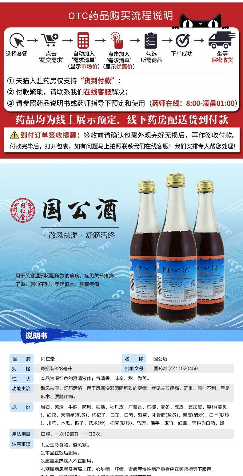 同仁堂国公酒简装328ML风湿药酒舒筋活络散风祛湿关节疼腰腿痛