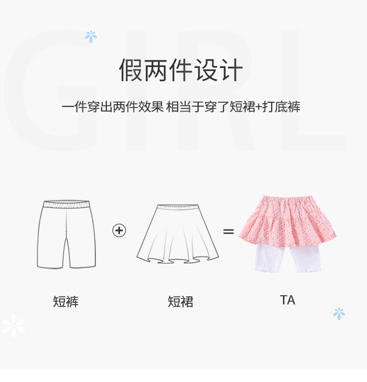 贝贝怡新款春夏季女童宝宝休闲假两件裙裤打底裤透气七分短裤202K2008