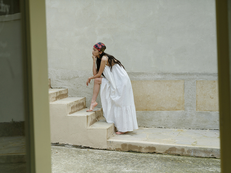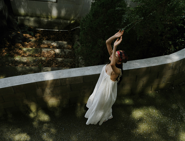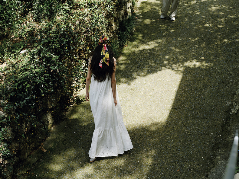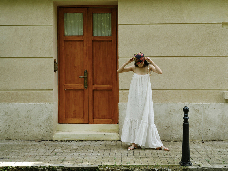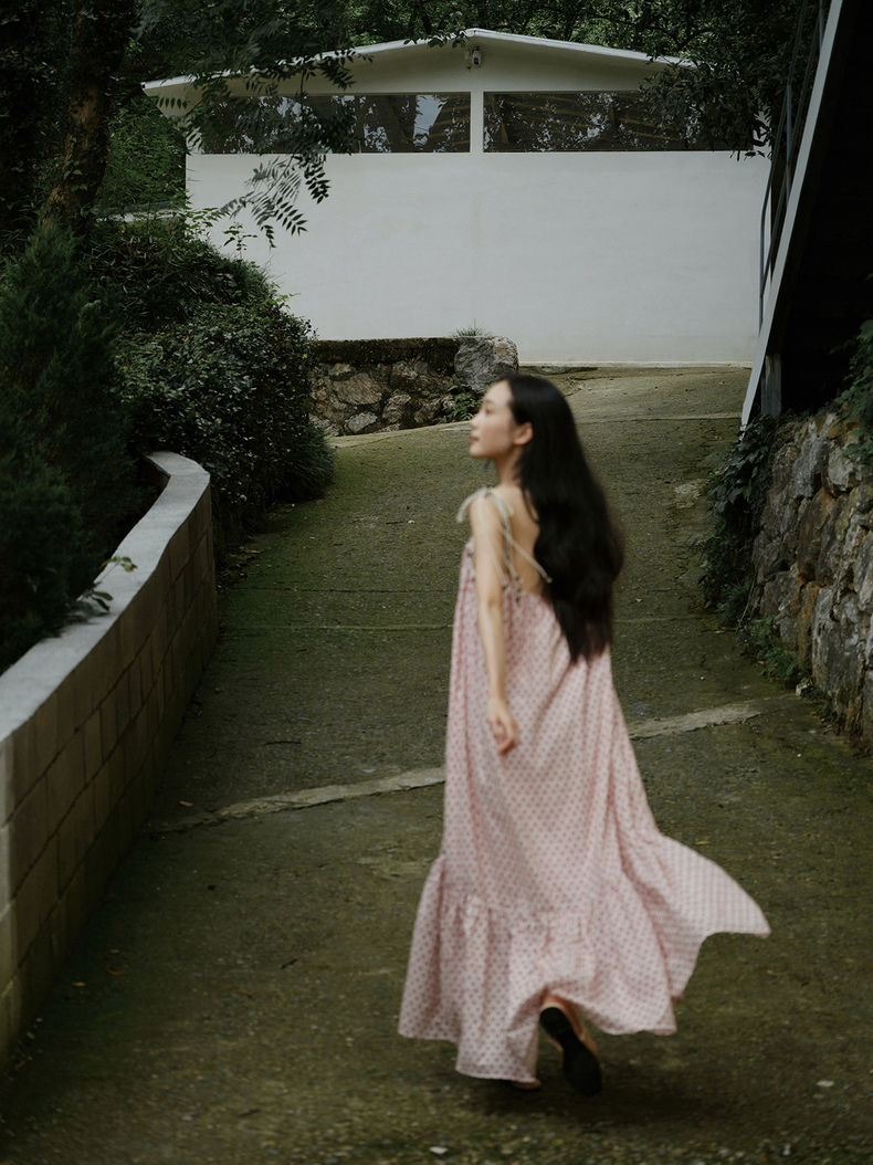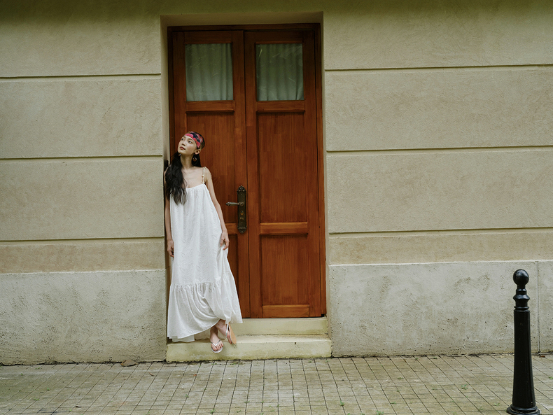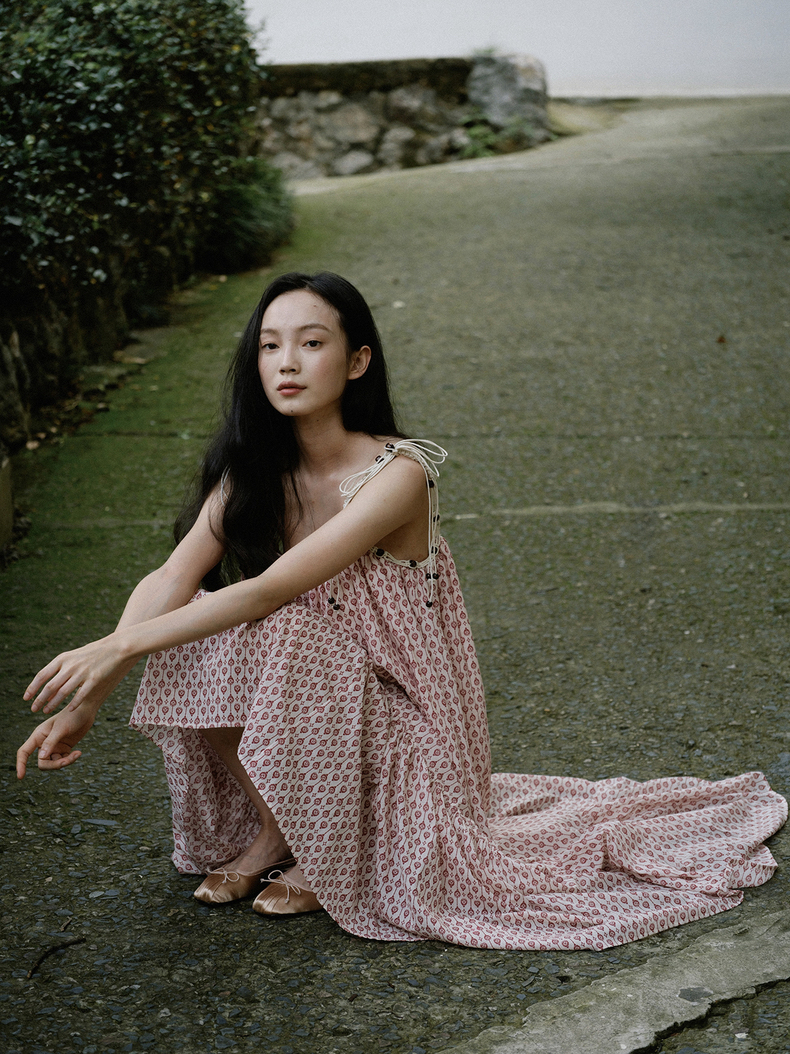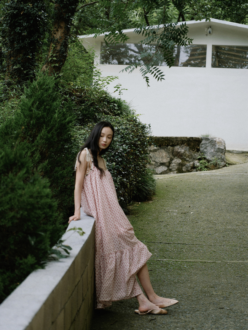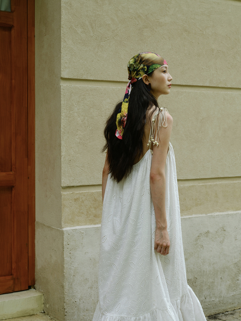 [特价] 夏日都市 手工编织串珠吊带 浪漫阔摆印花氛围感连衣裙 腰果刺绣白/印花铁锈红 100%棉
