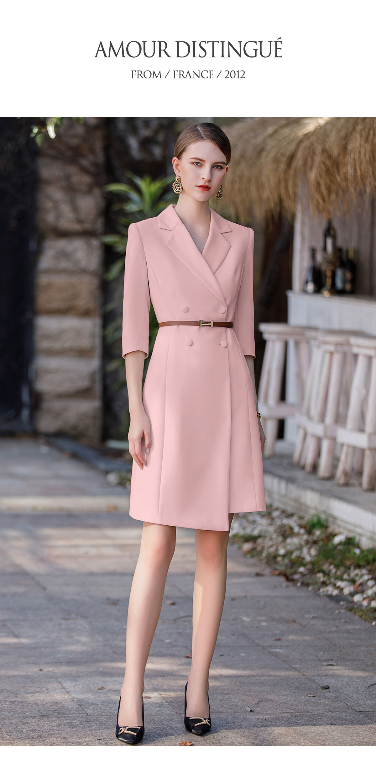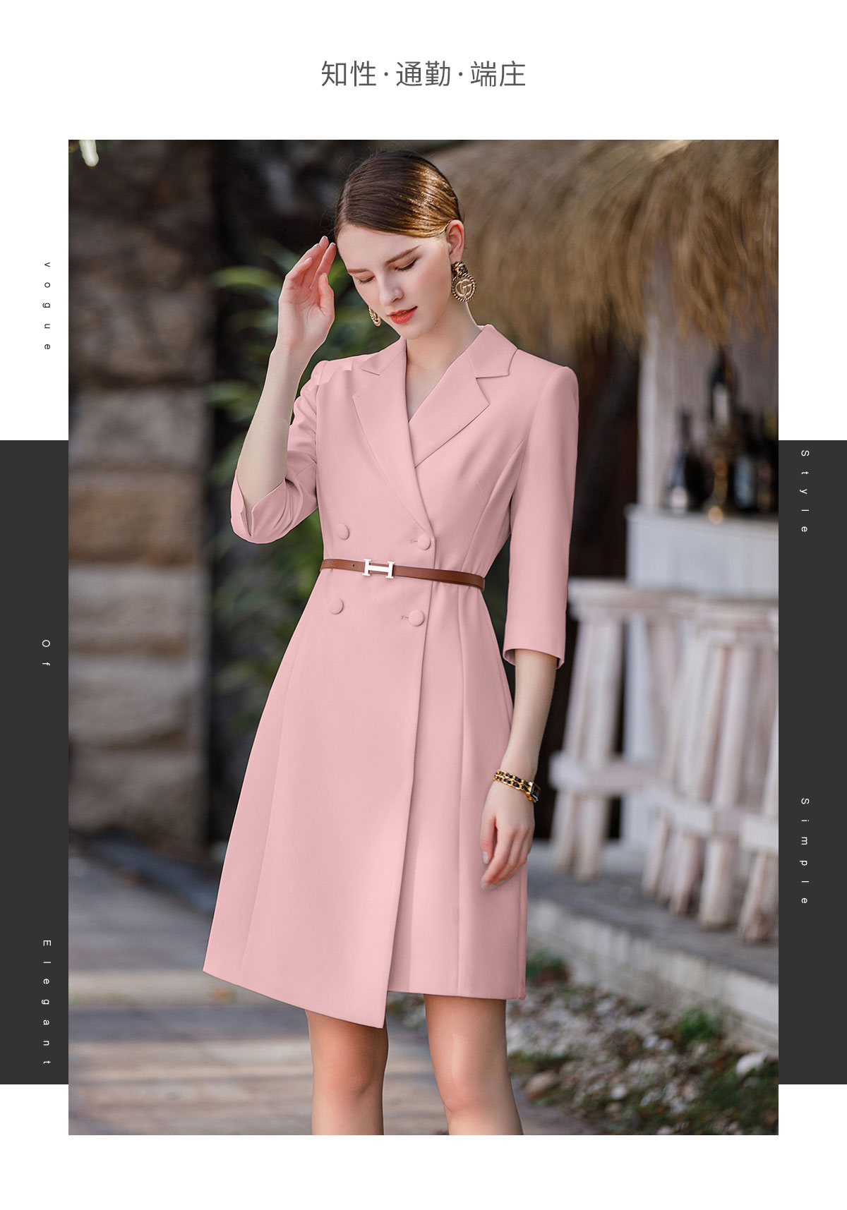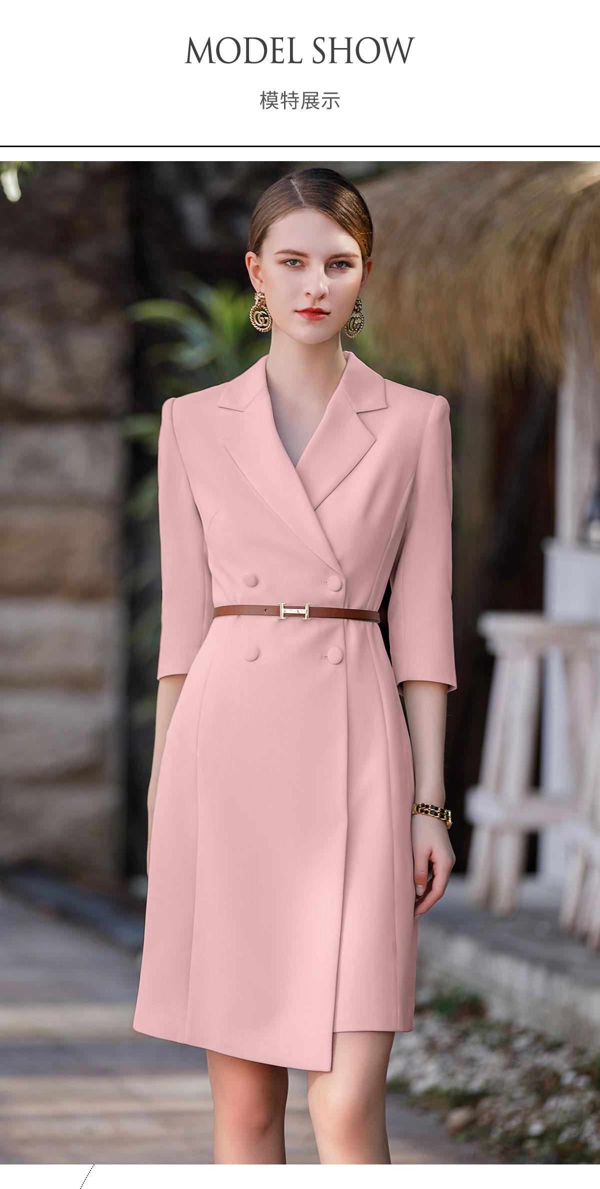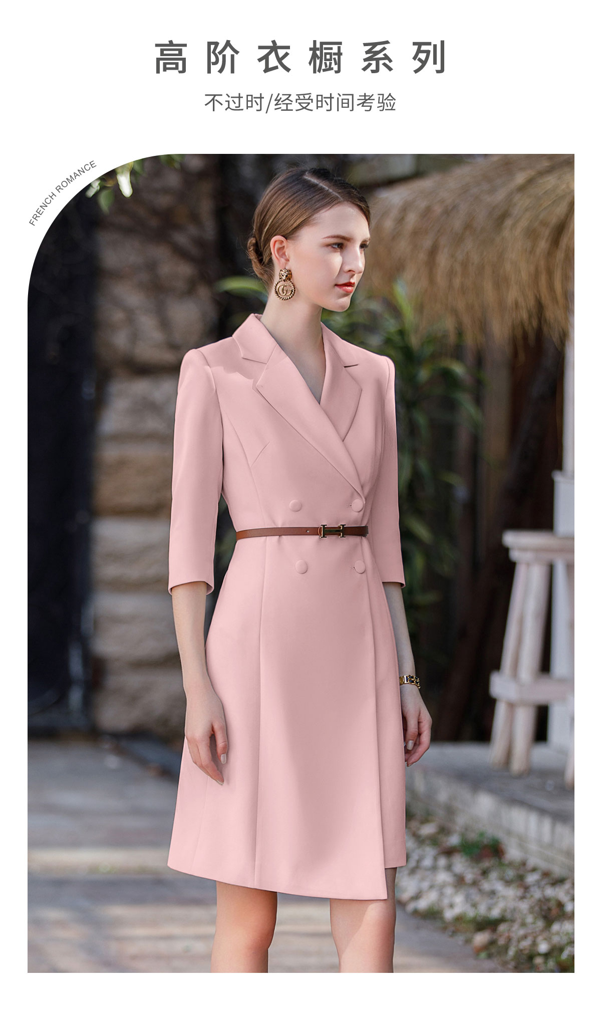 AD粉色主持人上镜服装女七分袖正装连衣裙收腰显瘦气质职业装工装