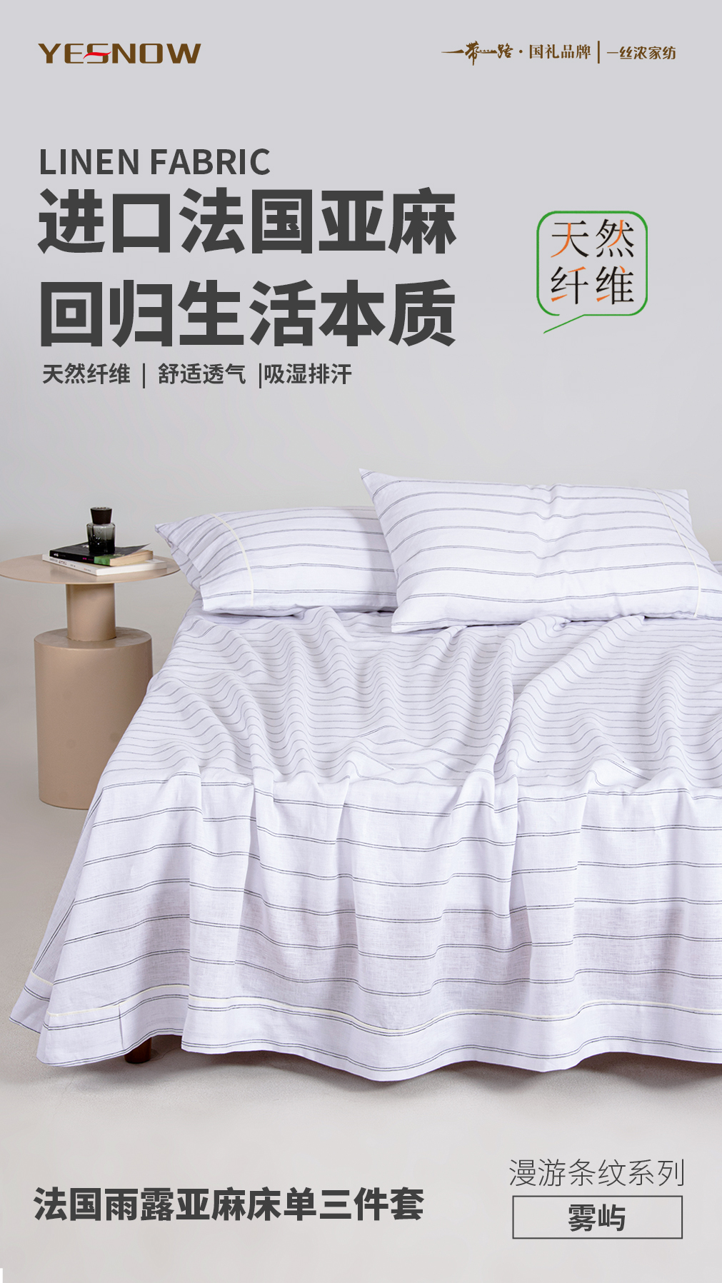 法国进口雨露亚麻三件套透气亲肤四季可用