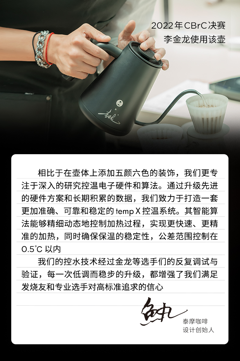 TIMEMORE/泰摩鱼PROX温控手冲壶 不锈钢家用细口手冲咖啡壶 竞赛壶电动控温