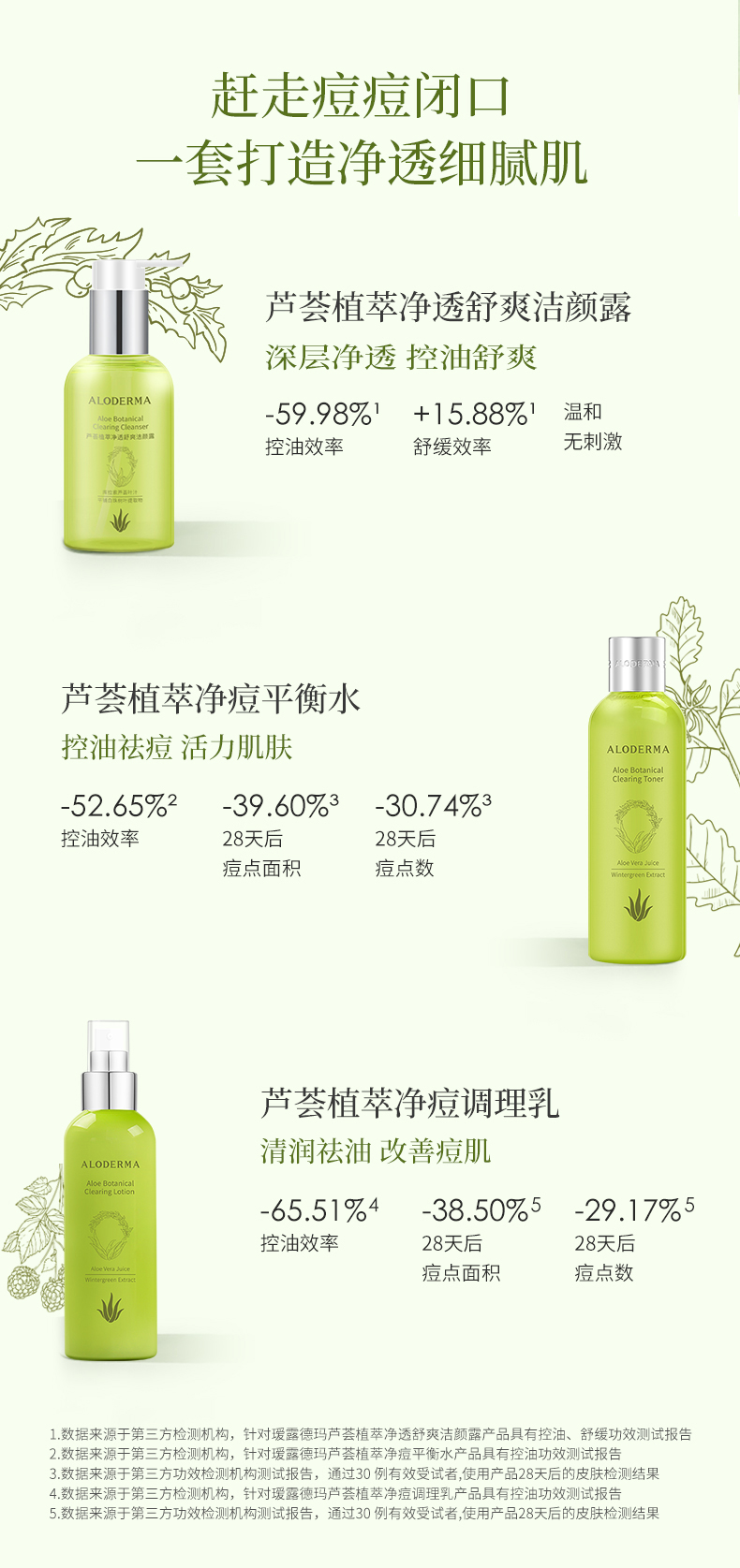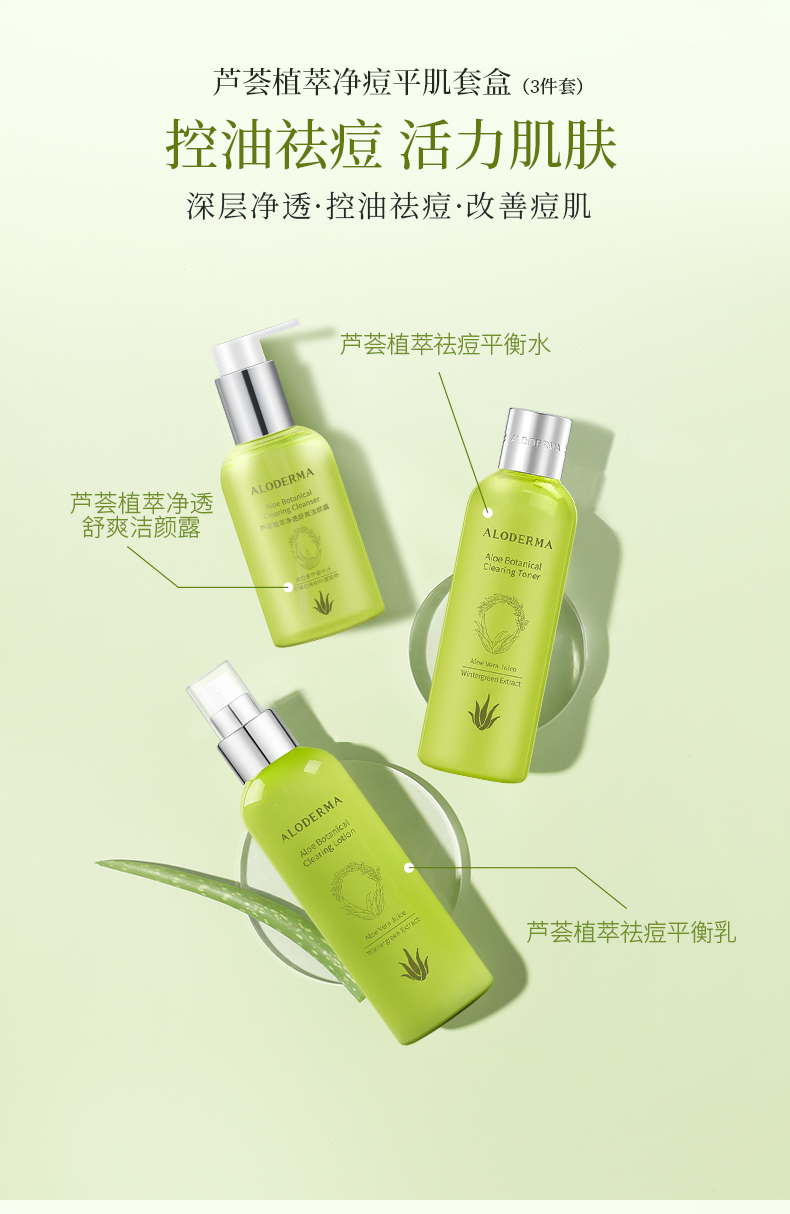 【买就送控油体乳300g】芦荟植萃净痘平肌礼盒(洁面+水+乳)