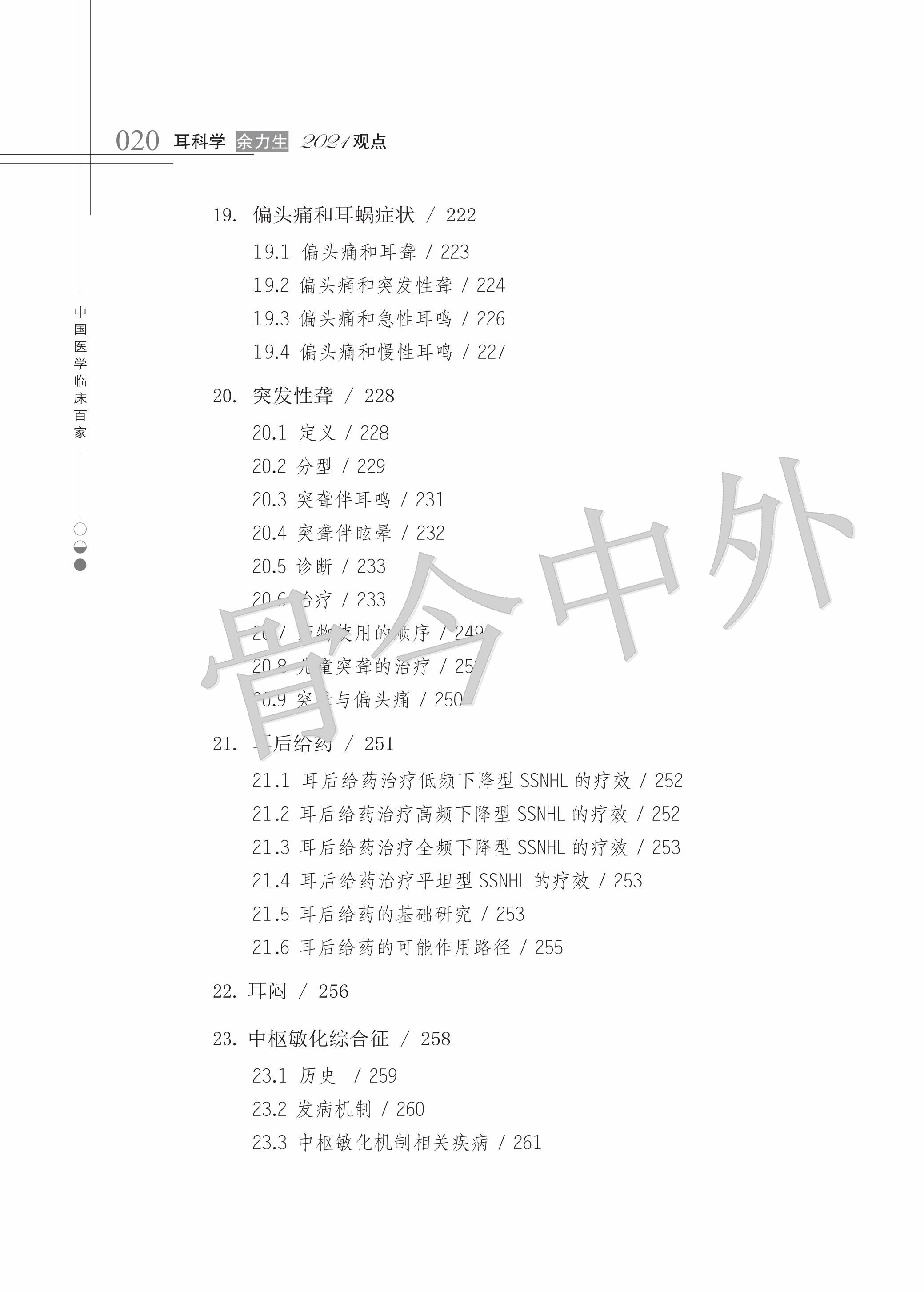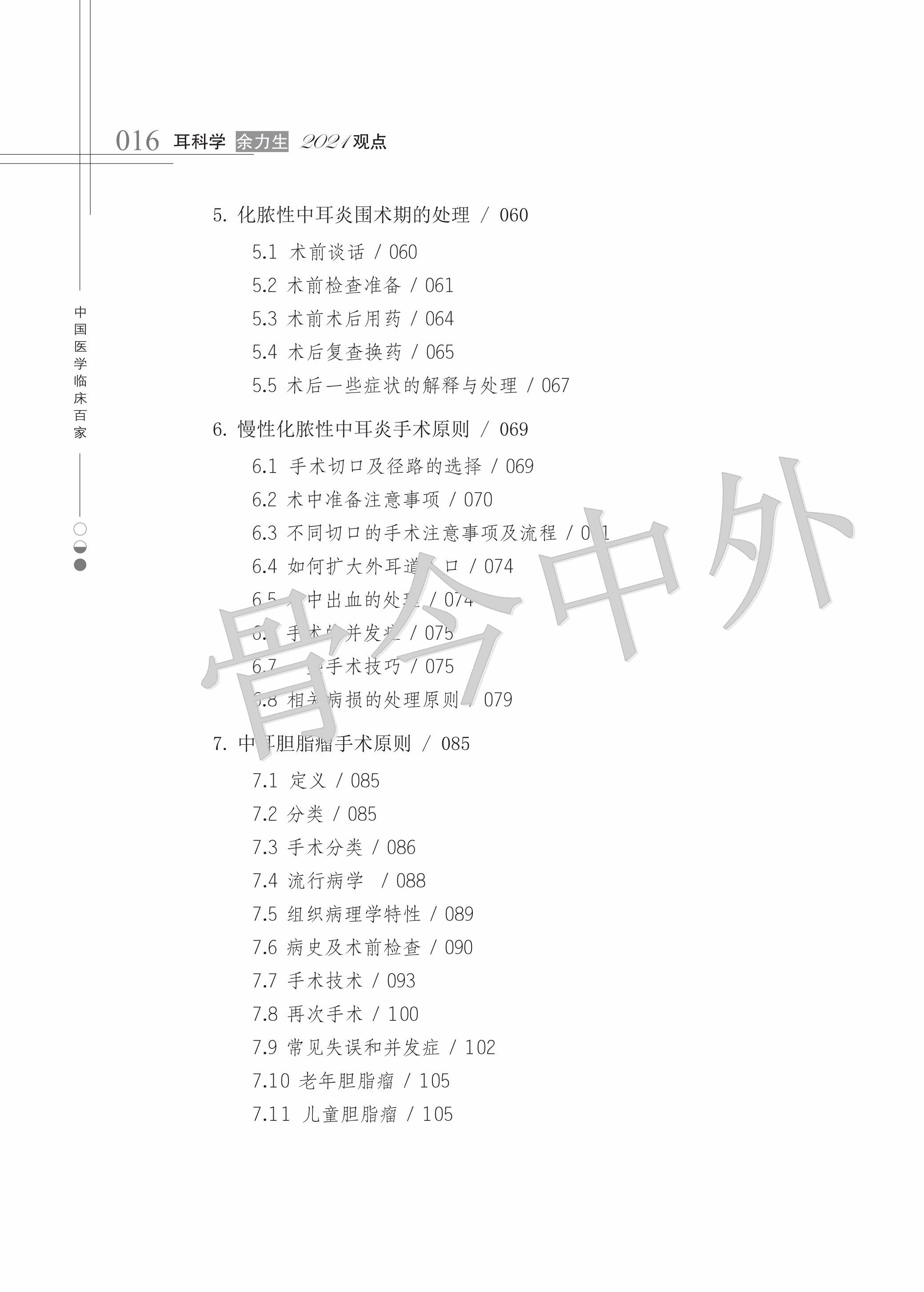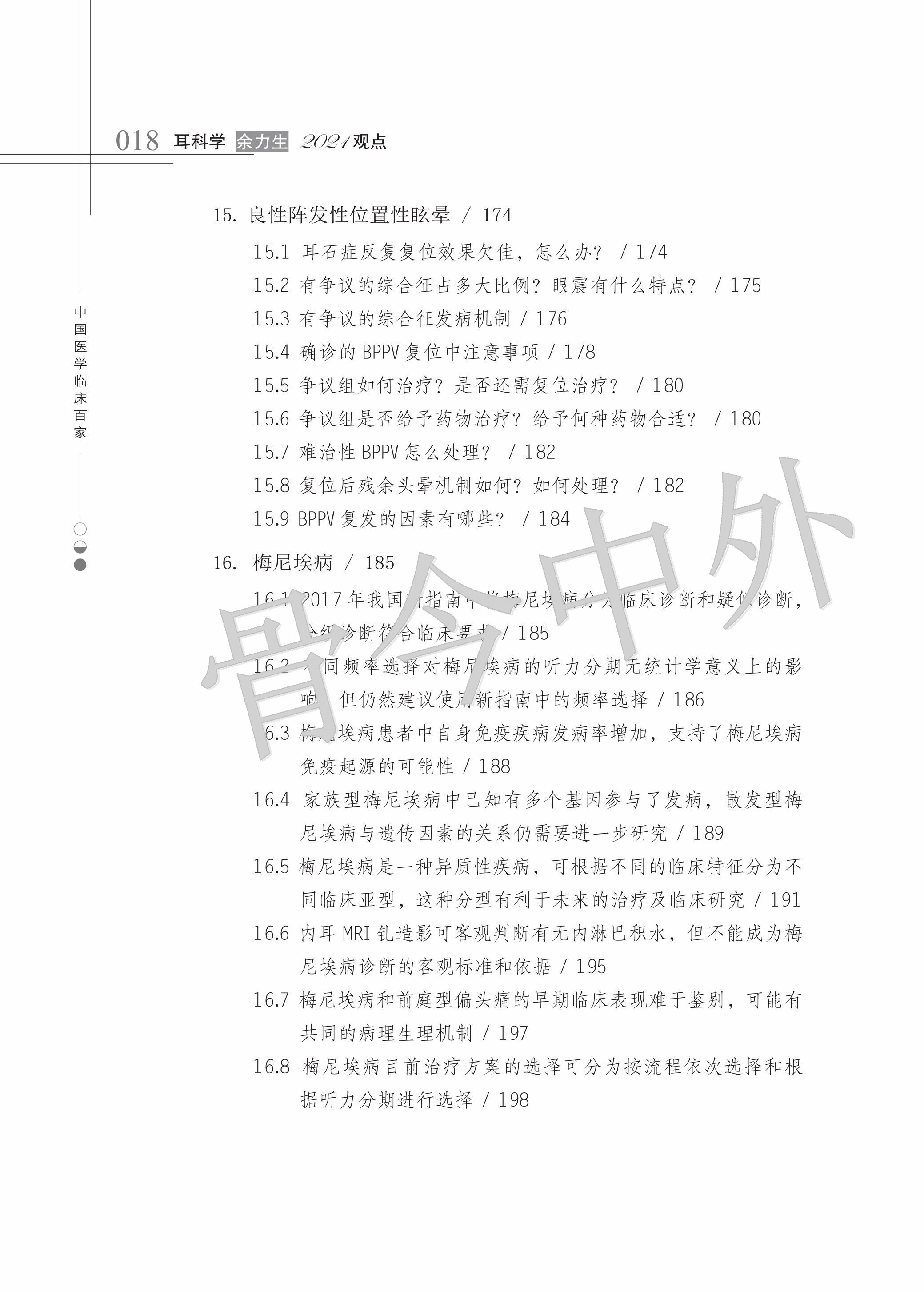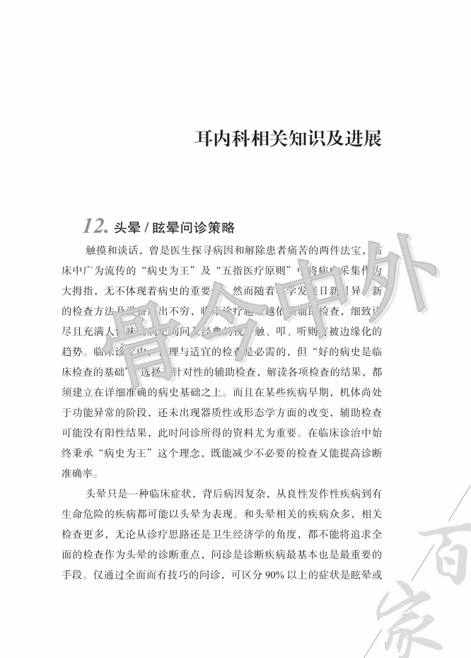 本书稿应运而生。书稿共3个部分,分别从耳科生理及疾病、耳外科相关知识及进展、耳内科相关知识及进展展开论述。在耳外科相关知识及进展部分,对中耳炎、中耳胆脂瘤、梅尼埃病等疾病的围手术期和手术期处理及手术原则进行了详细的介绍。在耳内科相关知识及进展部分,不仅介绍了有关听力学的检查方法,如问诊策略、前庭功能检查、床旁查体等;还对良性阵发性位置性眩晕、梅尼埃病、前庭性偏头痛、突聋、中枢敏化综合征、耳鸣等耳内科常见疾病进行了阐述,并发表了作者自己的看法,紧扣临床实践。