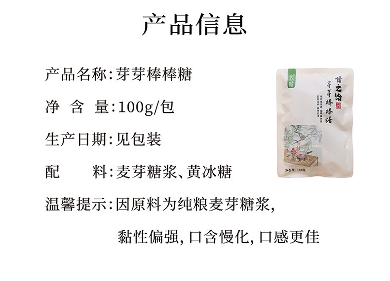 芽芽棒棒糖100g 浓浓麦香味 甜而不腻 儿时的味道 多联装