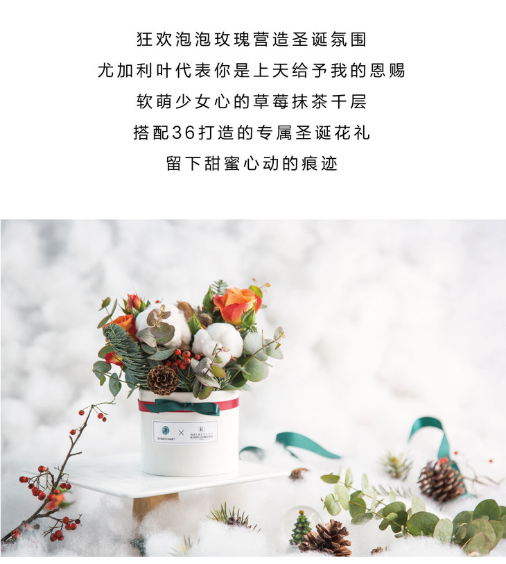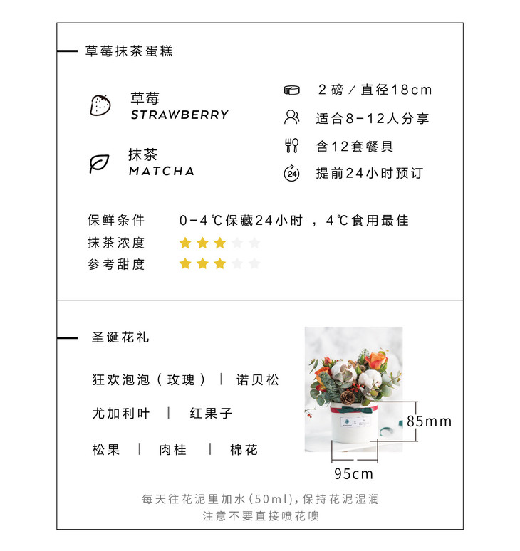 限量款圣诞心动组合(草莓抹茶千层 x 圣诞花礼)