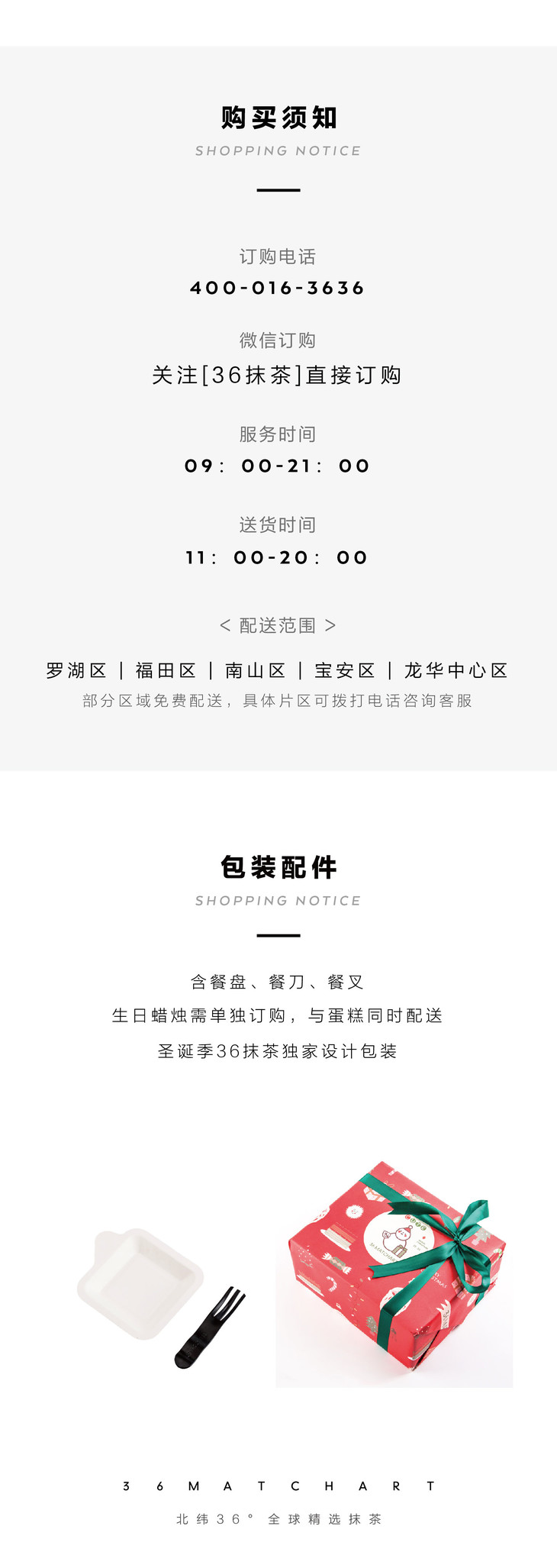 我们目前拥有36MATCHART和36cake两个品牌,主营抹茶甜品与新鲜蛋糕,深受数百万抹茶控和甜品控的拥趸。好吃安心,奶油只选法国铁塔。全城3小时免 费速达。客服热线400-016-3636