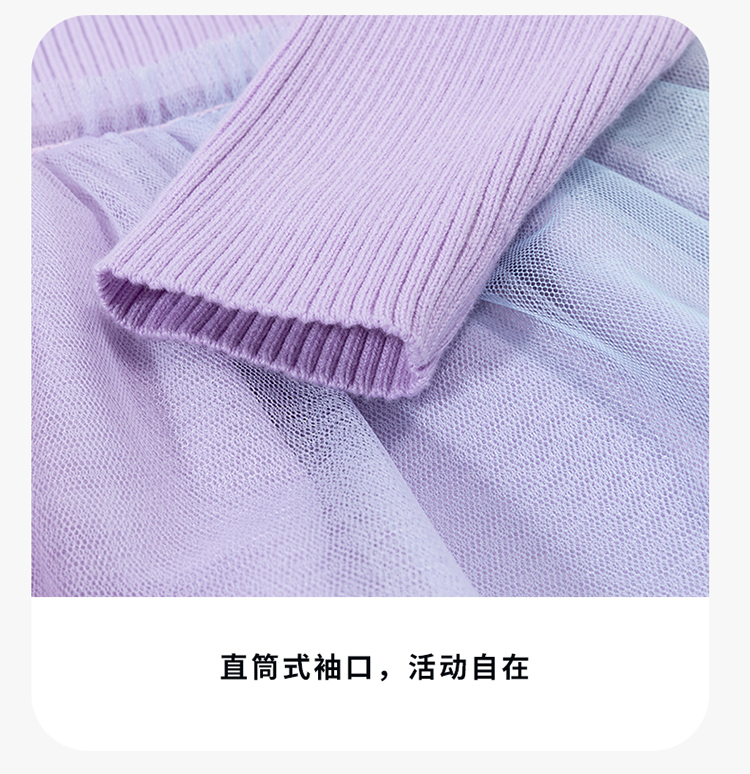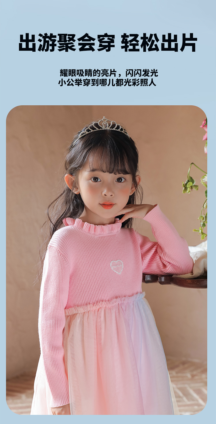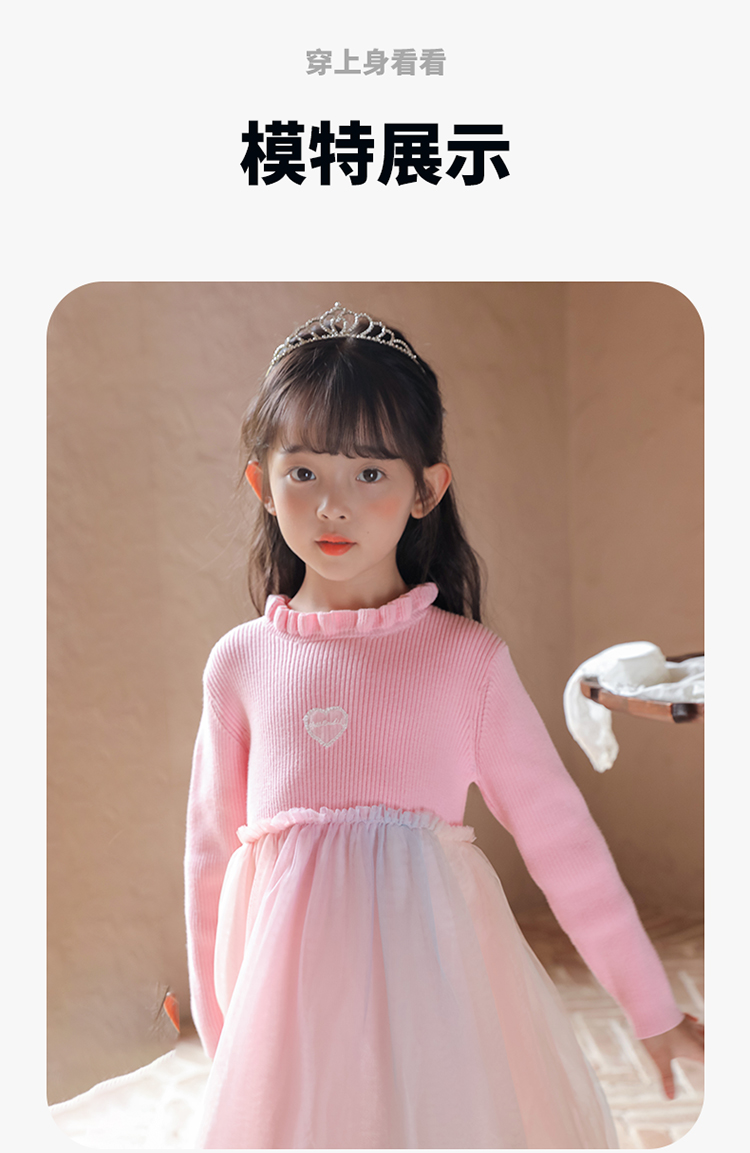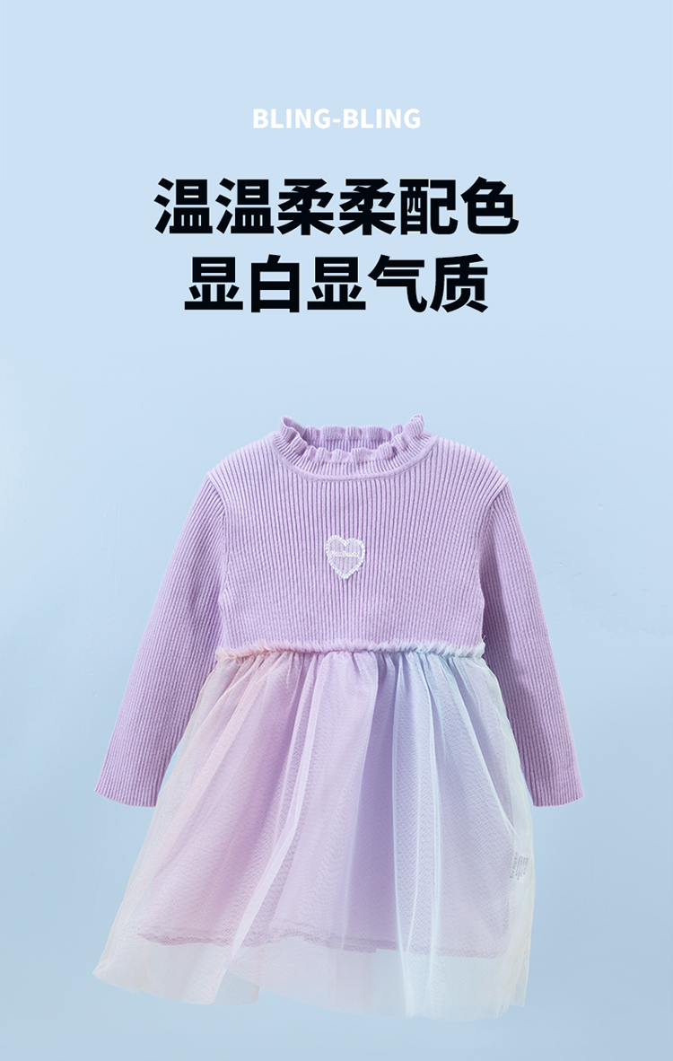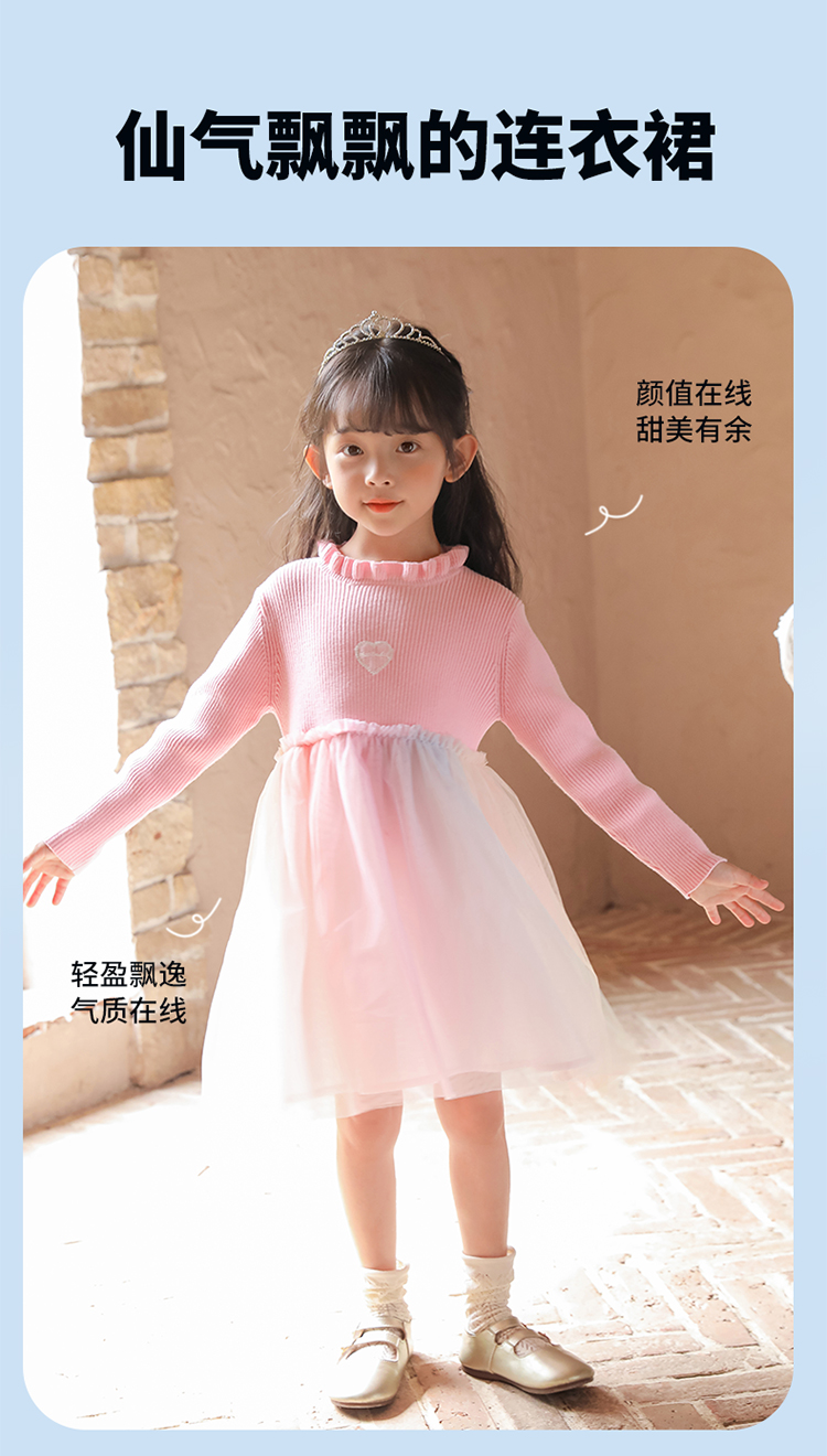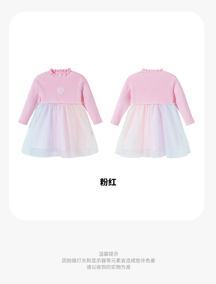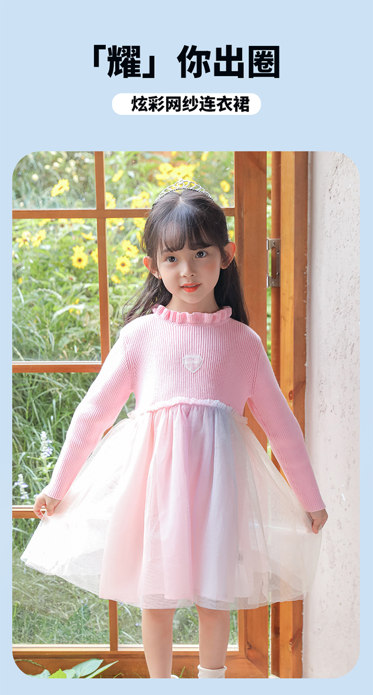 贝贝怡童装春季新款儿童甜美针织裙小女孩炫彩网纱长袖连衣裙233Q381