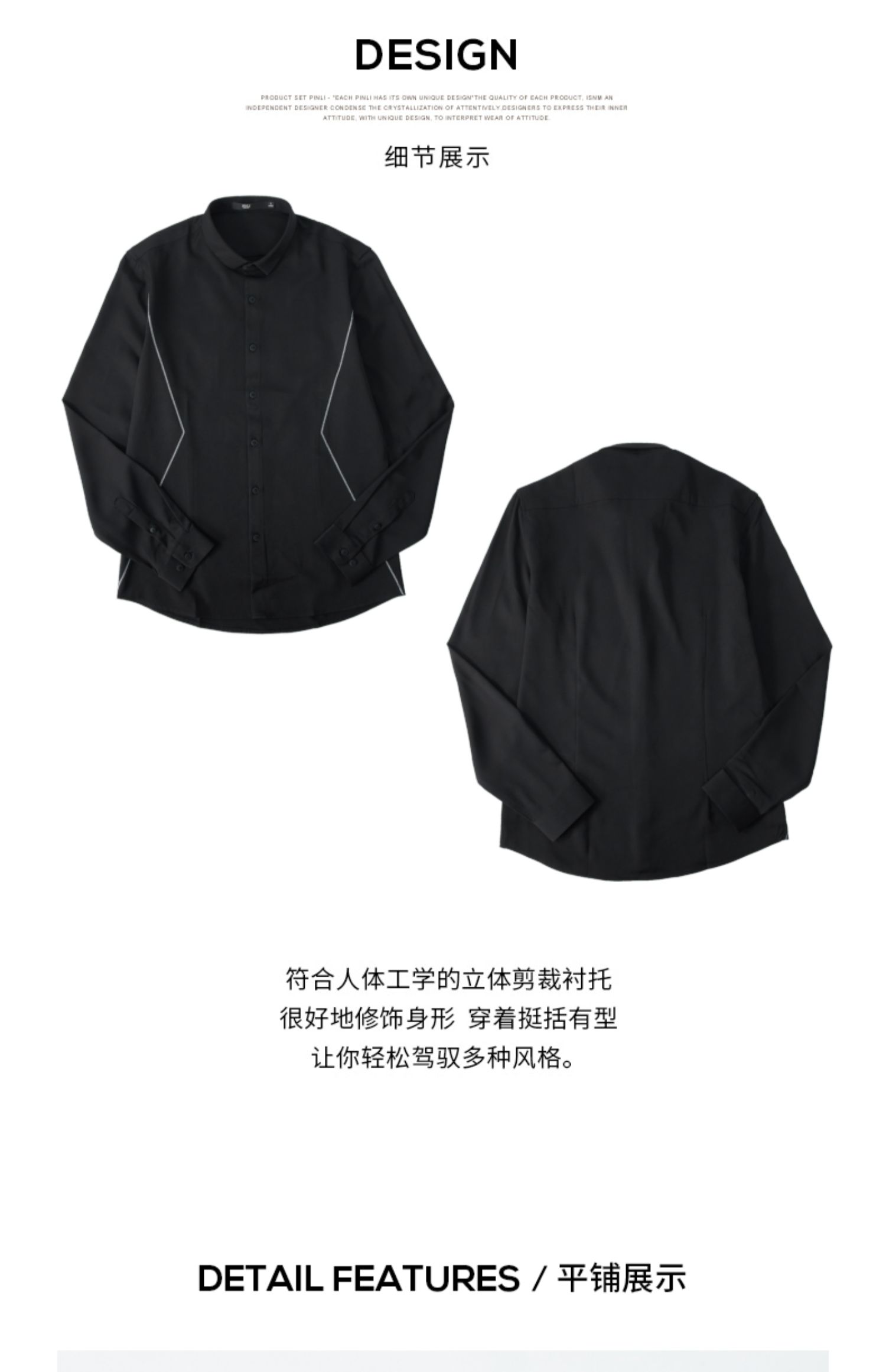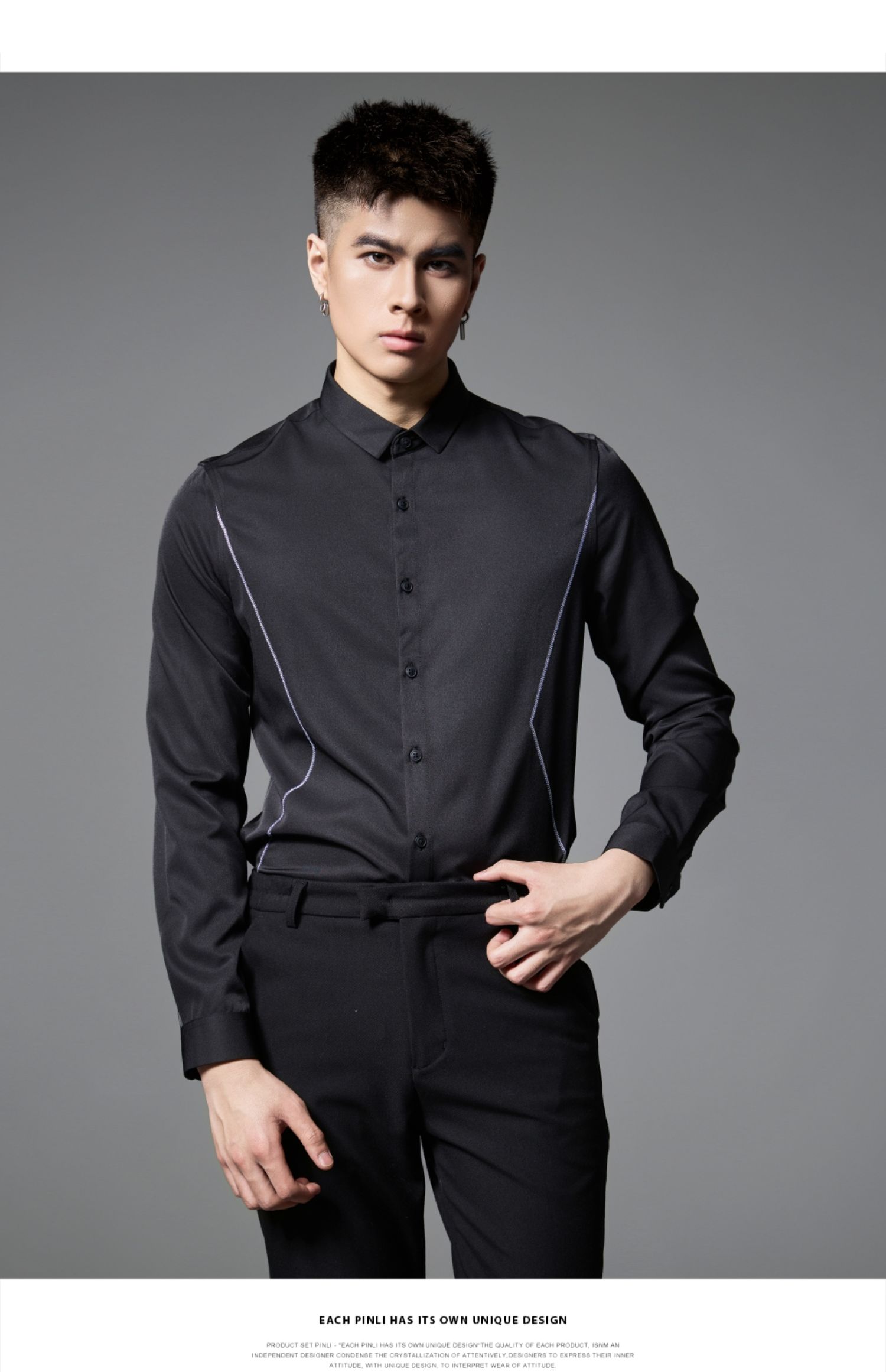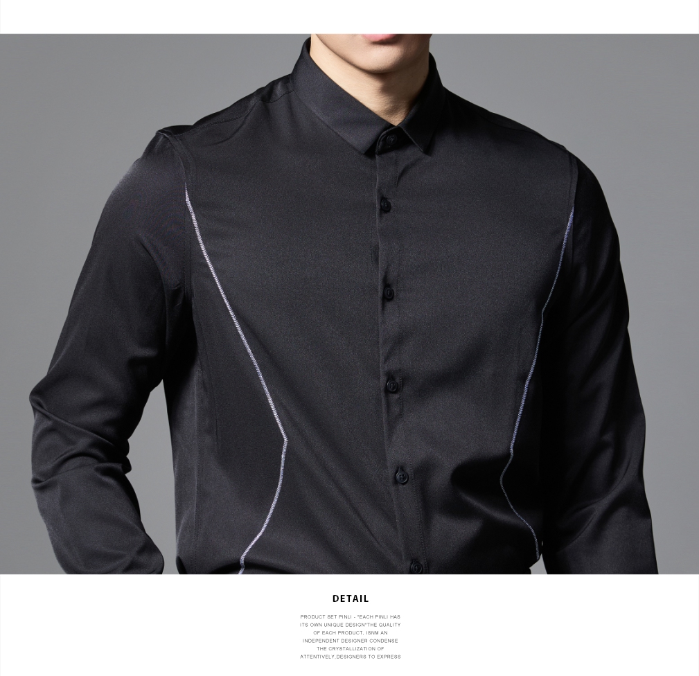 PINLI品立2024秋季新品商务休闲长袖衬衫男士辑明线百搭内搭衬衣B243113106