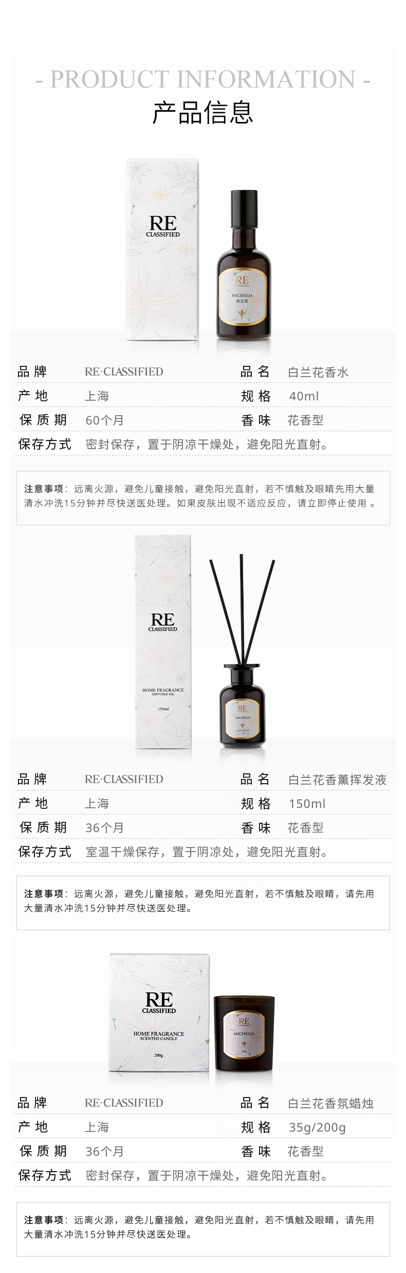 白兰花系列香水40ml 香薰挥发液150ml 香薰蜡烛35/200g