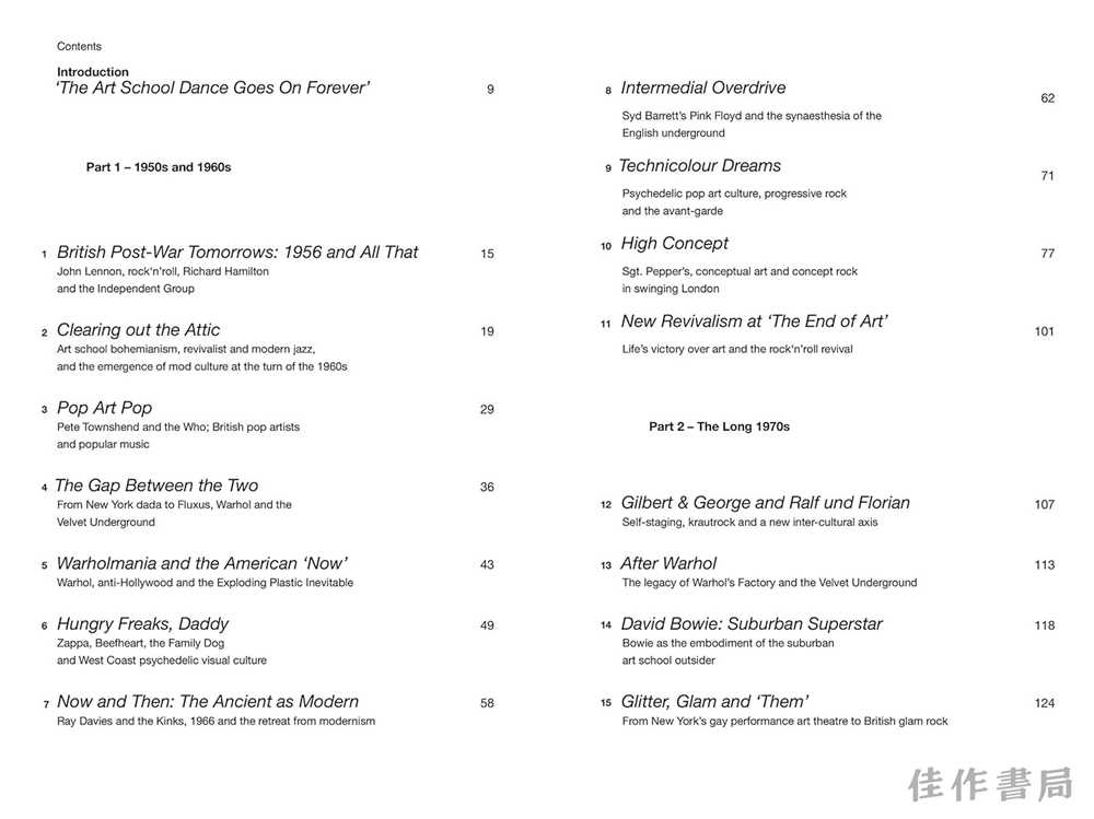 通过众多艺术家和音乐家(包括但不限于马塞尔·杜尚、披头士乐队、小野洋子、谁人乐队、约翰·凯奇、安迪·沃霍尔、地下丝绒乐队、弗兰克·扎帕、平克·弗洛伊德、大卫·鲍伊、吉尔伯特与乔治、发电站乐队、理查德·汉密尔顿、罗克西音乐、帕蒂·史密斯、马尔科姆·麦克拉伦、性手枪乐队、传声头像乐队、金发女郎乐队、Factory唱片公司、让-米歇尔·巴斯奎特、KLF乐队、杰里米·德勒、Riot grrrl运动以及Jay-Z)的狂野、享乐且喧嚣的交织,《艺术如何造就流行》一书涵盖了艺术学校摇滚乐的世界历史,审视了流行趋势,并将众多仍被流行音乐的活力火花所闪耀的当代视觉艺术家和艺术家音乐家的实践置于其背景之中进行解读。