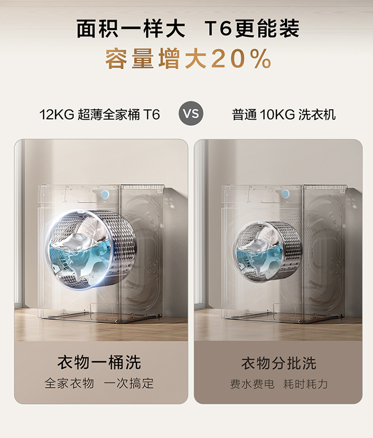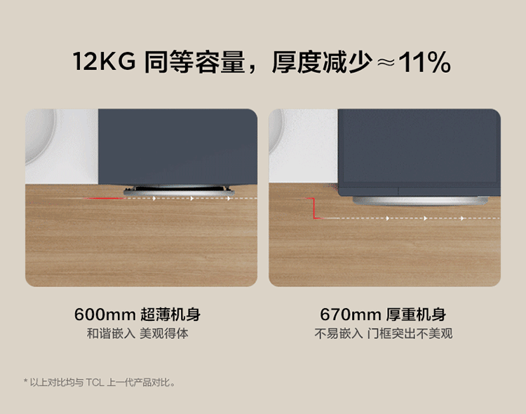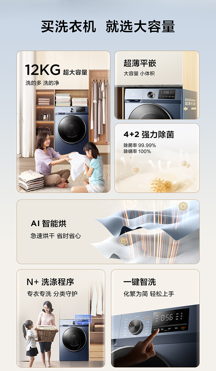 【TCL洗衣机】TCL 12KG超薄洗烘全家桶T6超薄嵌大容量洗衣机 G120T6-HB