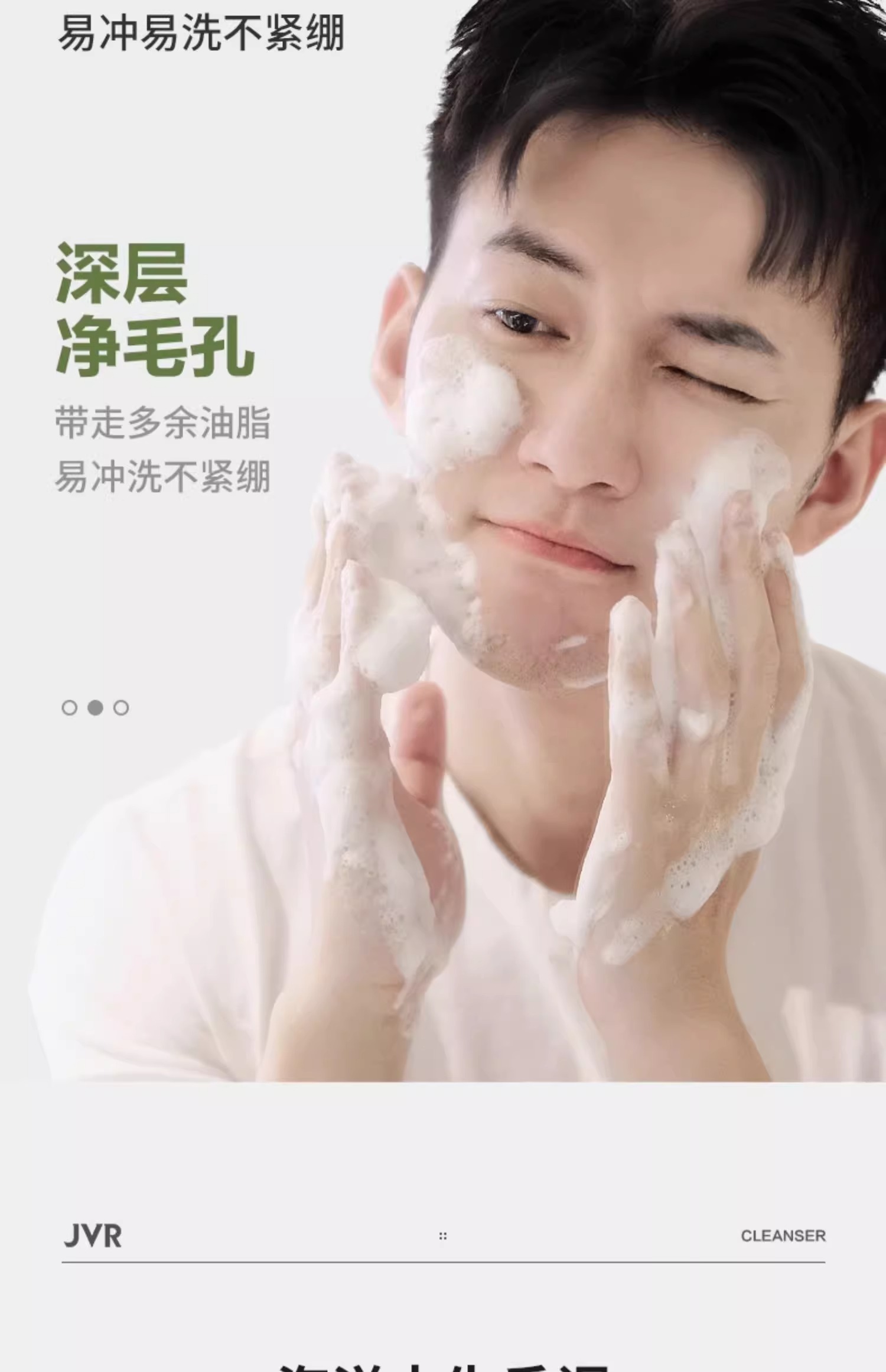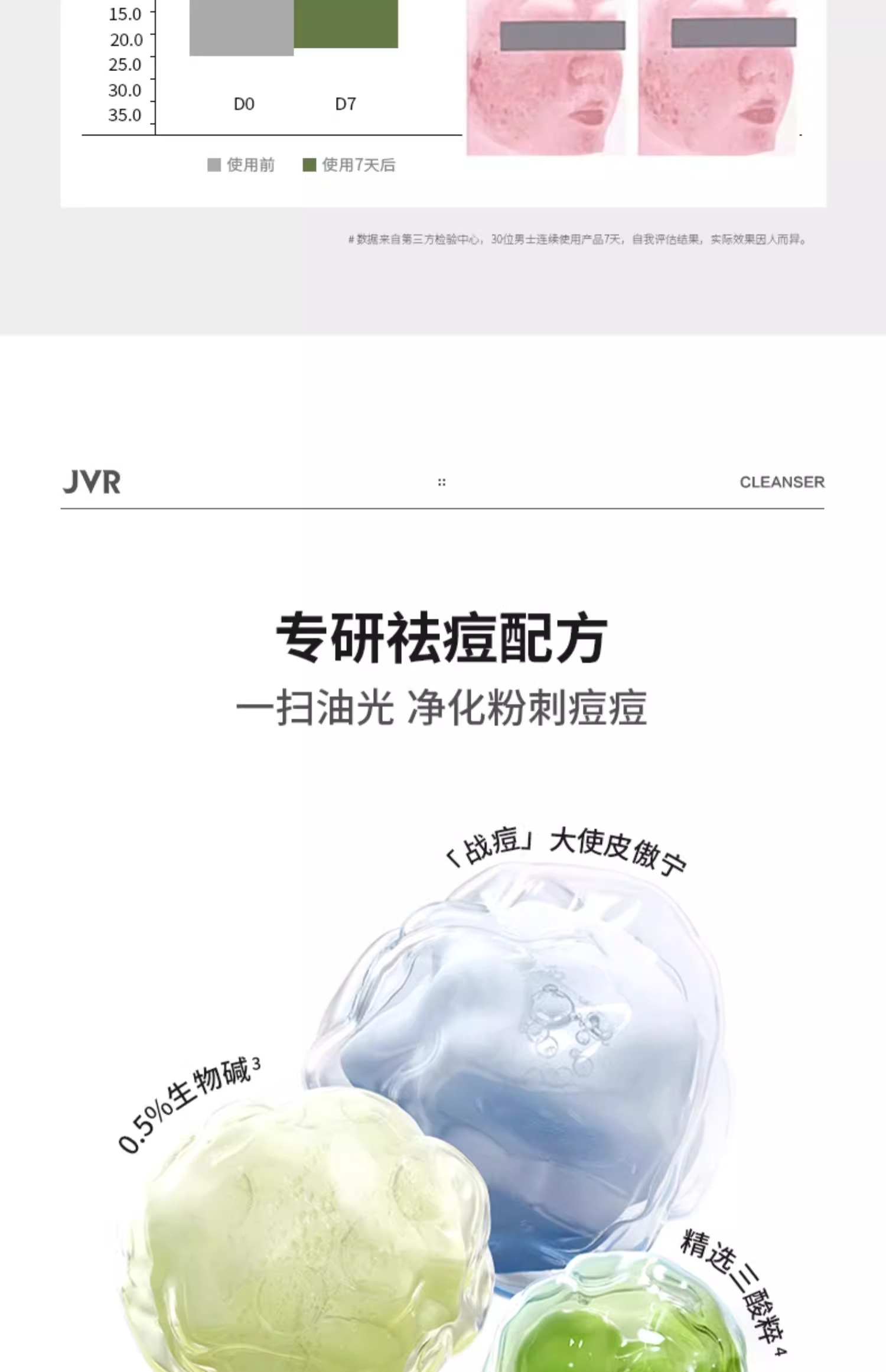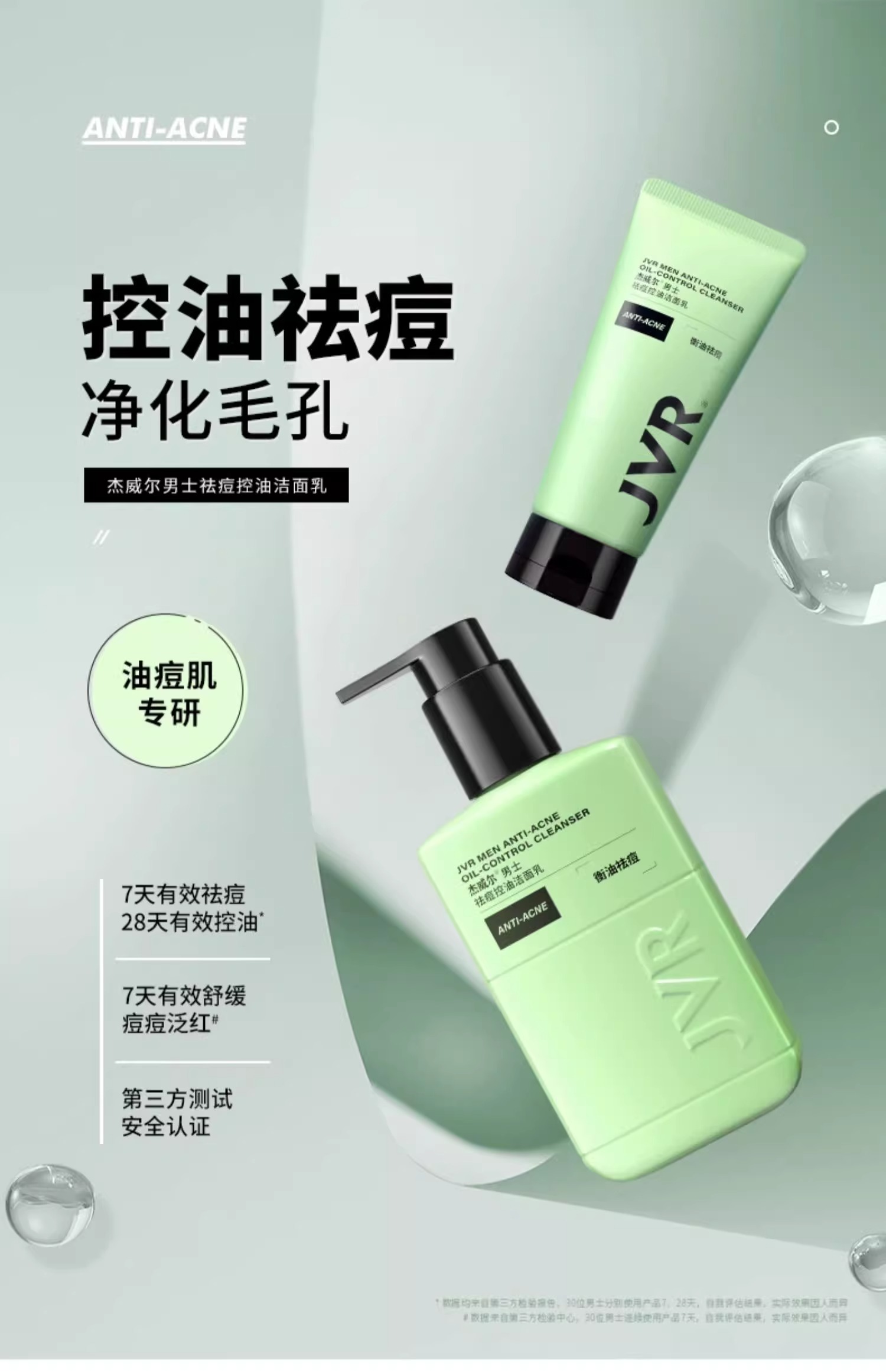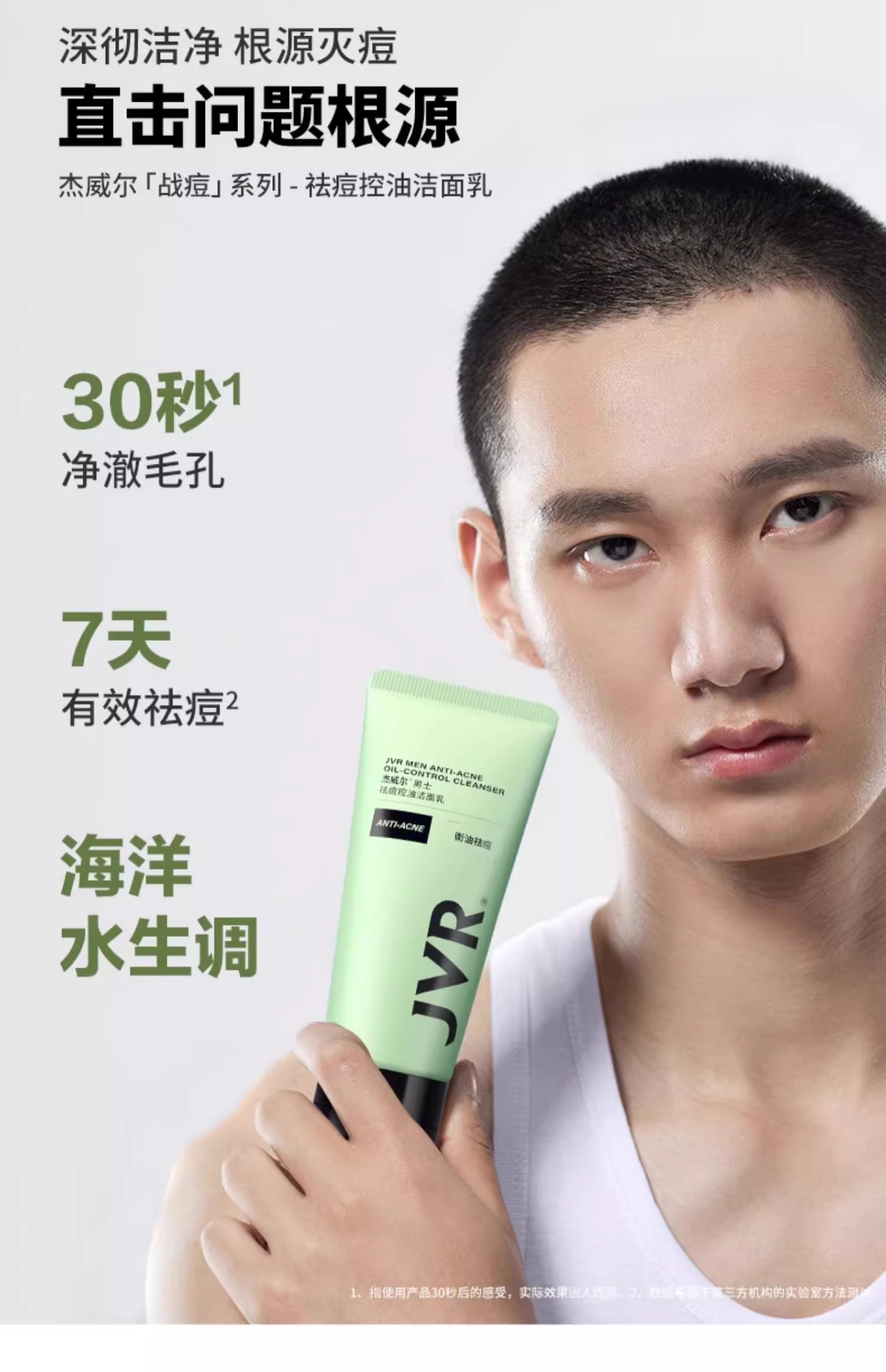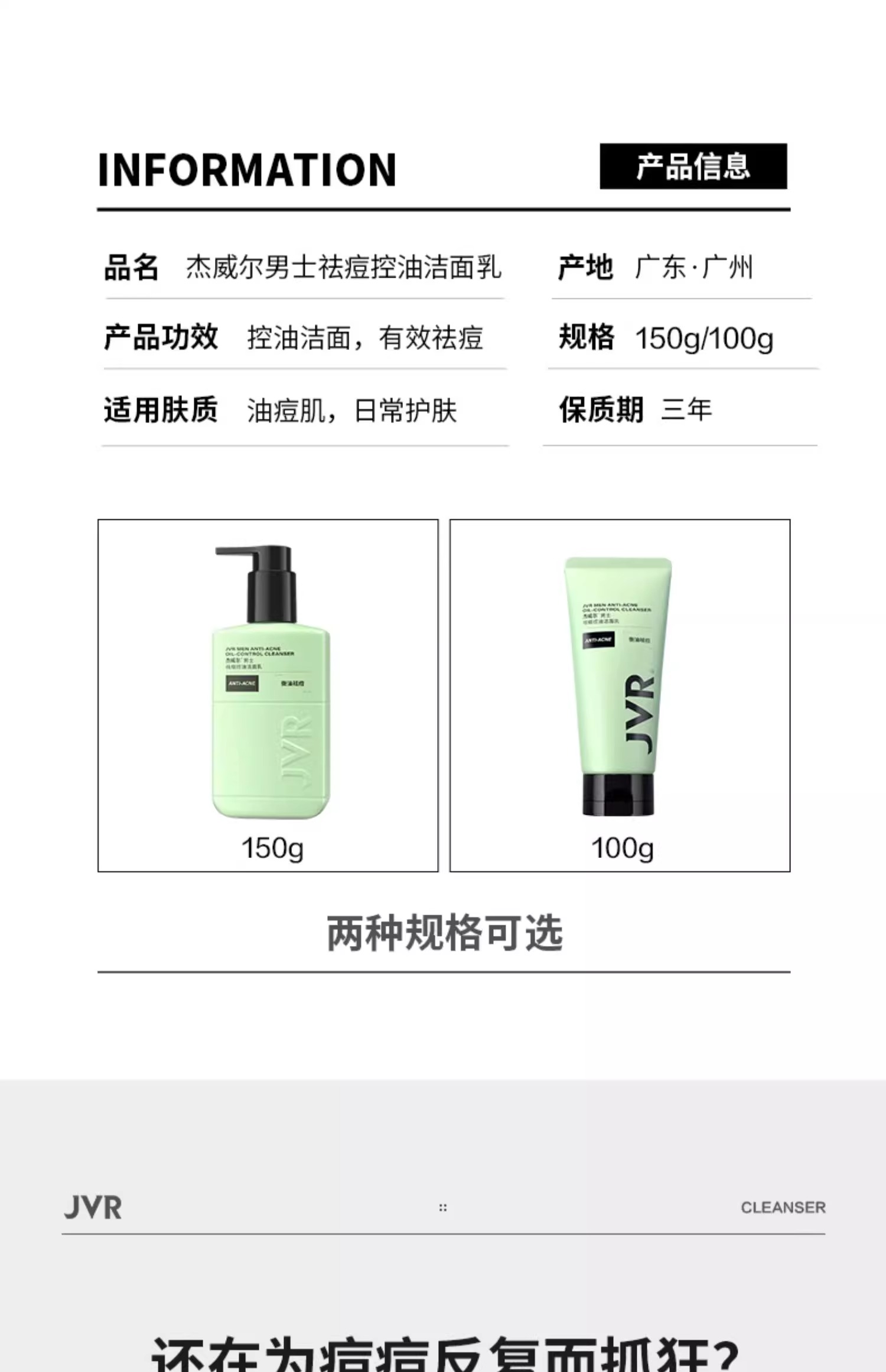 JVR杰威尔男士专用洗面奶祛痘控油去黑头洁面乳膏乳霜护肤品套装夏季