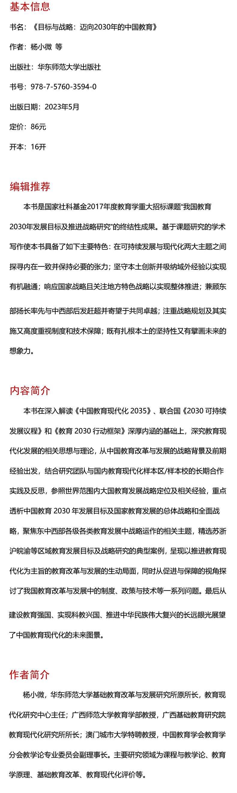 目标与战略 迈向2030年的中国教育 杨小微等著 华东师范大学出版社 理解中国式教育现代化的钥匙
