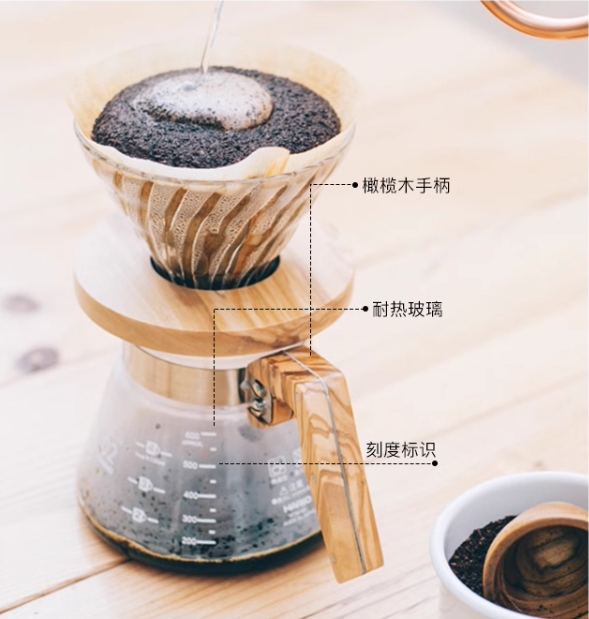 HARIO玻璃V60滤杯橄榄木手冲咖啡过滤杯