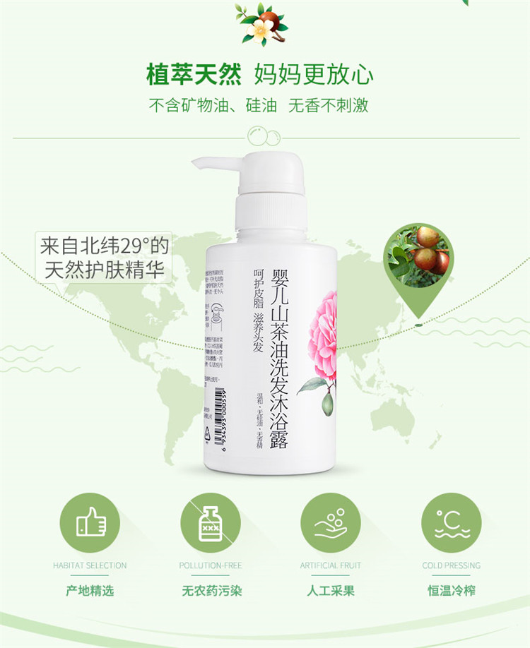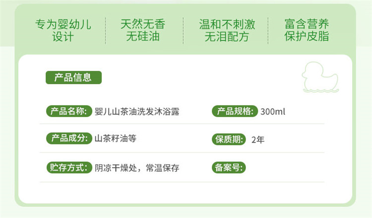 中国松达婴儿山茶油洗发沐浴露二合一300ml