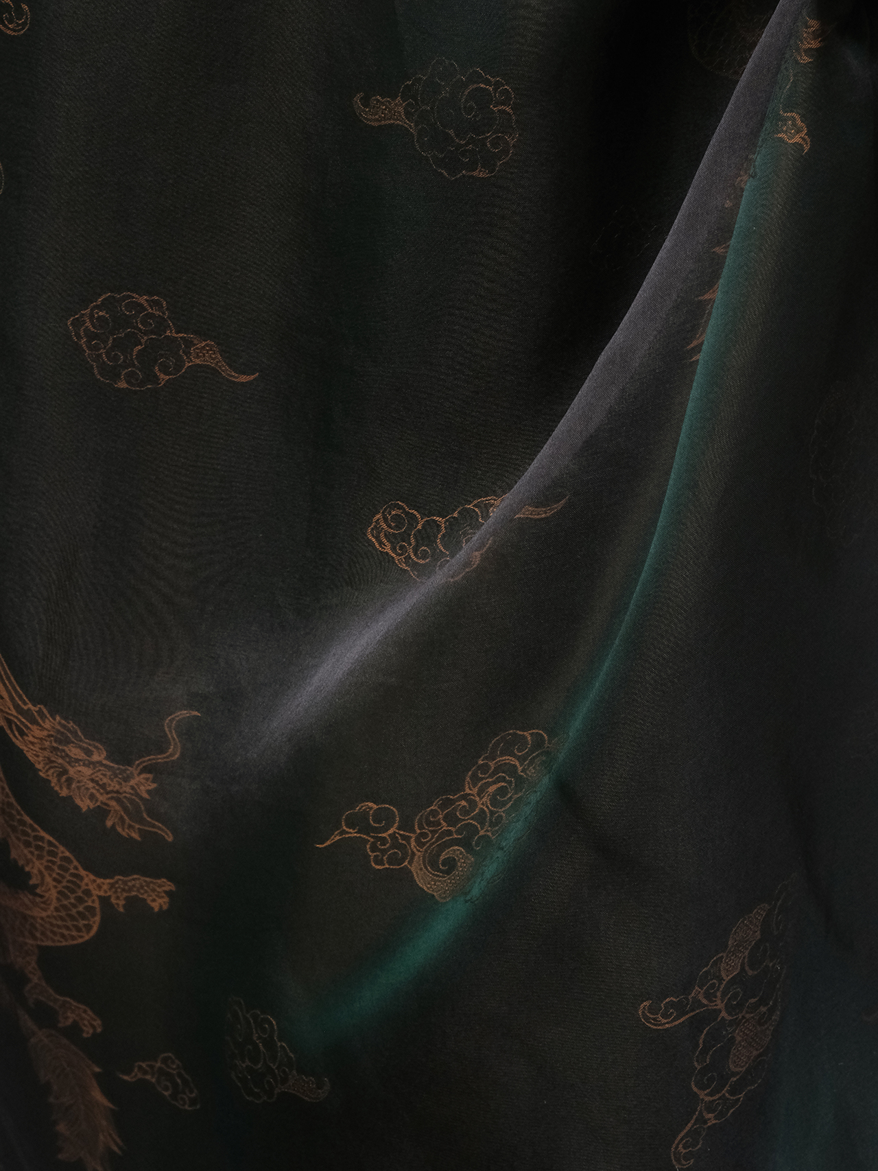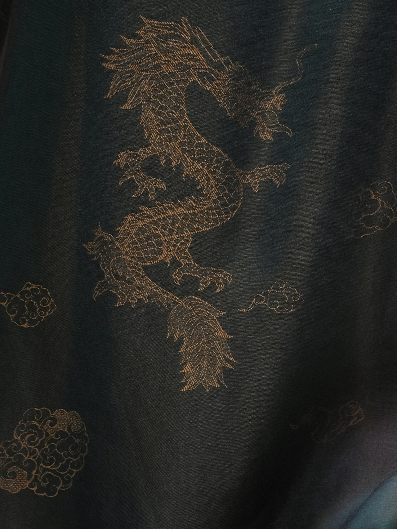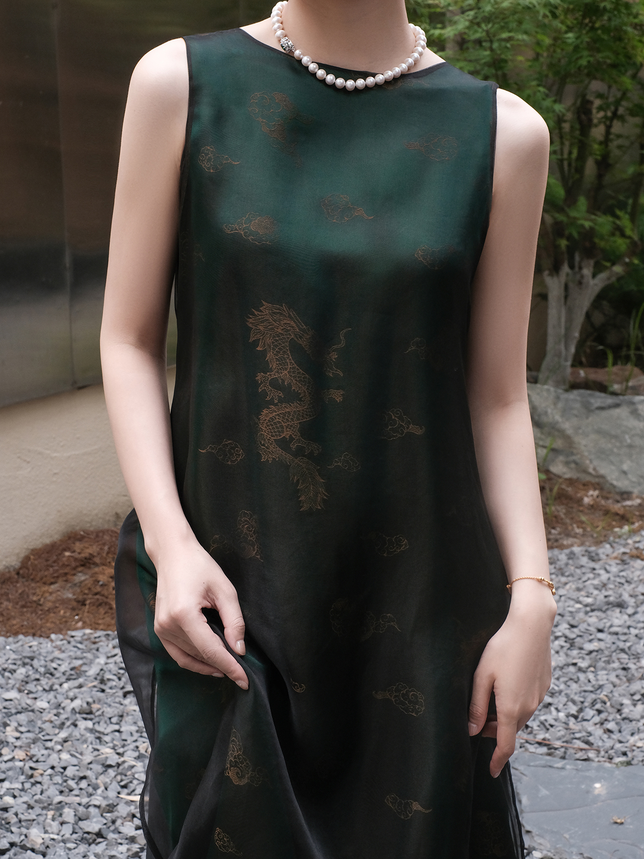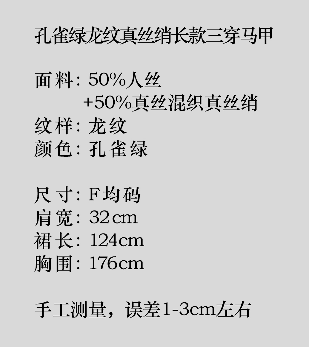盛唐牡丹 |孔雀绿龙纹真丝绡长款三穿马甲
