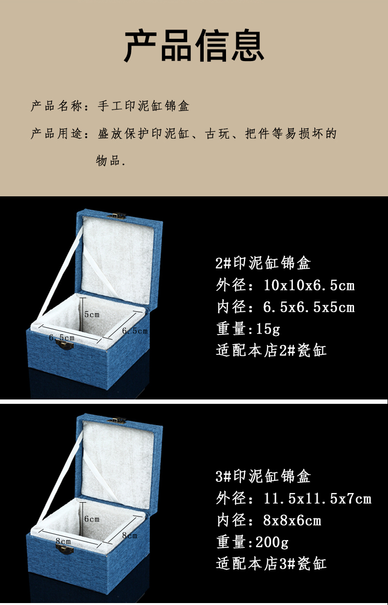 印泥缸锦盒瓷缸盒/印章盒/古玩盒/把件盒/手工锦盒