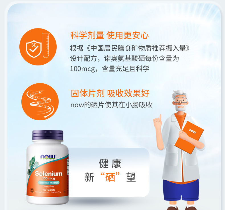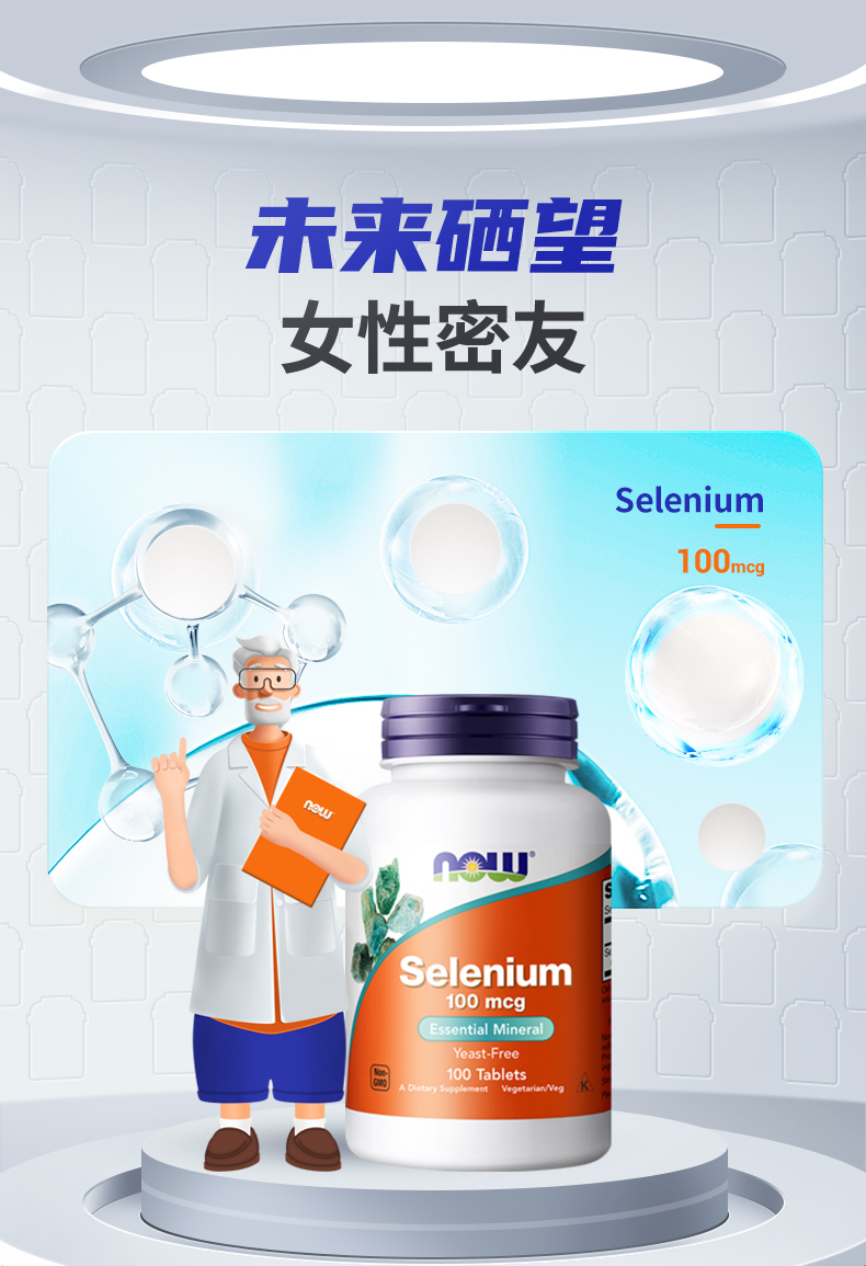 【优选上新】野兽优选 | NOW诺奥硒片100mcg 100片/瓶(跨境海淘商品不支持7天无理由退换)