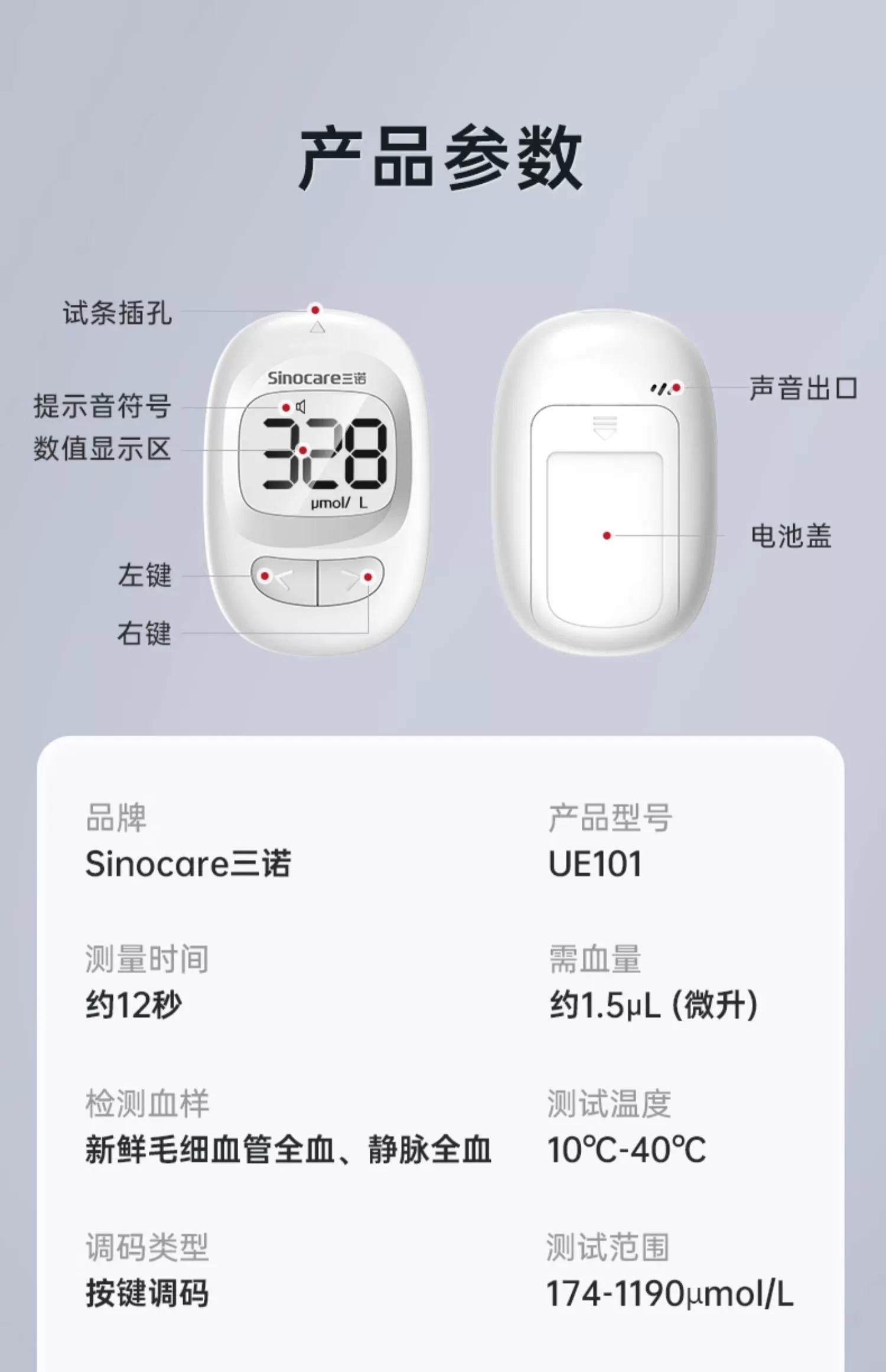 三诺UE101尿酸检测器检测仪家用精准试纸痛风医用测尿酸的仪器